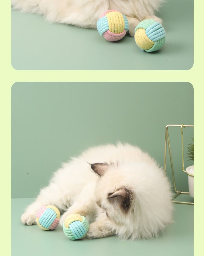 宠物猫咪玩具球逗猫球磨爪耐咬球猫咪清洁牙齿棉绳结猫玩具解闷球