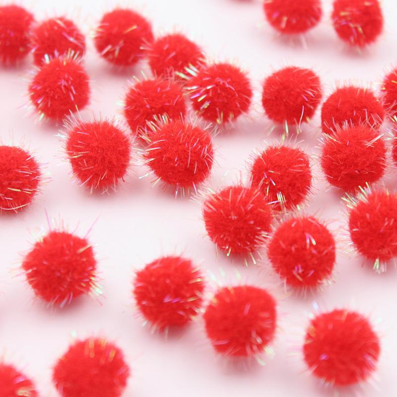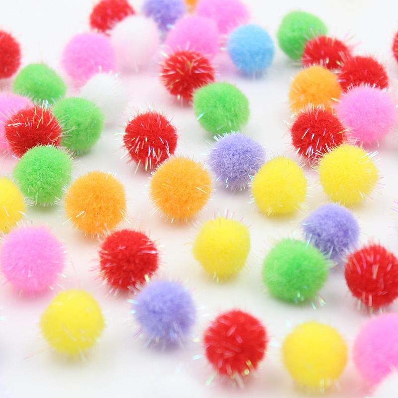 200个1.5厘米七彩毛毛球彩色金葱球球毛毛球幼儿手工节庆装饰毛球
