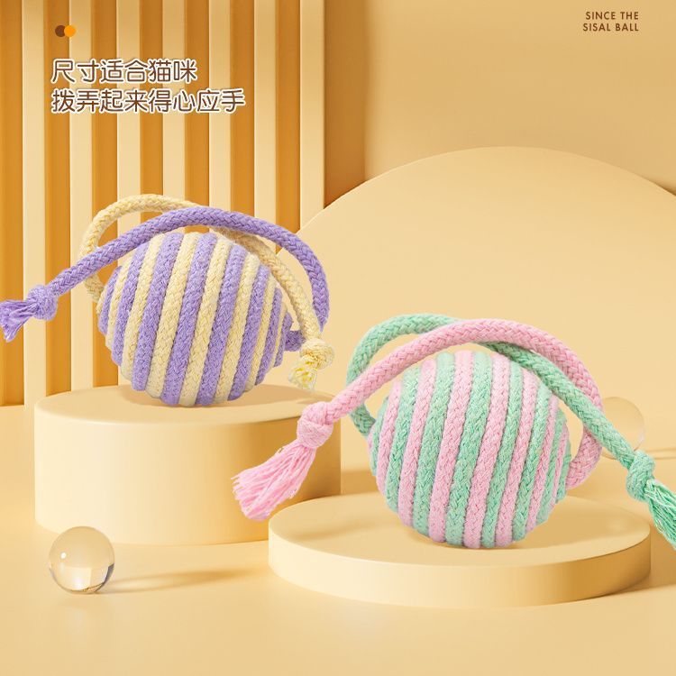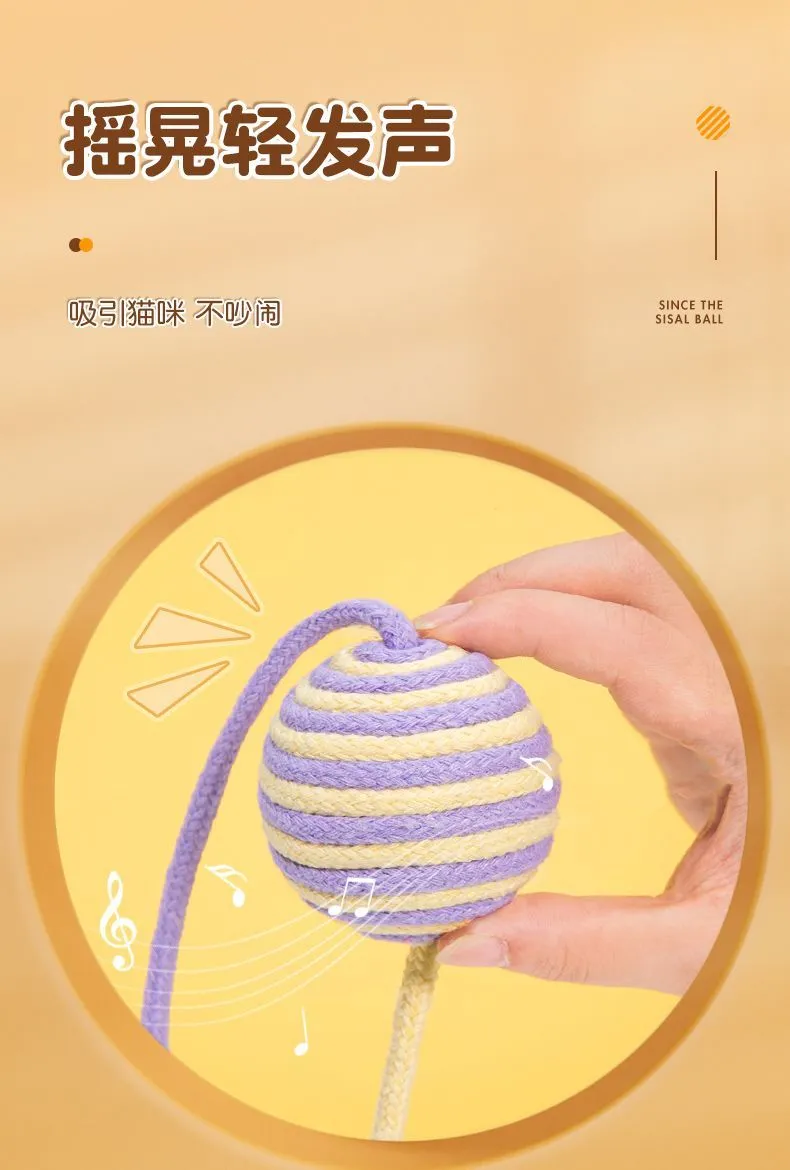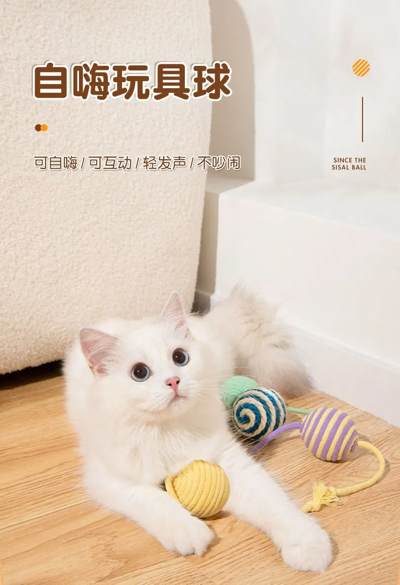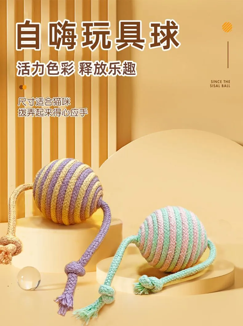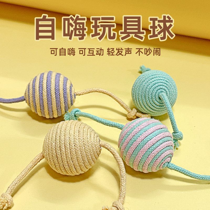 猫咪自嗨耐咬球逗猫结绳子剑麻无声解闷猫咪磨牙玩具猫咪玩具耐用