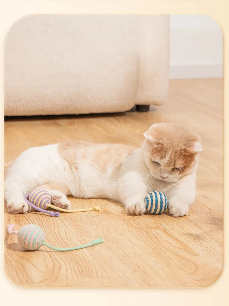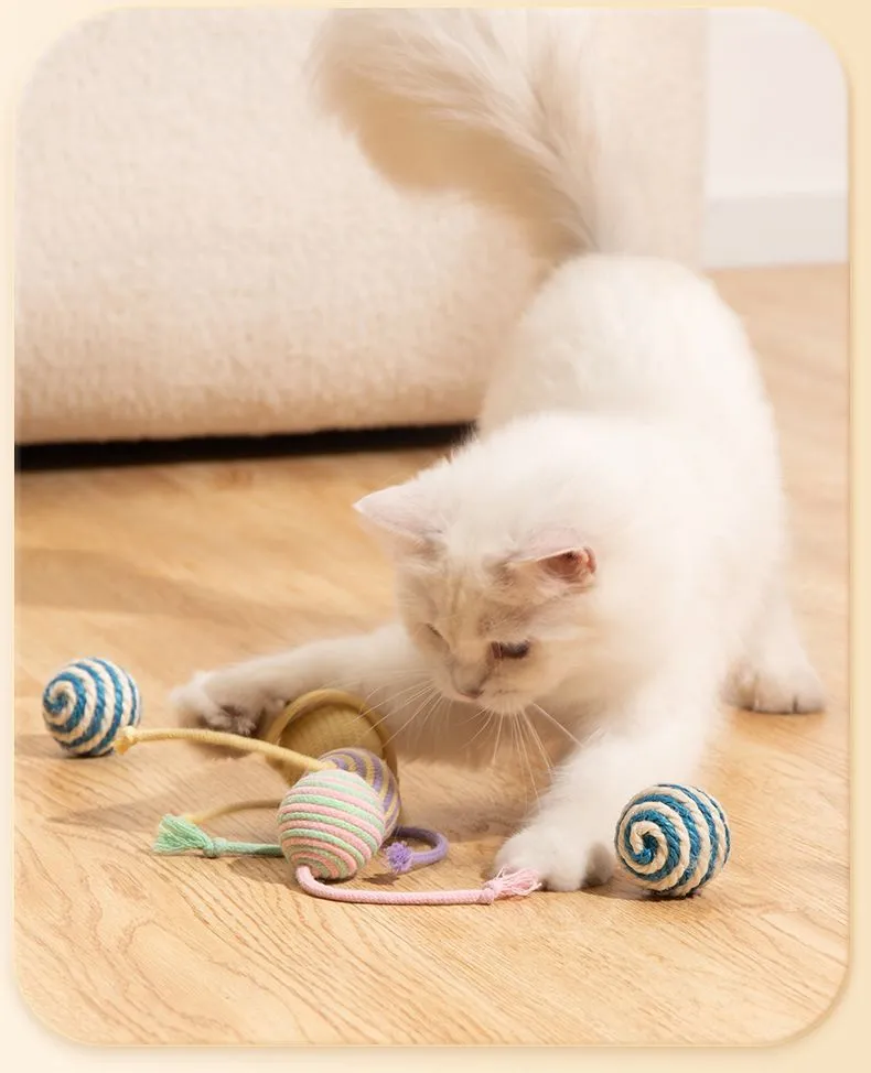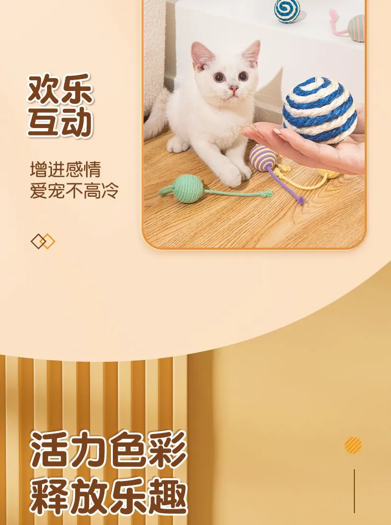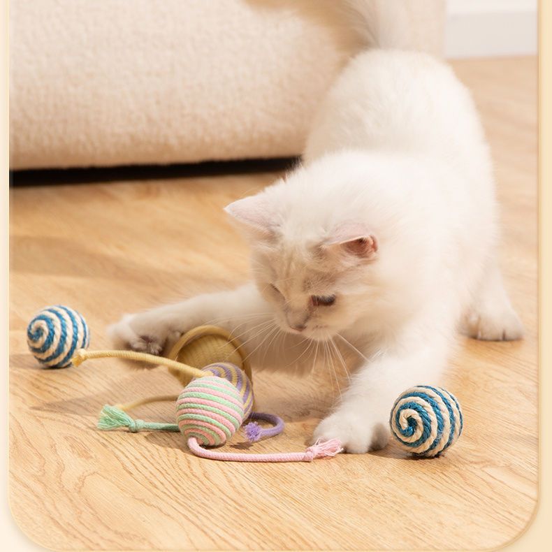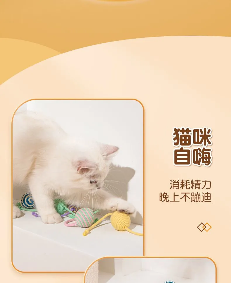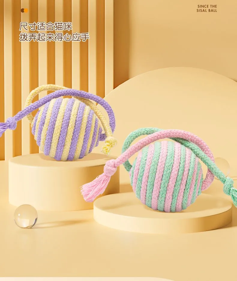 猫咪自嗨耐咬球逗猫结绳子剑麻无声解闷猫咪磨牙玩具猫咪玩具耐用