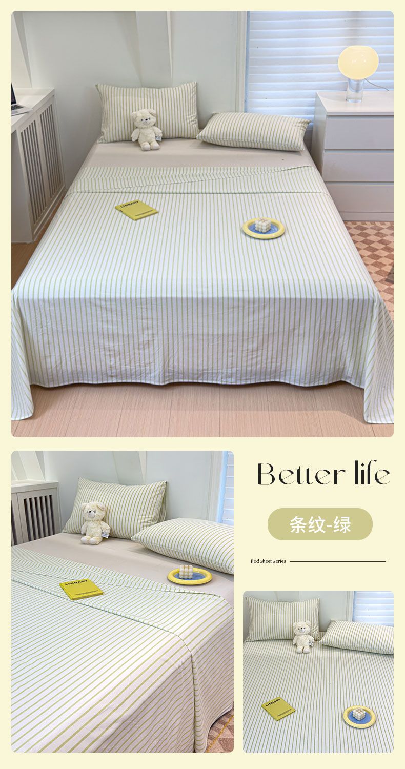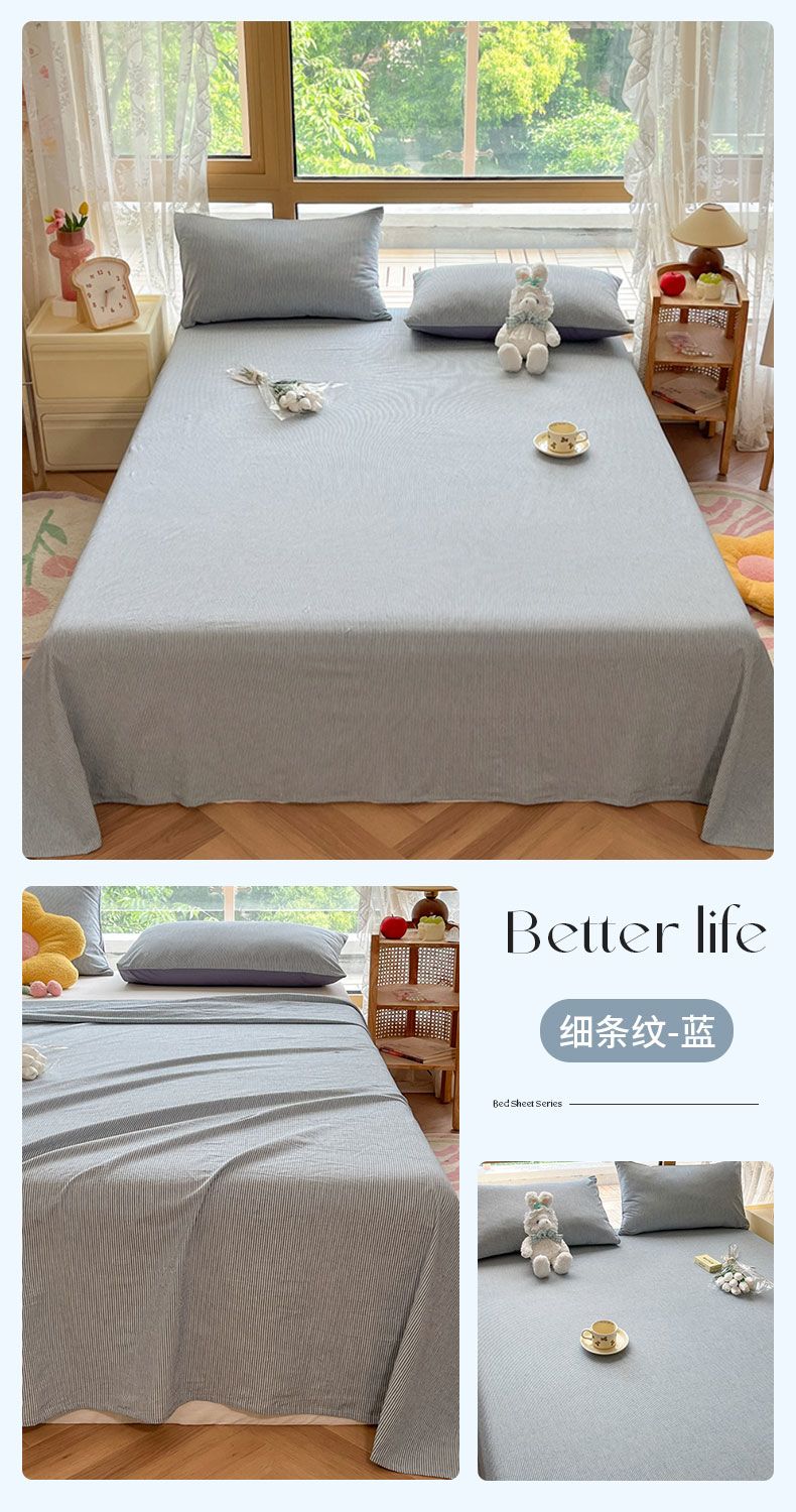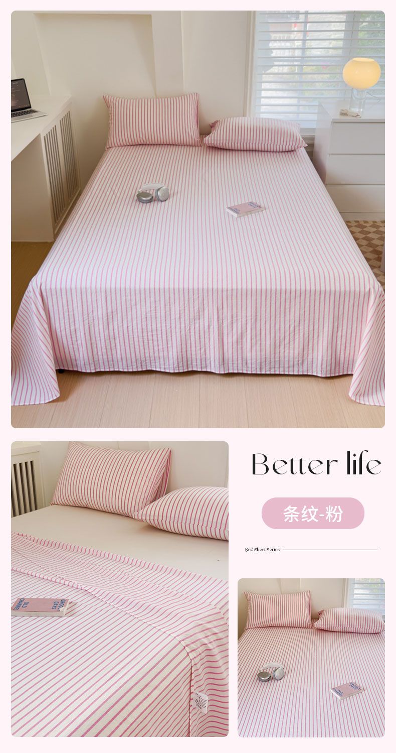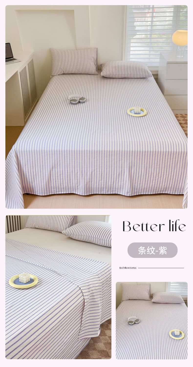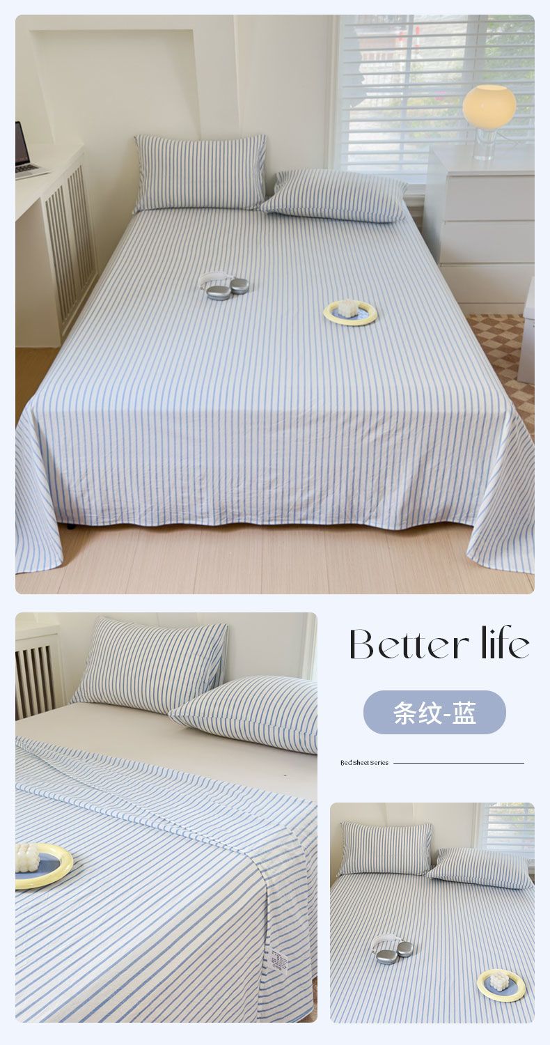 【新品】简约条纹床单单件学生宿舍床单人双人家用格子加厚三件套