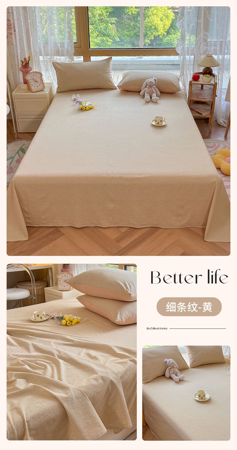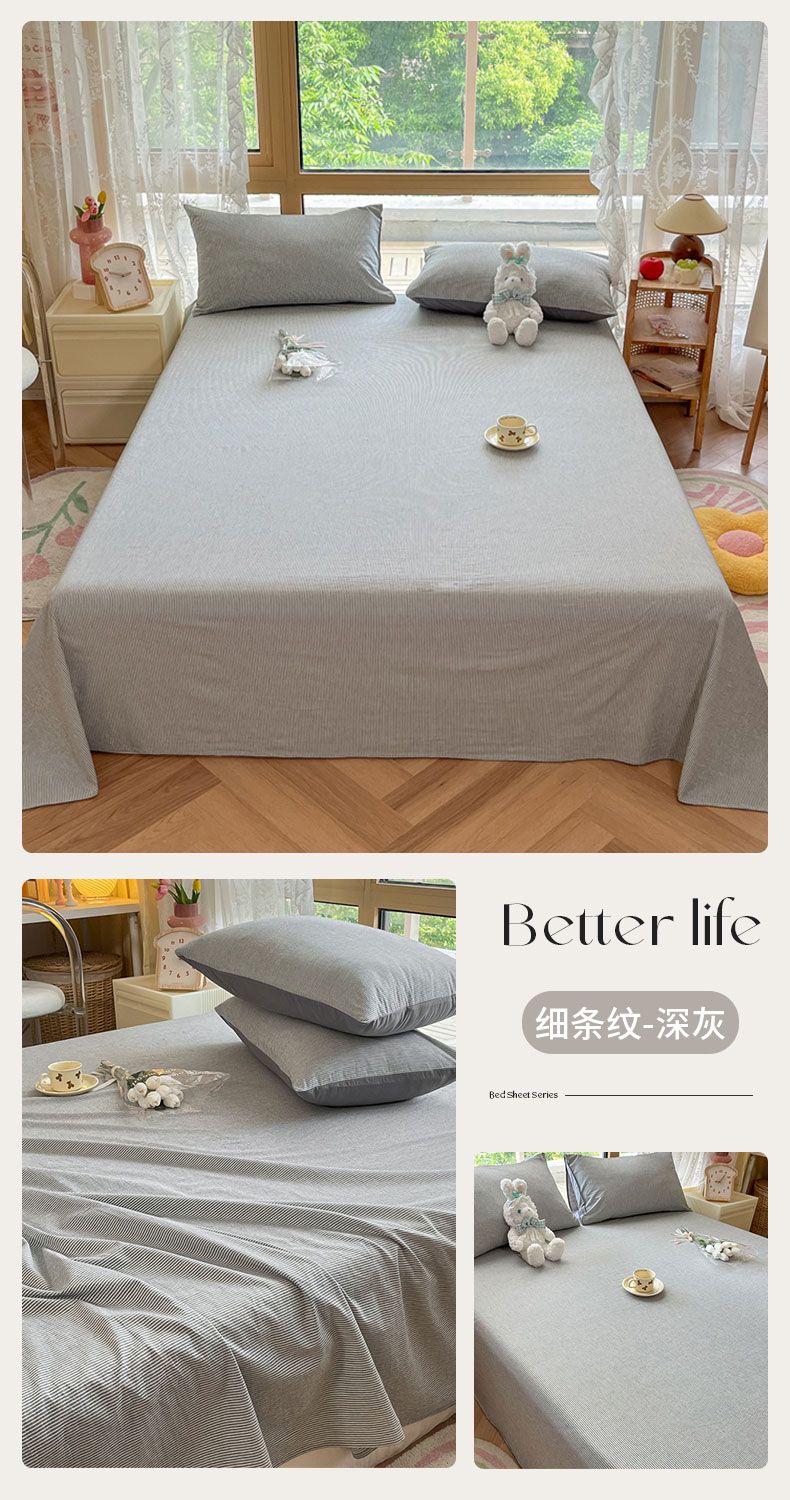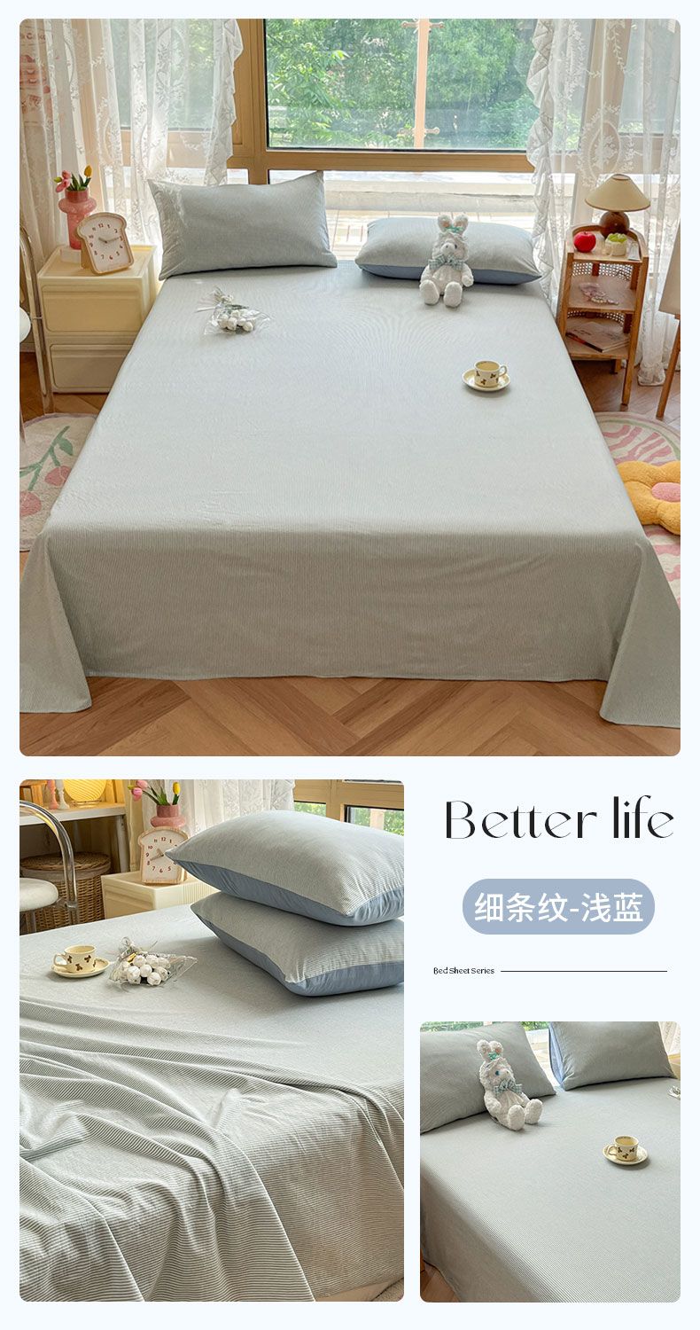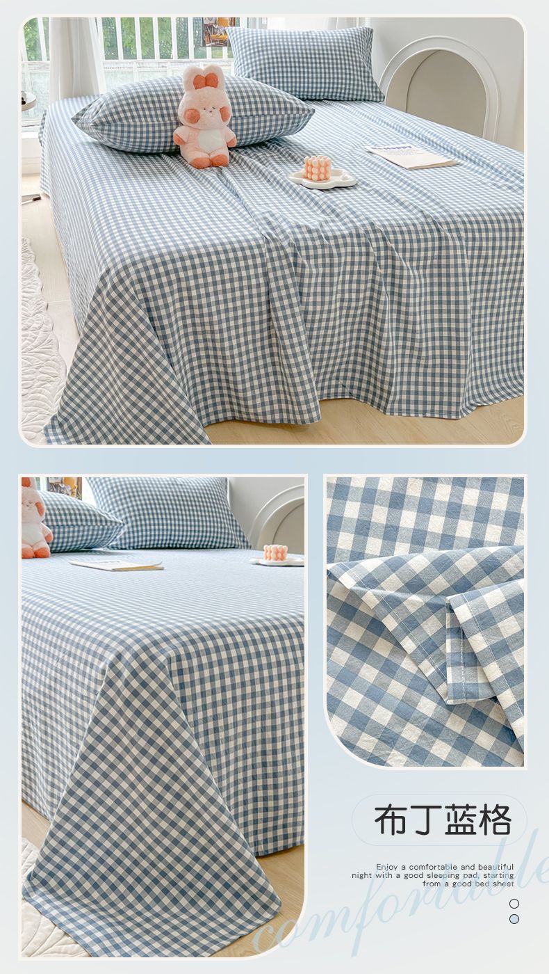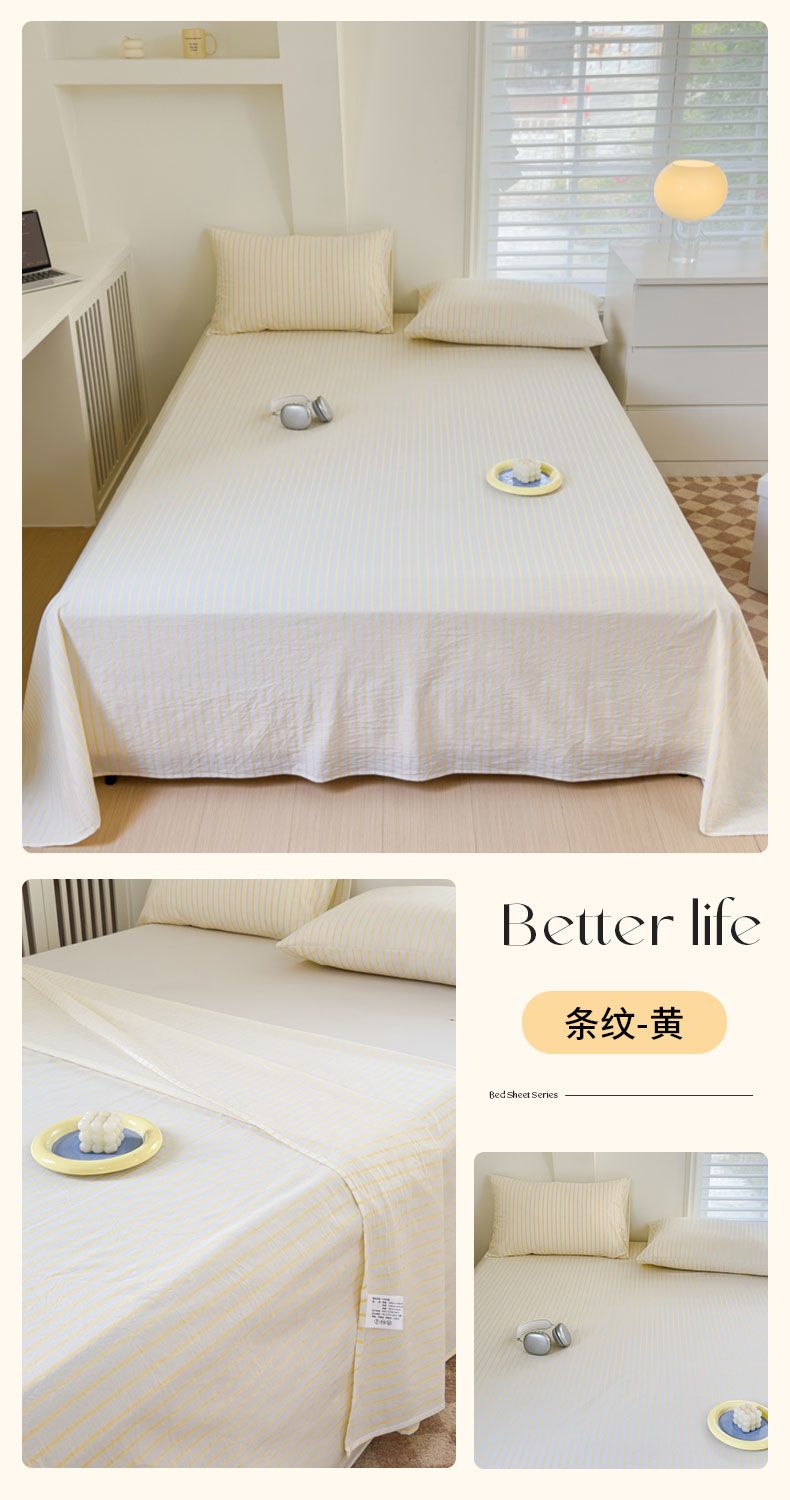 【新品】简约条纹床单单件学生宿舍床单人双人家用格子加厚三件套