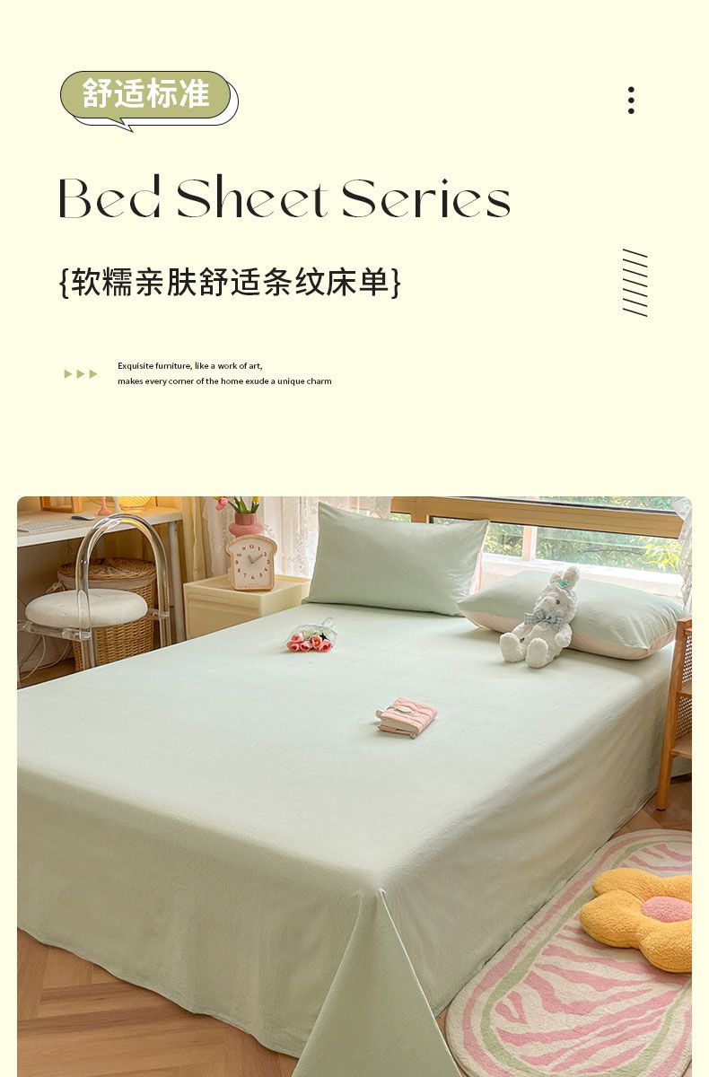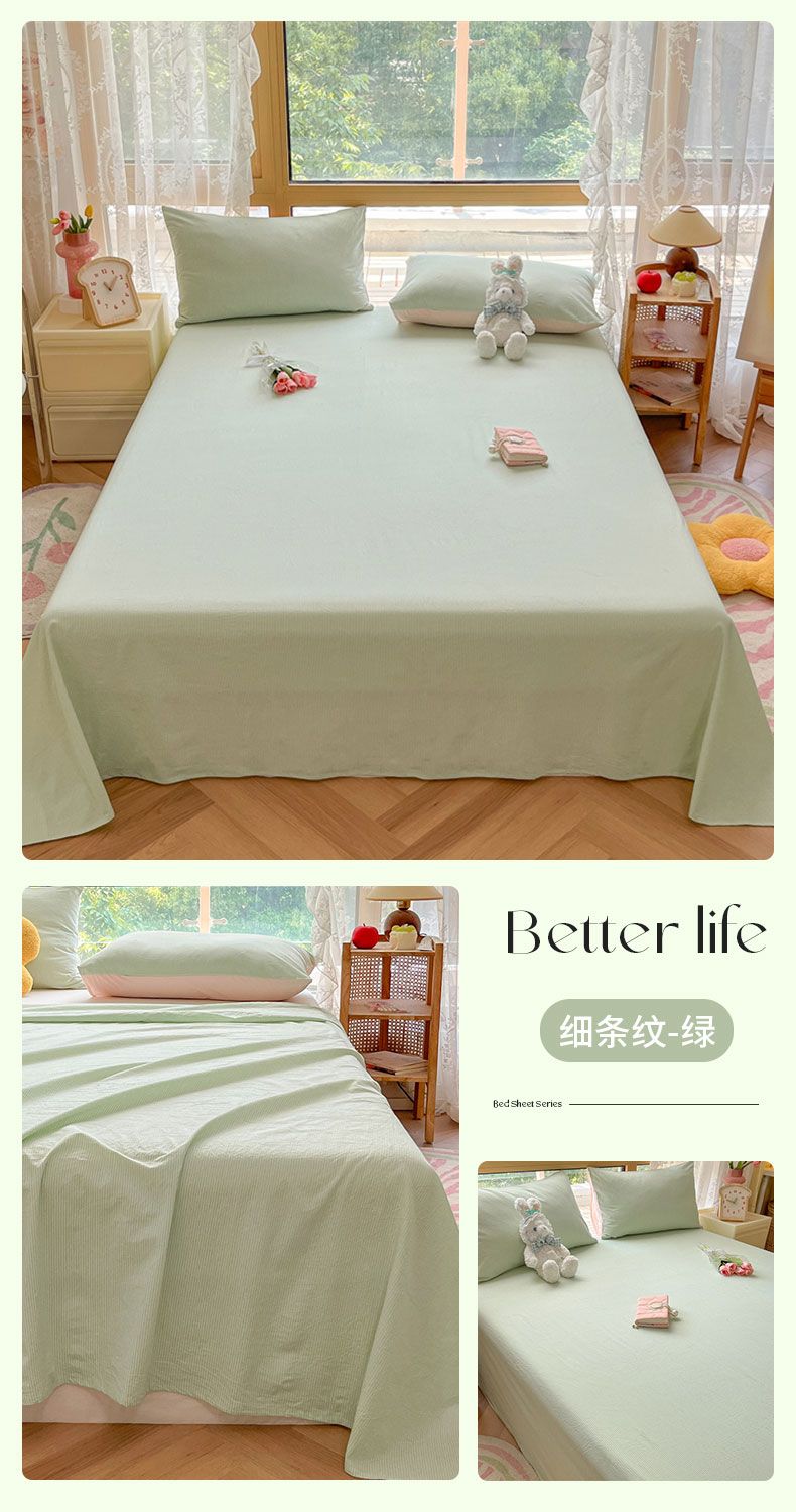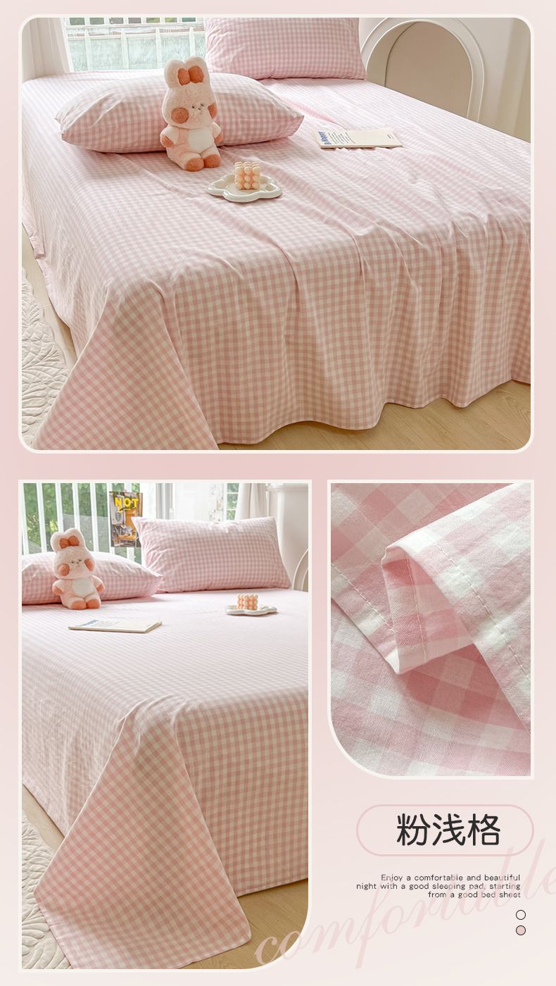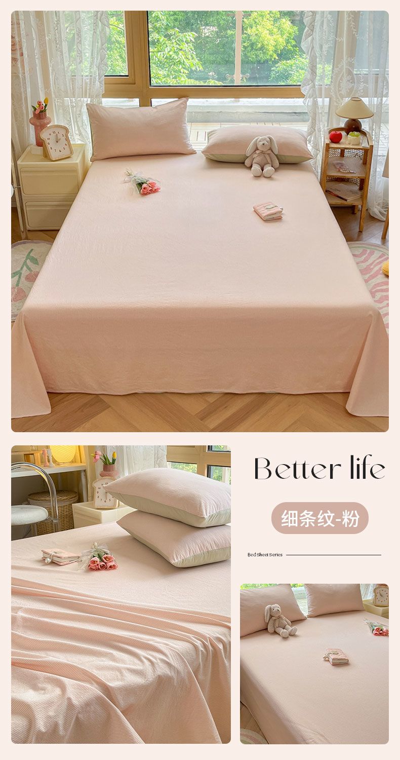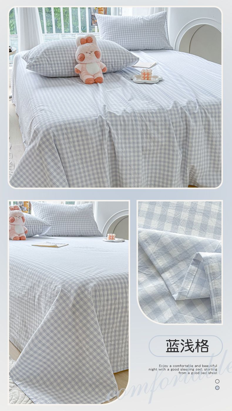 【新品】简约条纹床单单件学生宿舍床单人双人家用格子加厚三件套