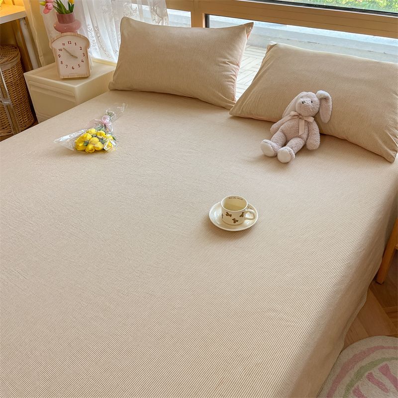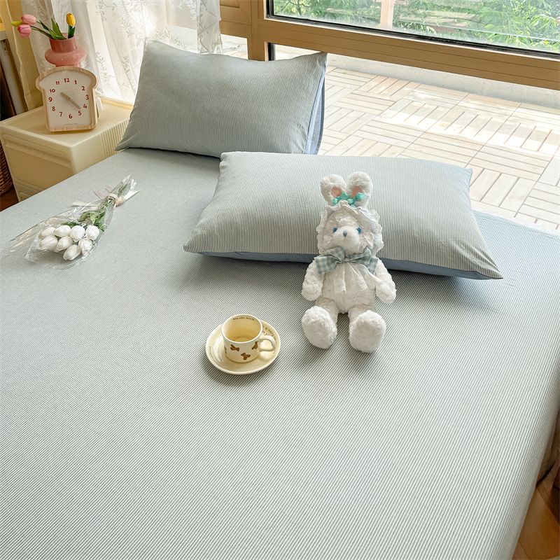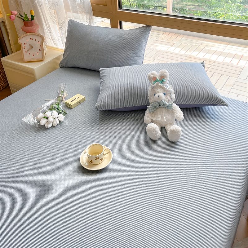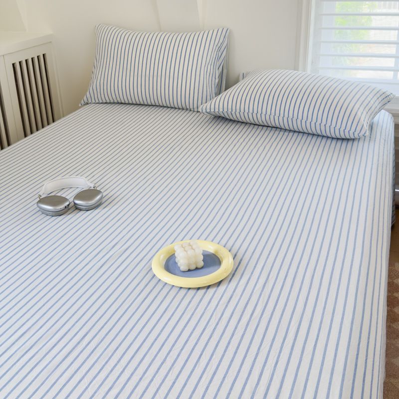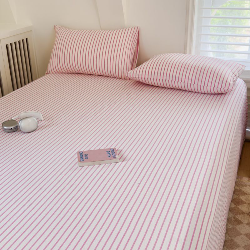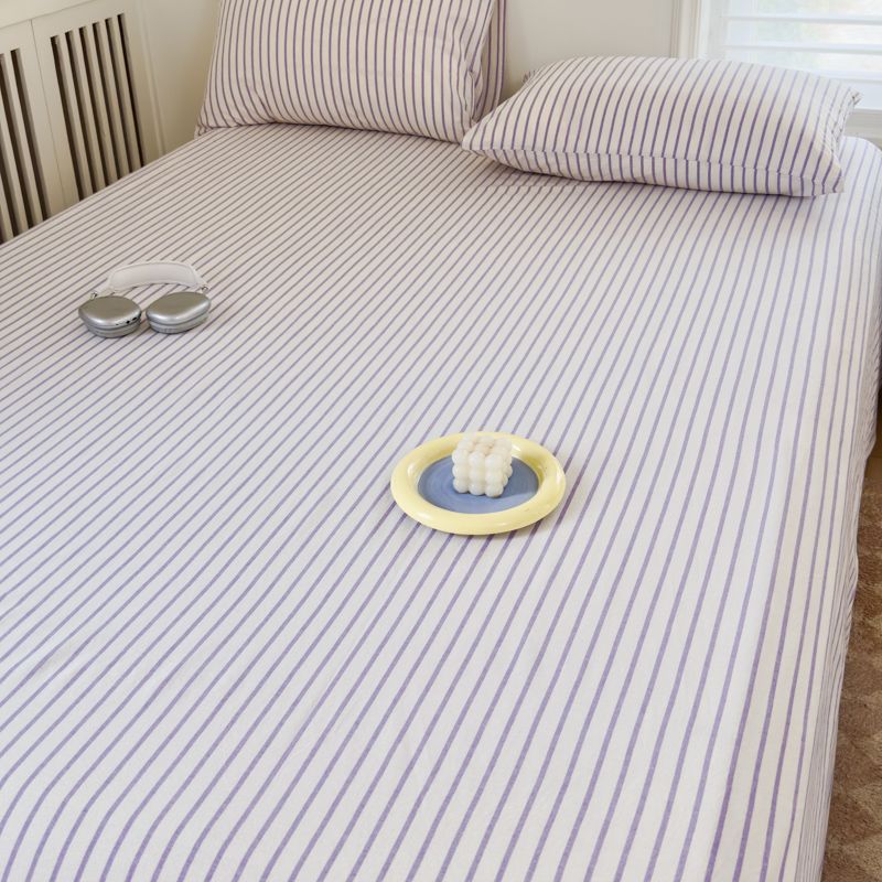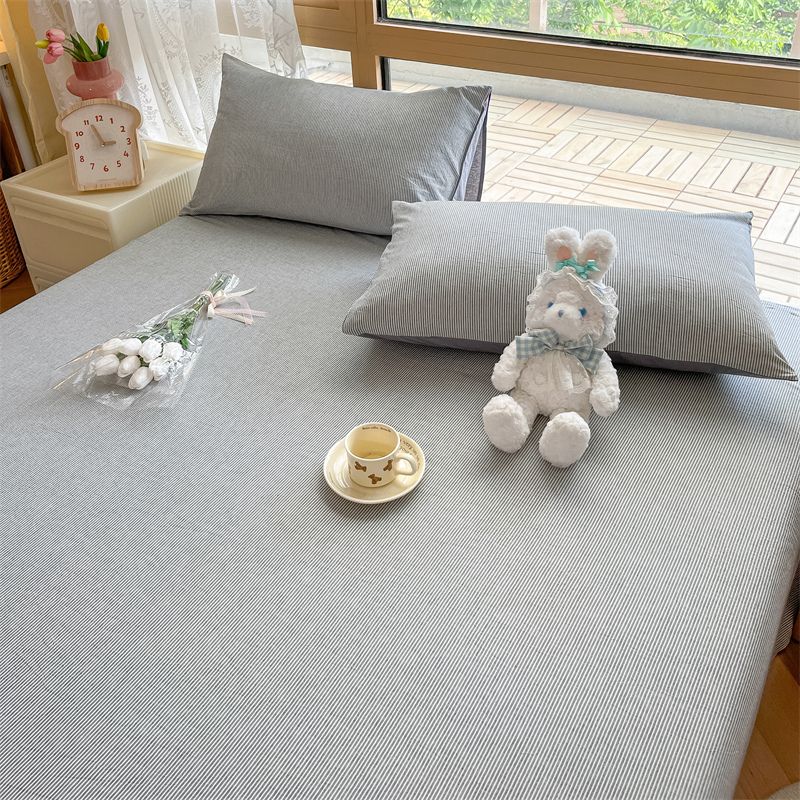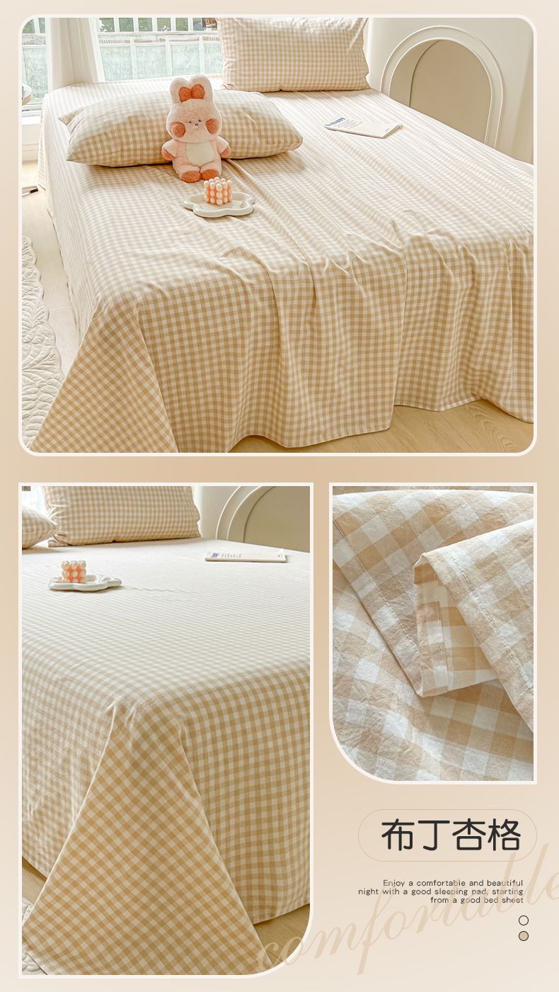 【新品】简约条纹床单单件学生宿舍床单人双人家用格子加厚三件套