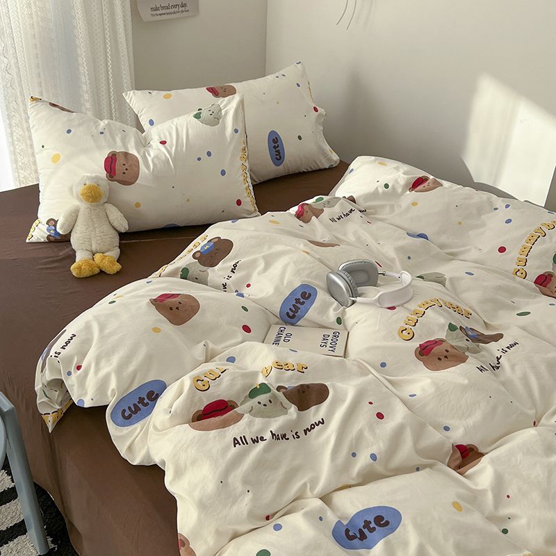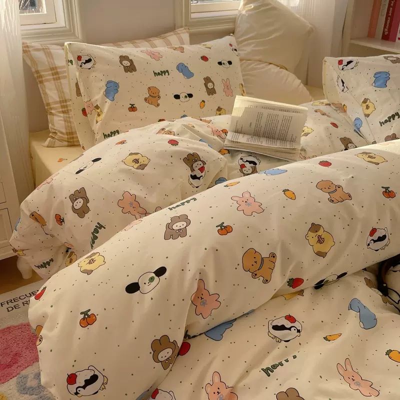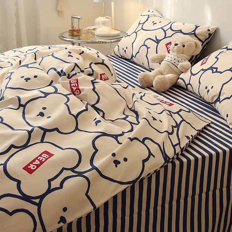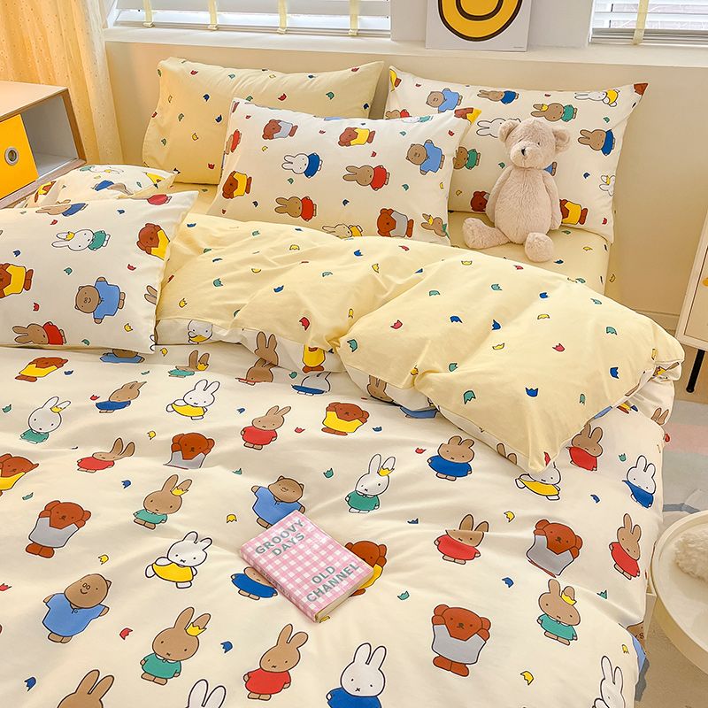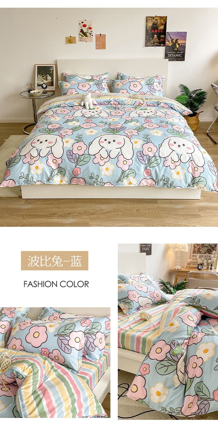 卡通风四件套床单被套网红款宿舍单双人床上用品ins三件套被罩