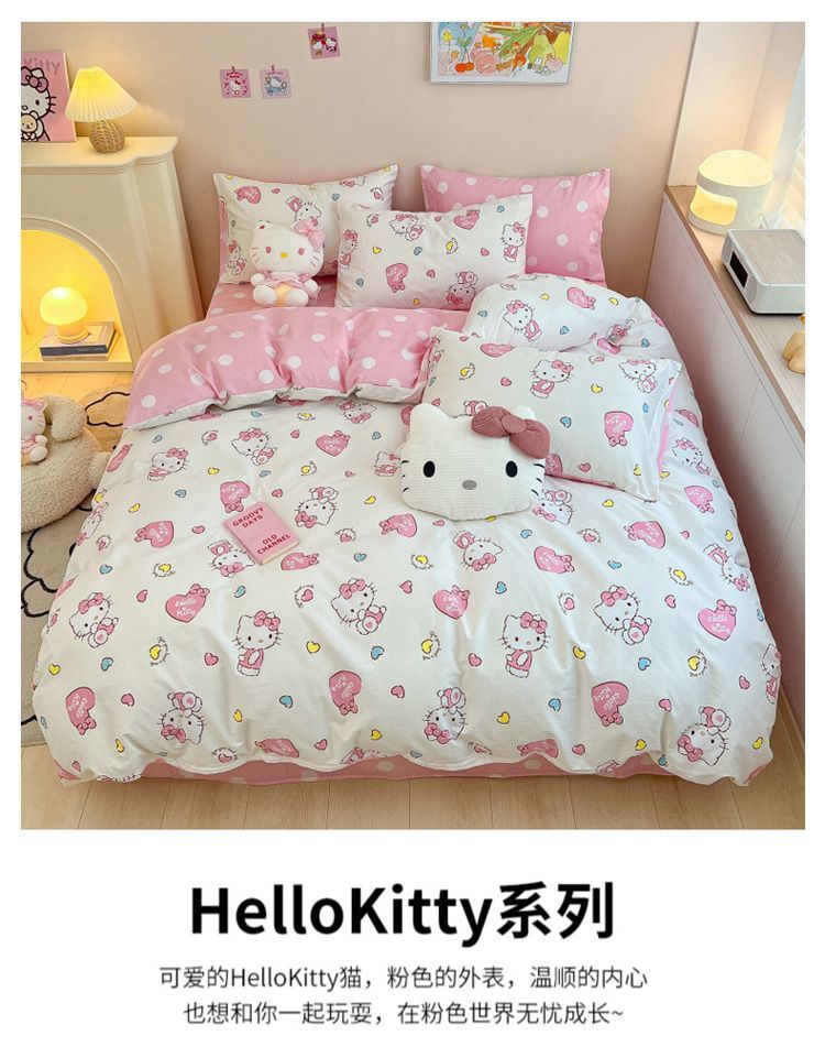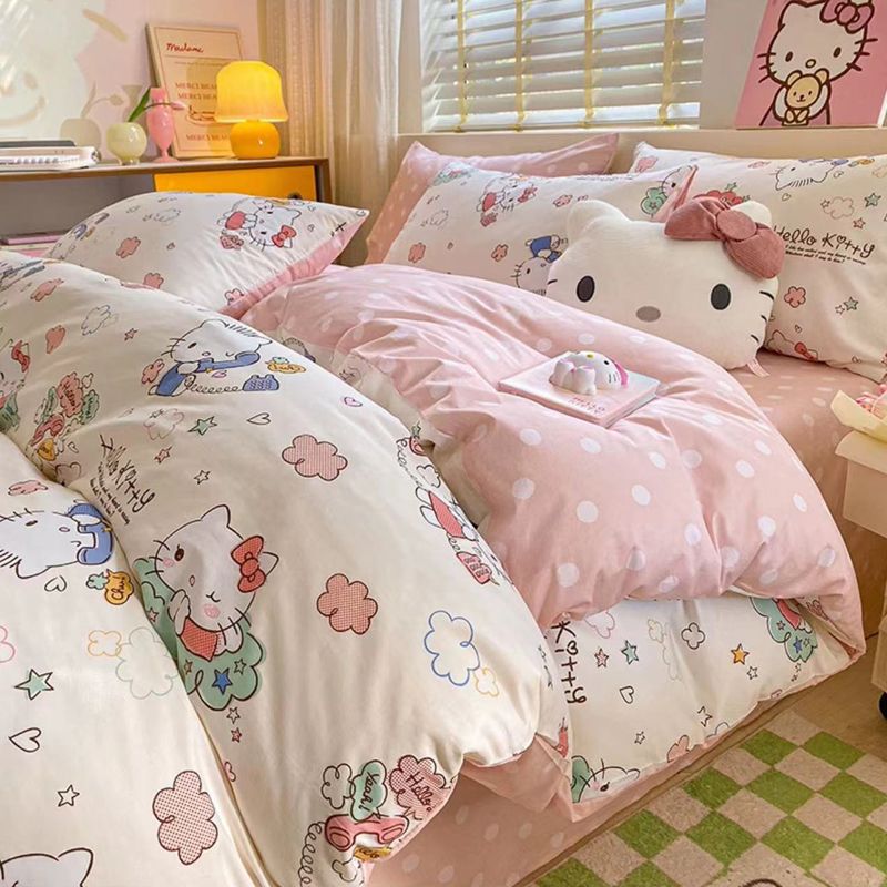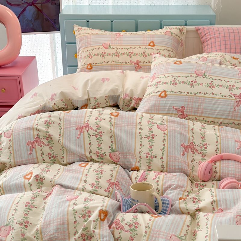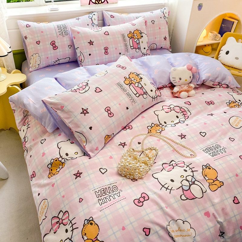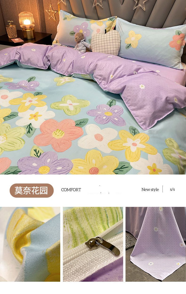 卡通风四件套床单被套网红款宿舍单双人床上用品ins三件套被罩