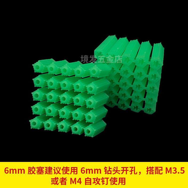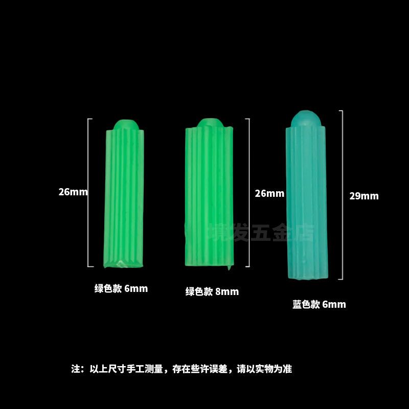 绿色塑料膨胀管6mm6厘8mm8厘自攻螺丝钉胶塞墙塞涨塞胀塞胶粒M6M8
