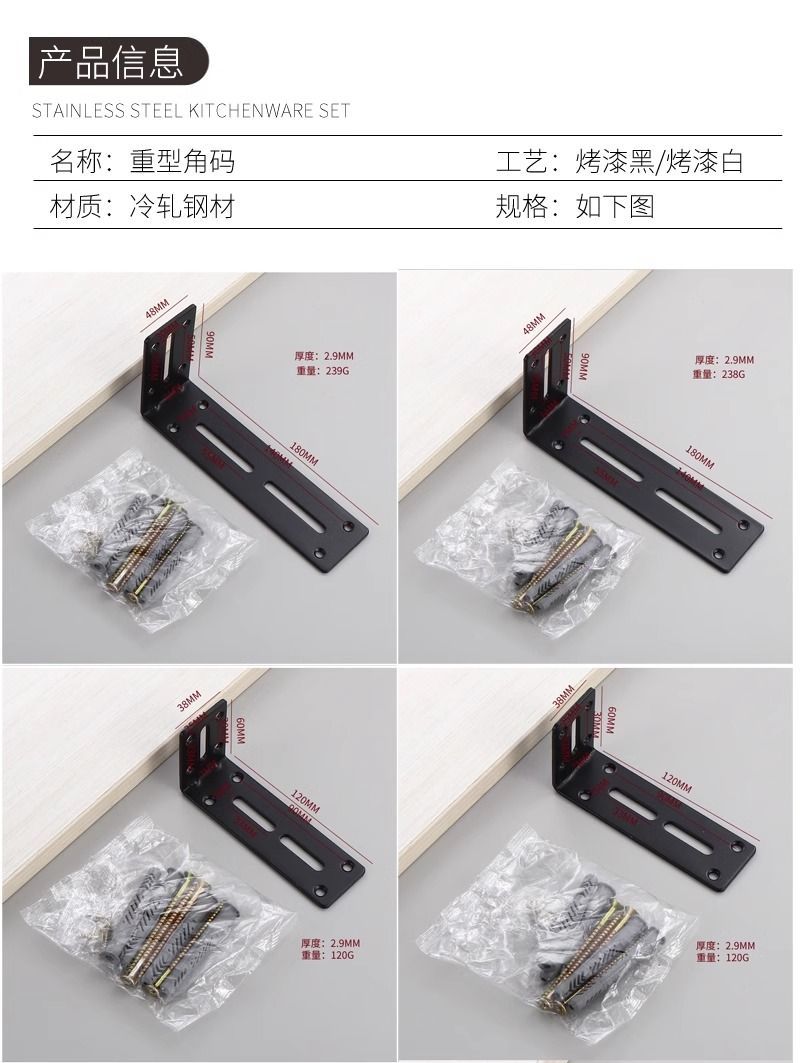 | 黑色180*90*50mm可调角码(4个) | USD $3.44 | 999999 piece available |