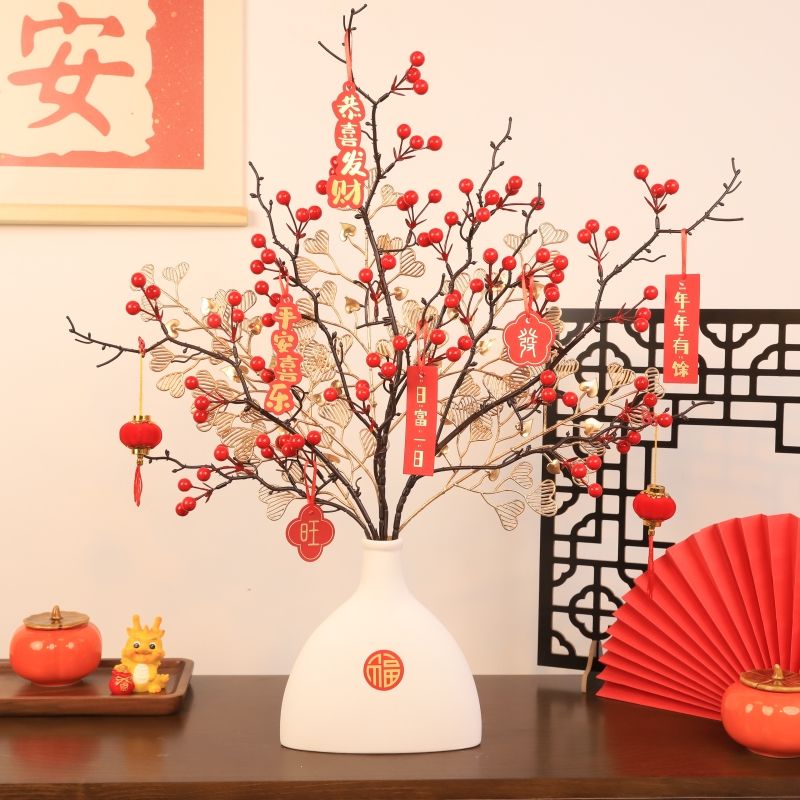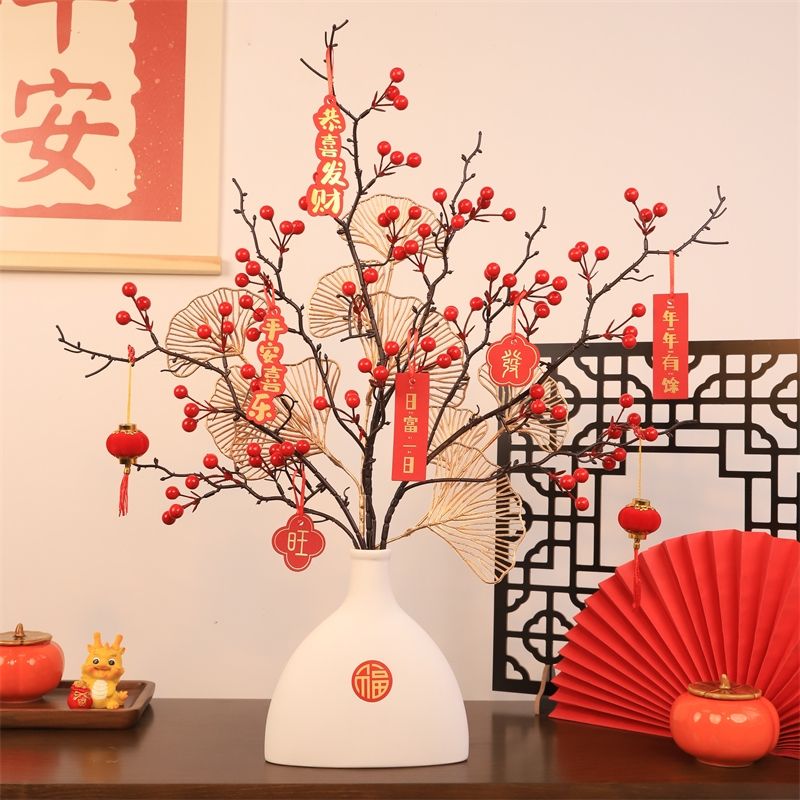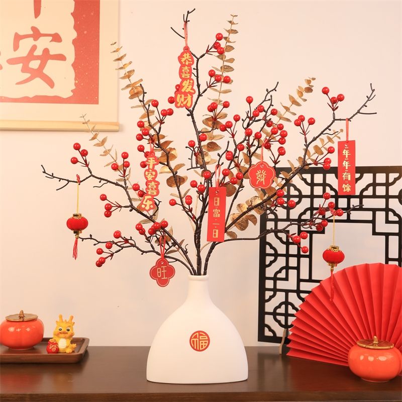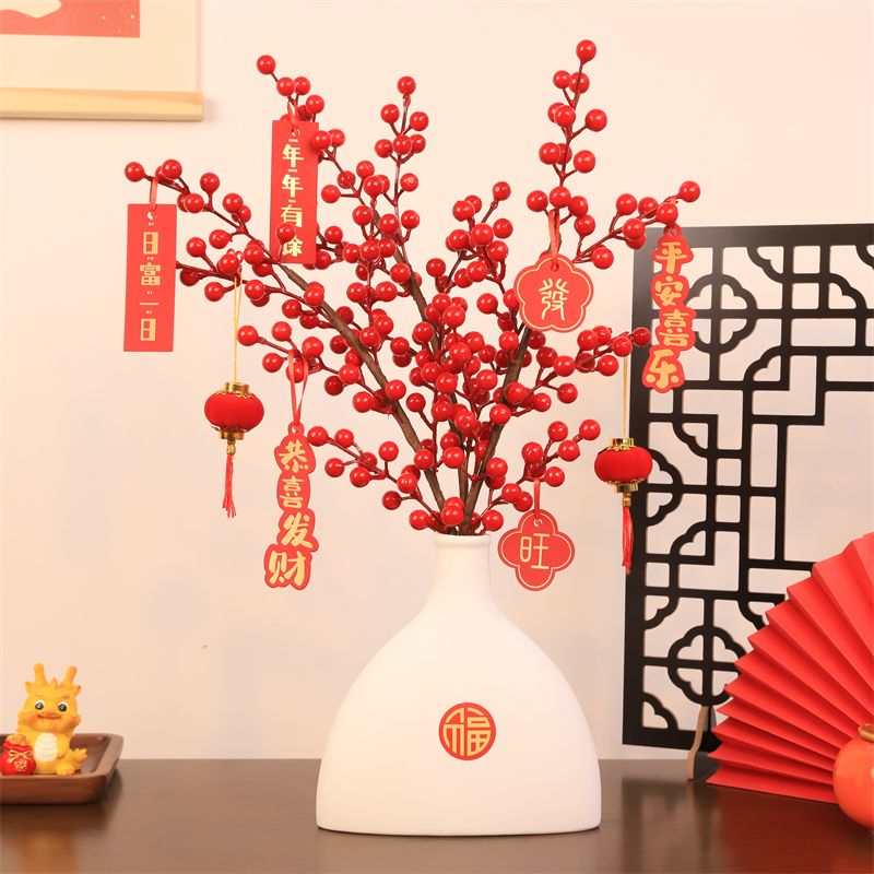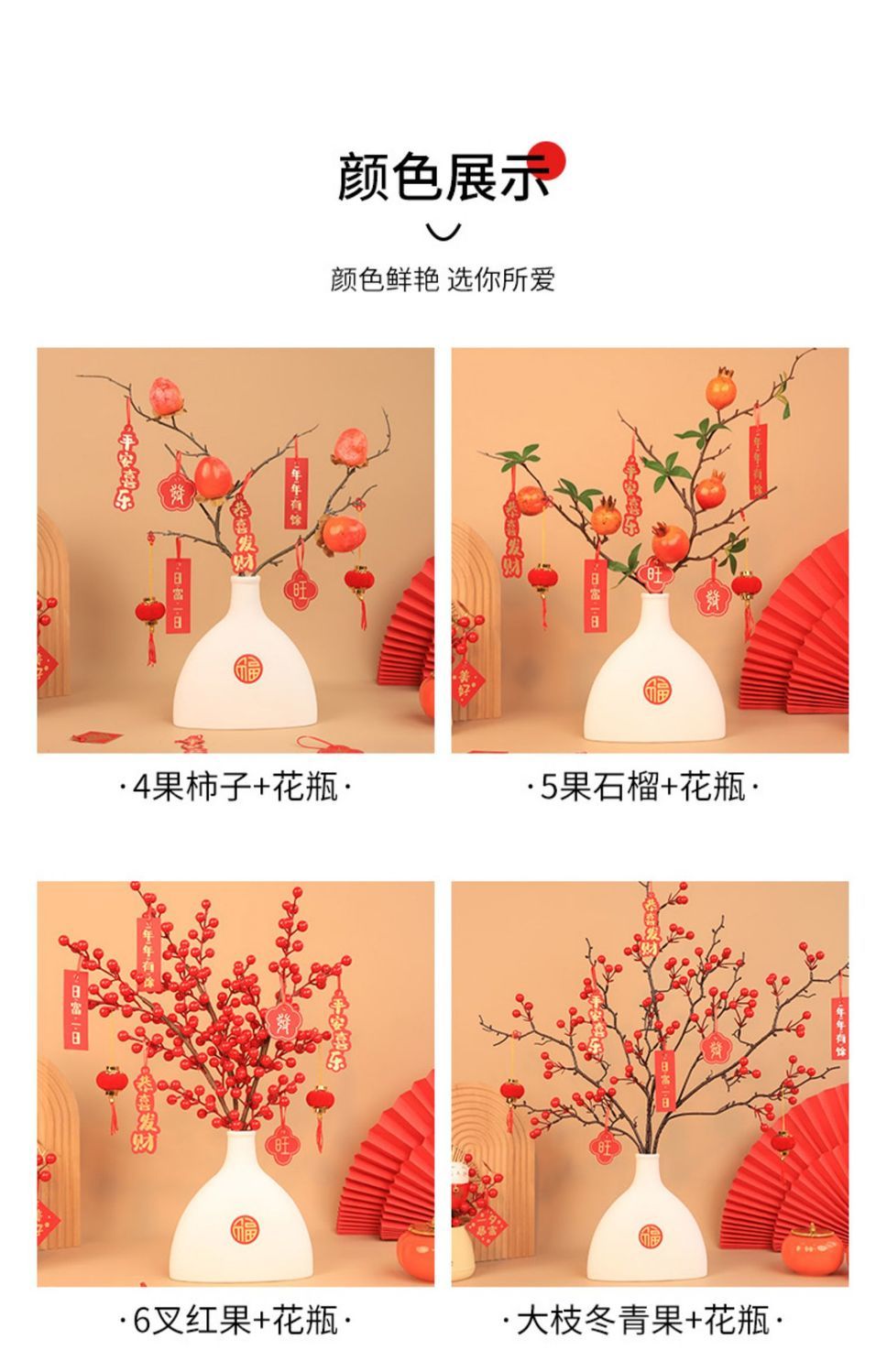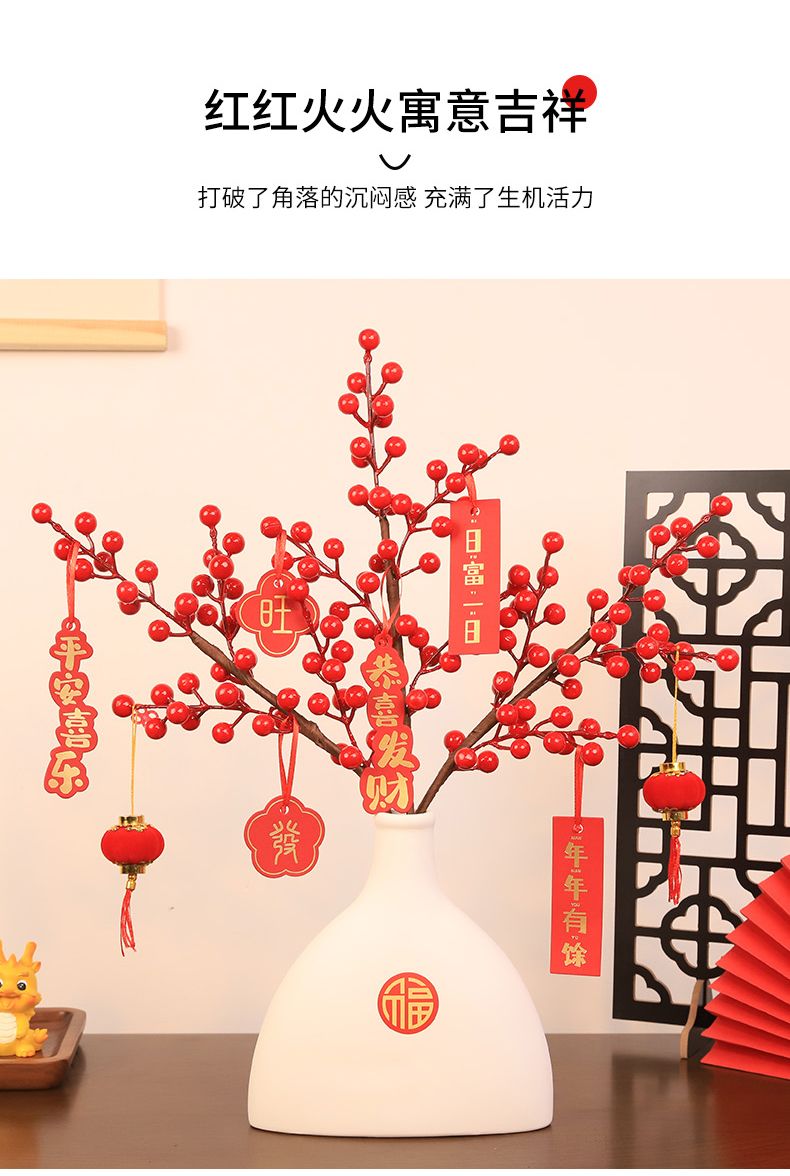 新年红果发财果假花仿真花摆设年宵花乔迁之喜新居家居装饰品摆件