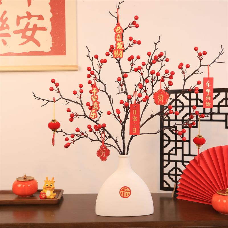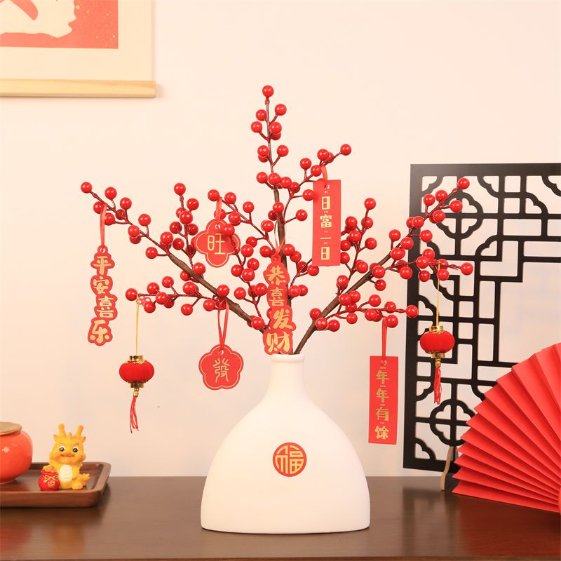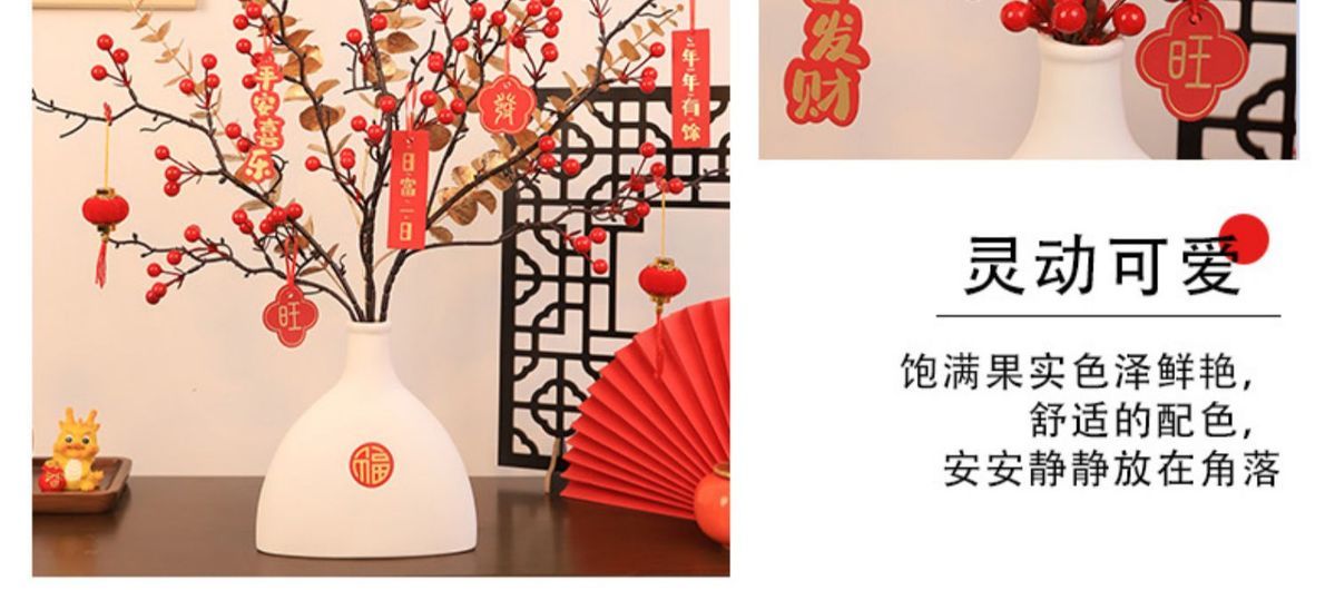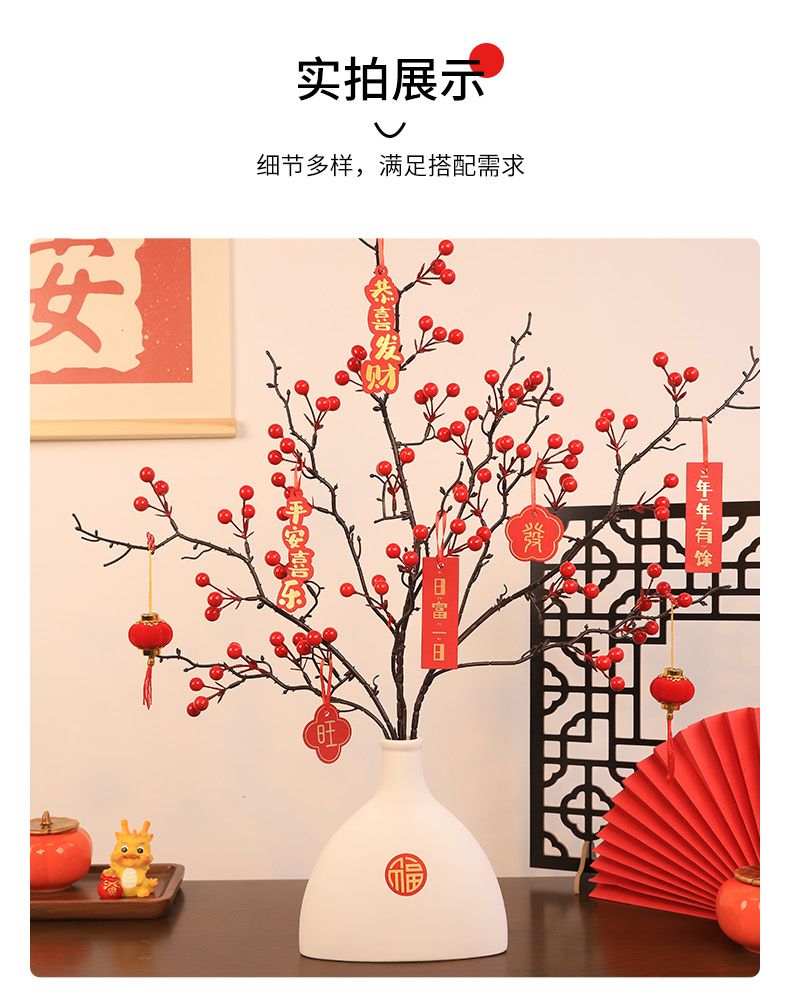 | plastic flat bottle + large branch hollyberry 1 piece [send lucky card and lantern]](塑料扁瓶+大枝冬青果1支 【送福卡和灯笼】) | USD $3.33 | 999999 piece available |