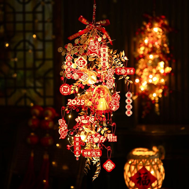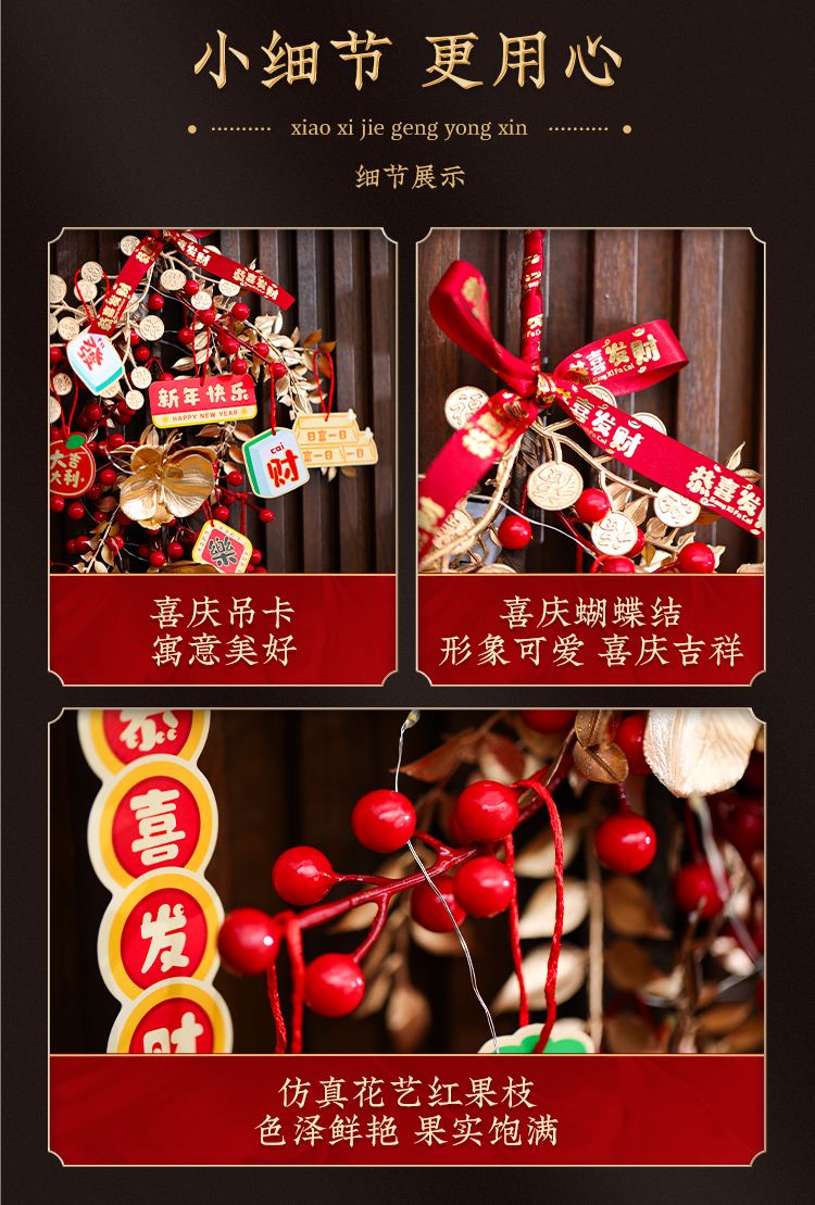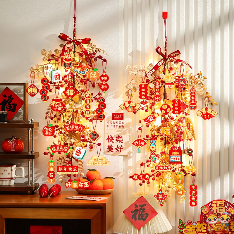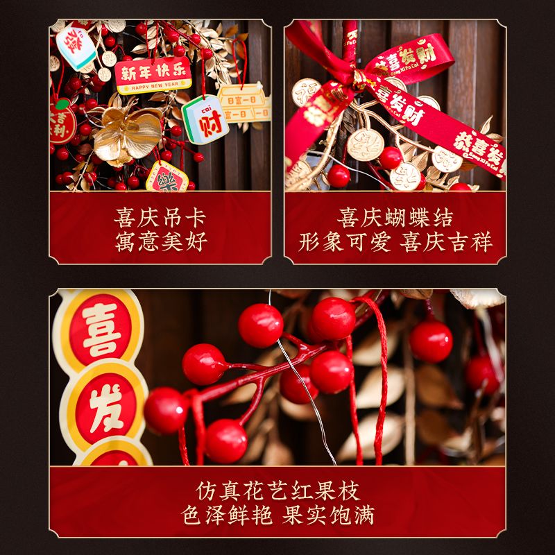 新年发财果仿真花挂墙墙面新年氛围装饰挂饰春节假花装饰红果挂件