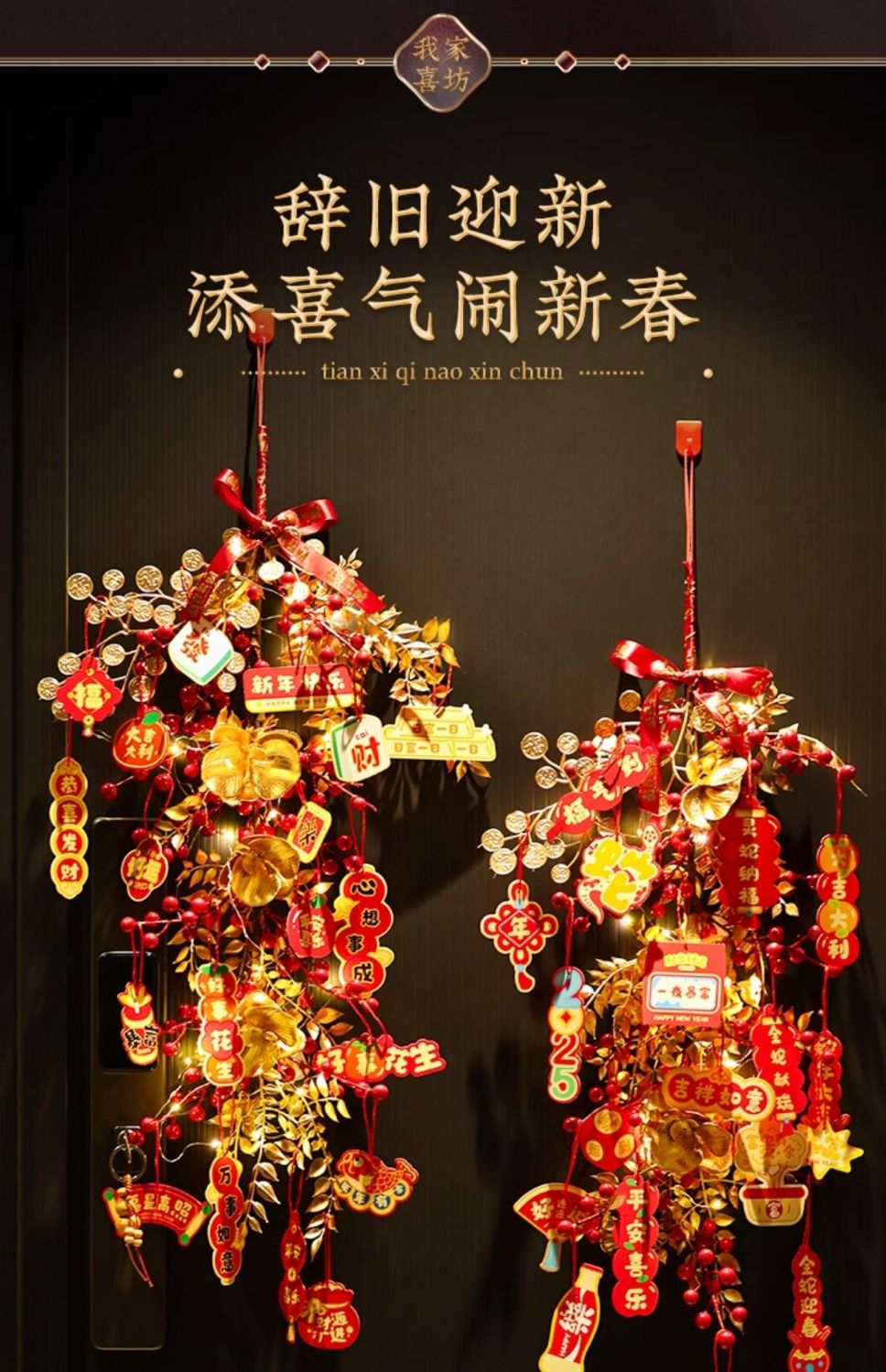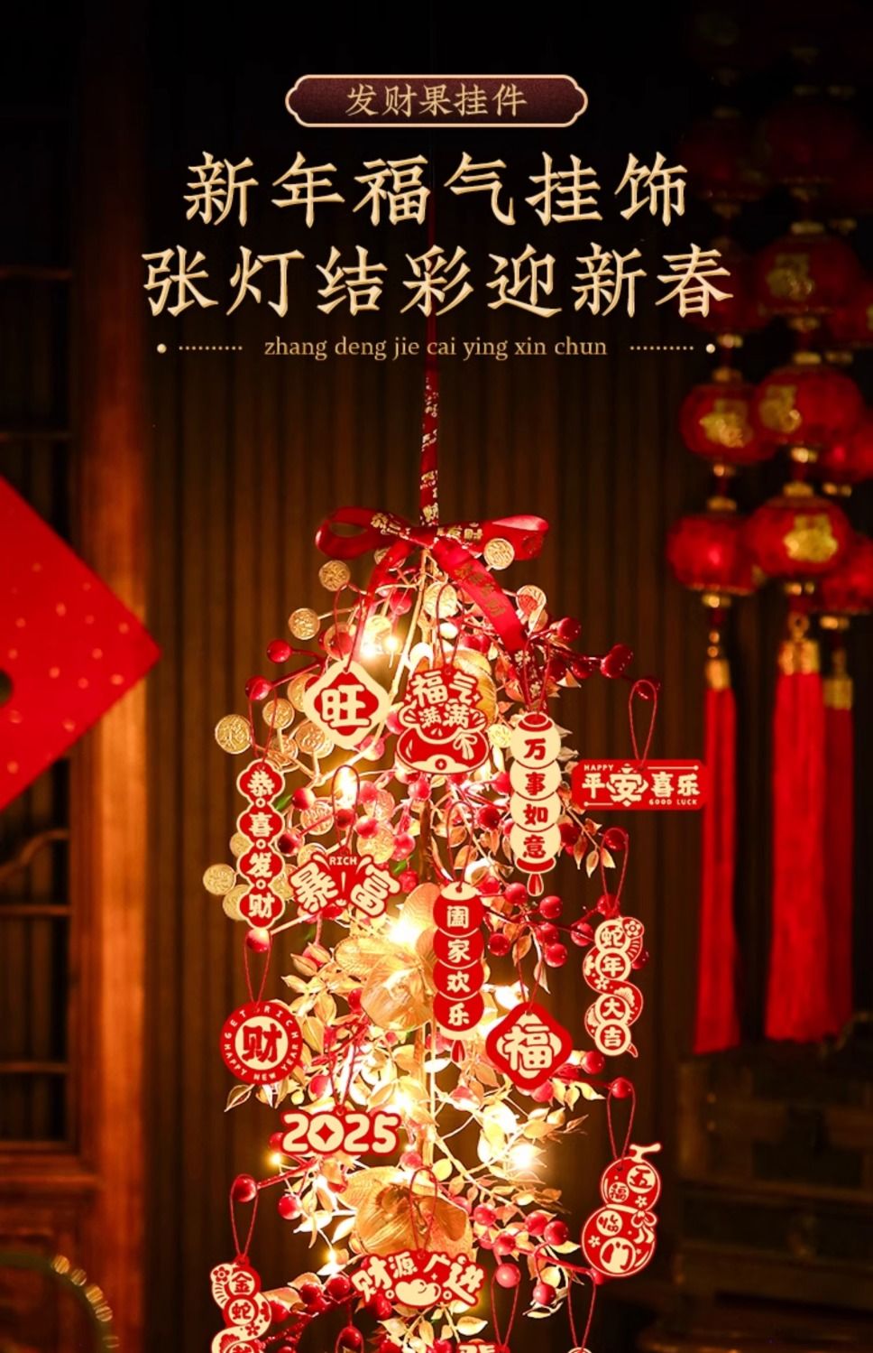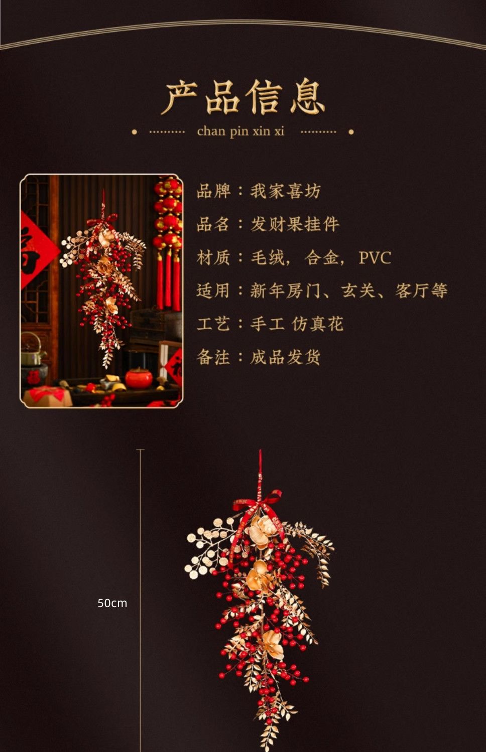 新年发财果仿真花挂墙墙面新年氛围装饰挂饰春节假花装饰红果挂件