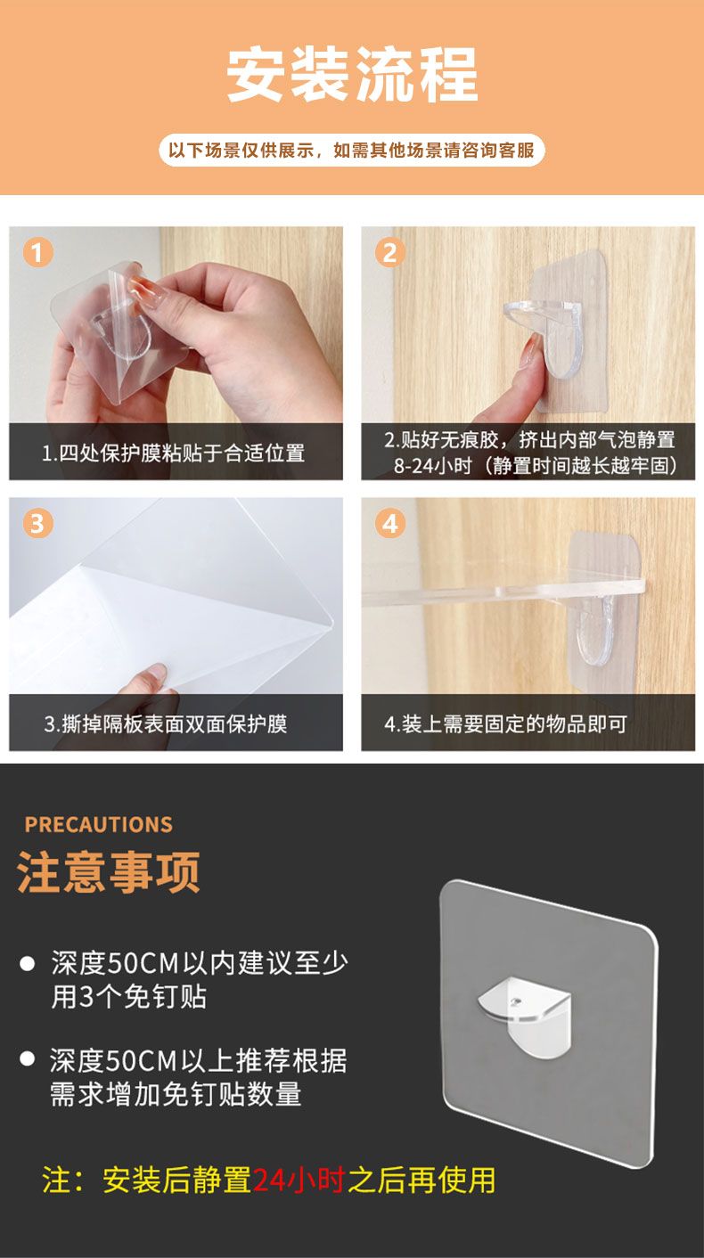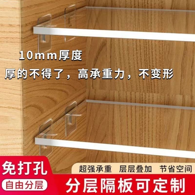 亚克力隔板隔断免打孔置物架衣柜橱柜整理分层板书架通用型托板