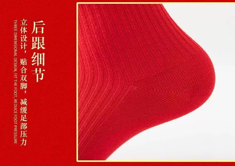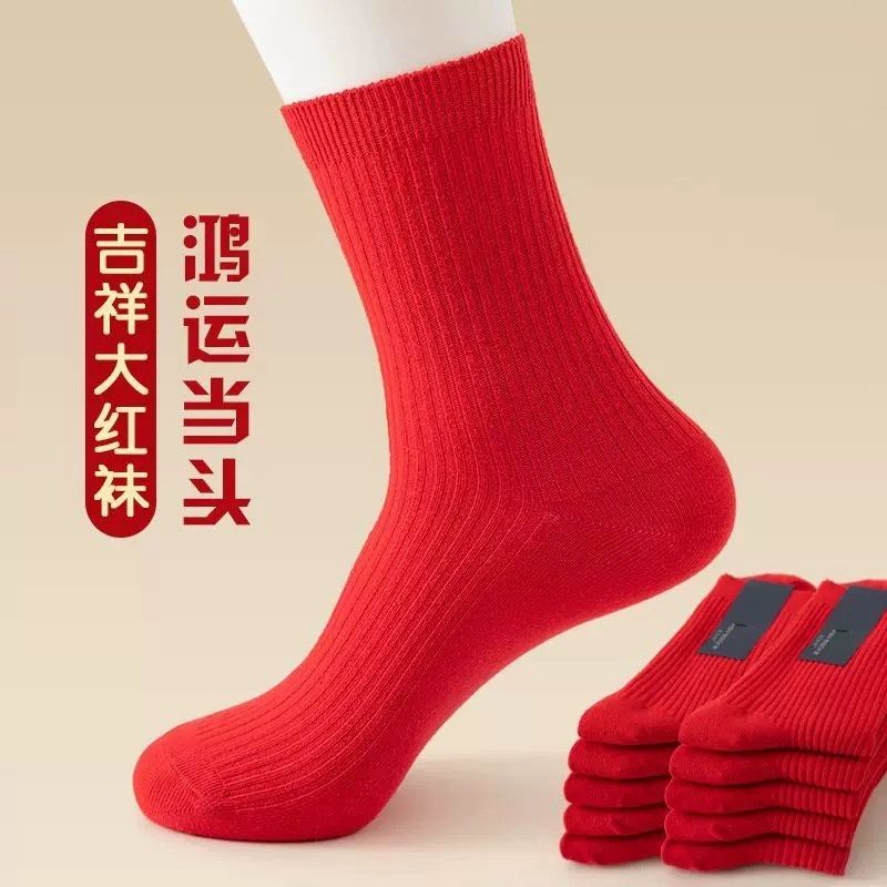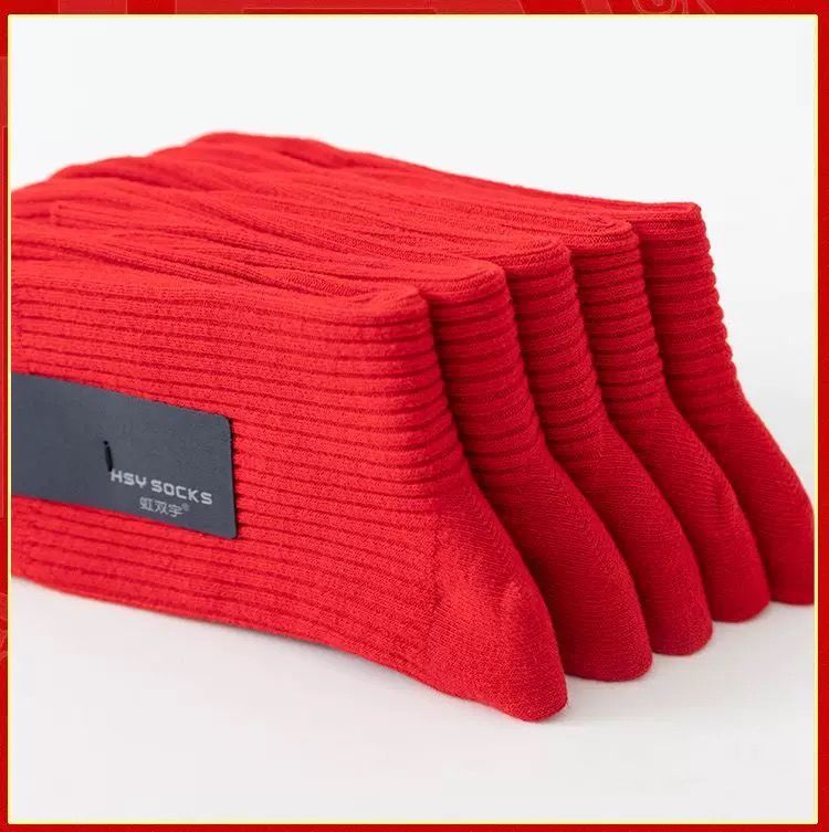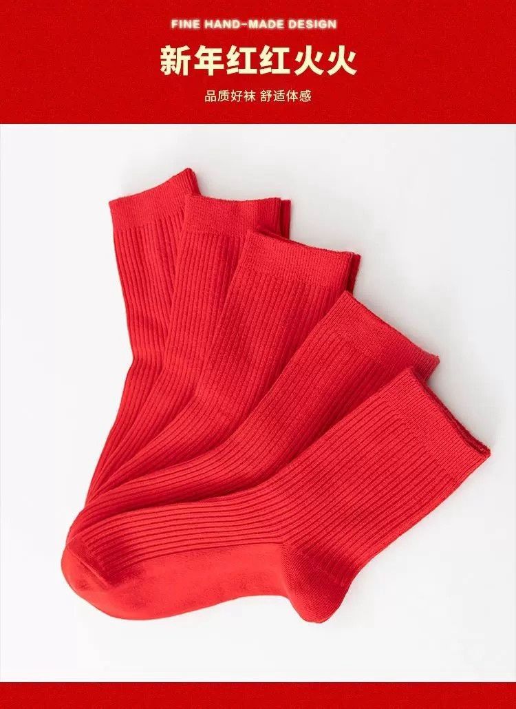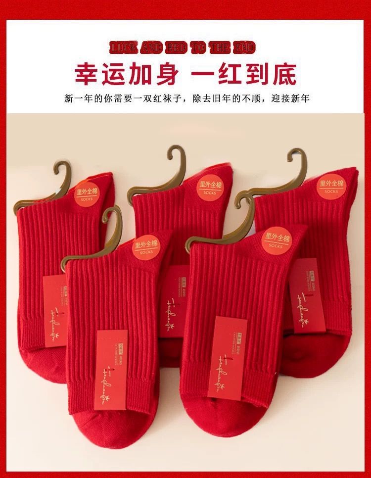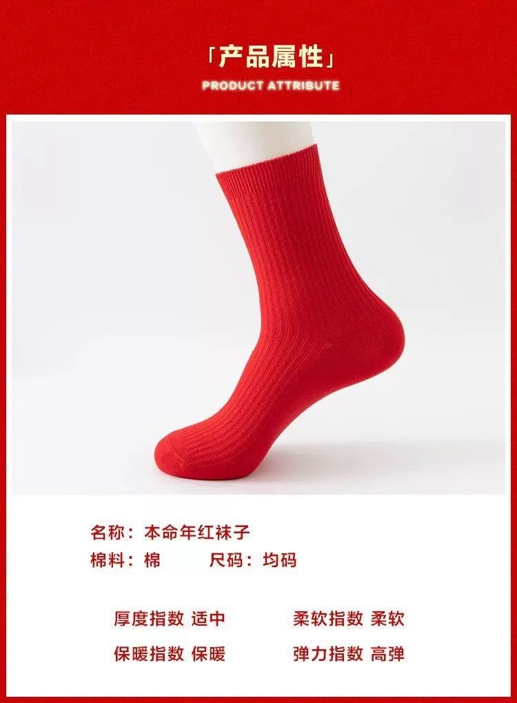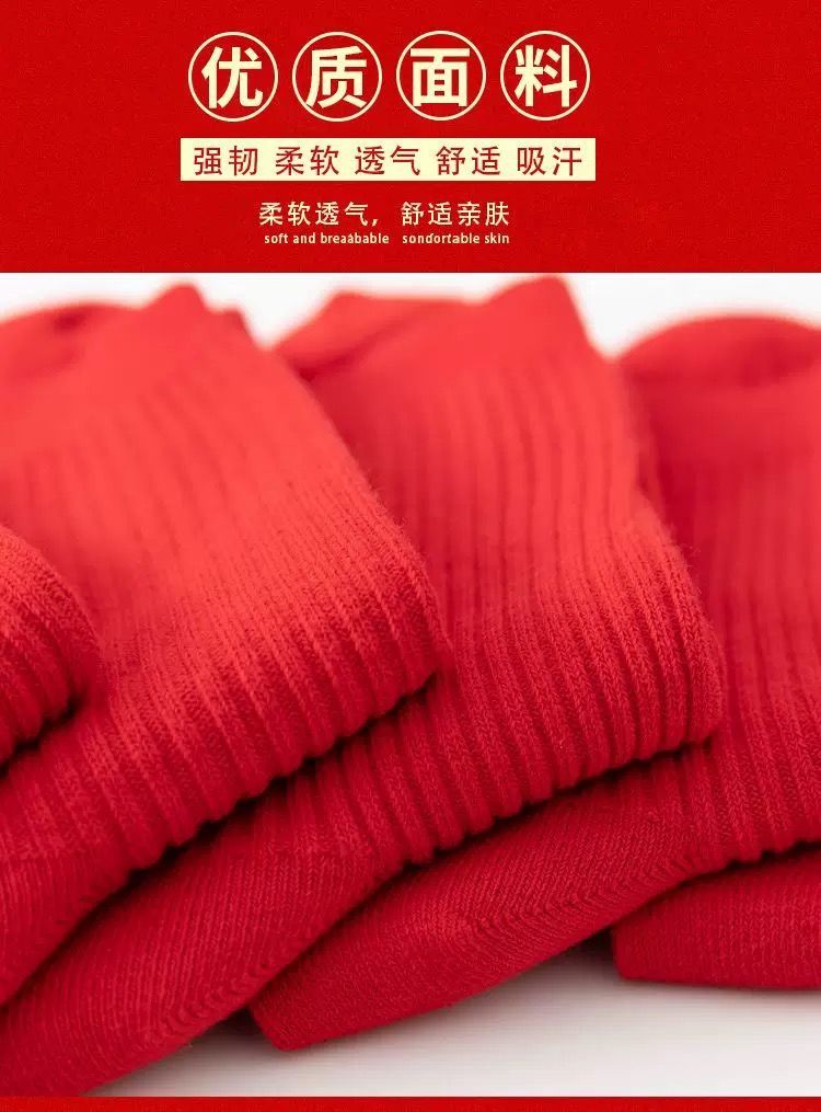 【推荐】100%纯棉本命年红色袜子男女双针全棉新年中高筒防臭结婚