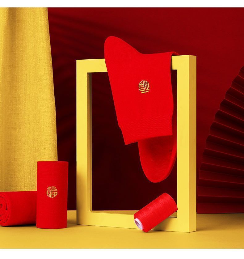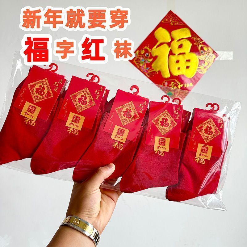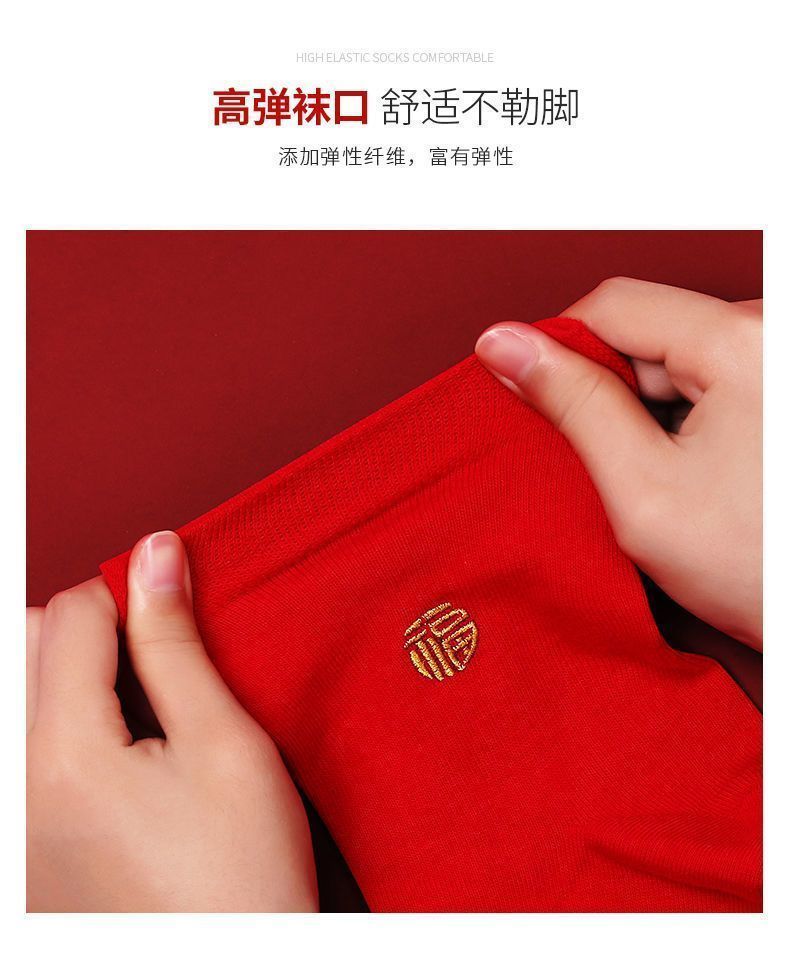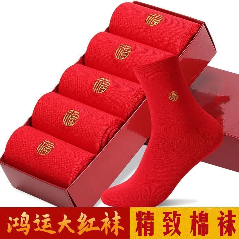 2025本命年不掉色红袜子礼物男女士秋冬中高筒纯棉大红圣诞袜