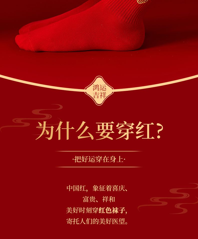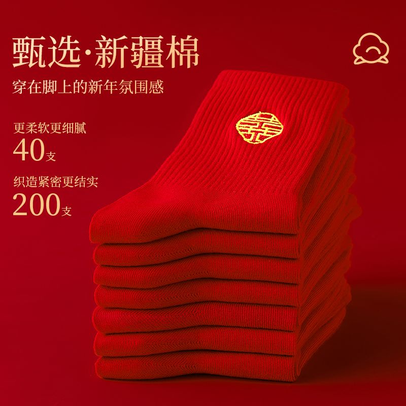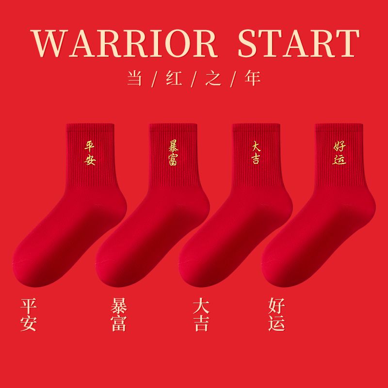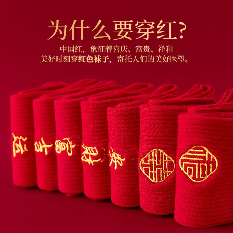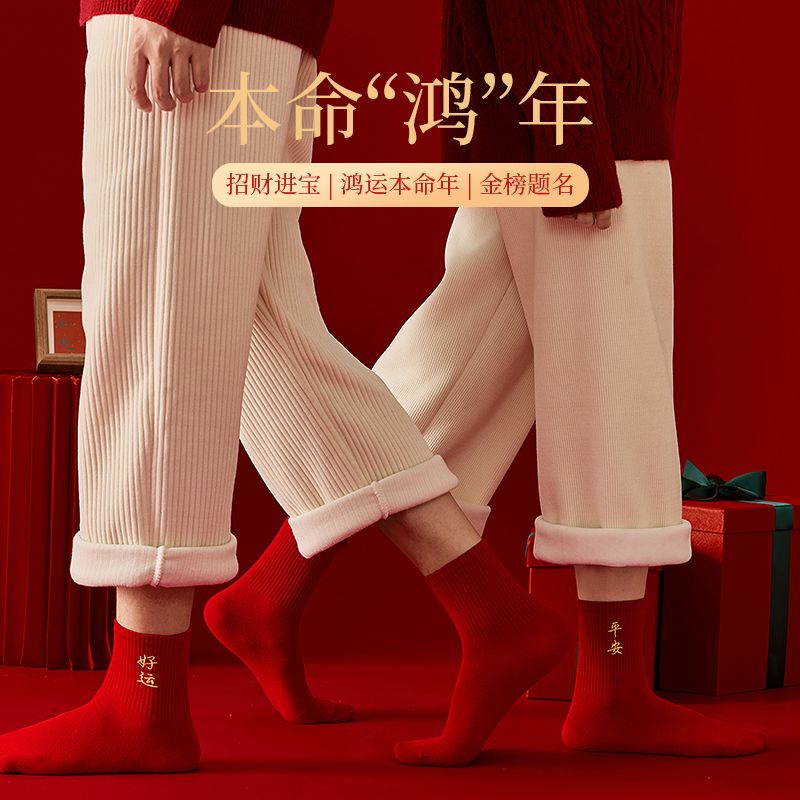 回力红色中筒袜100%纯棉本命年结婚礼物蛇年保暖秋冬季新款红袜子