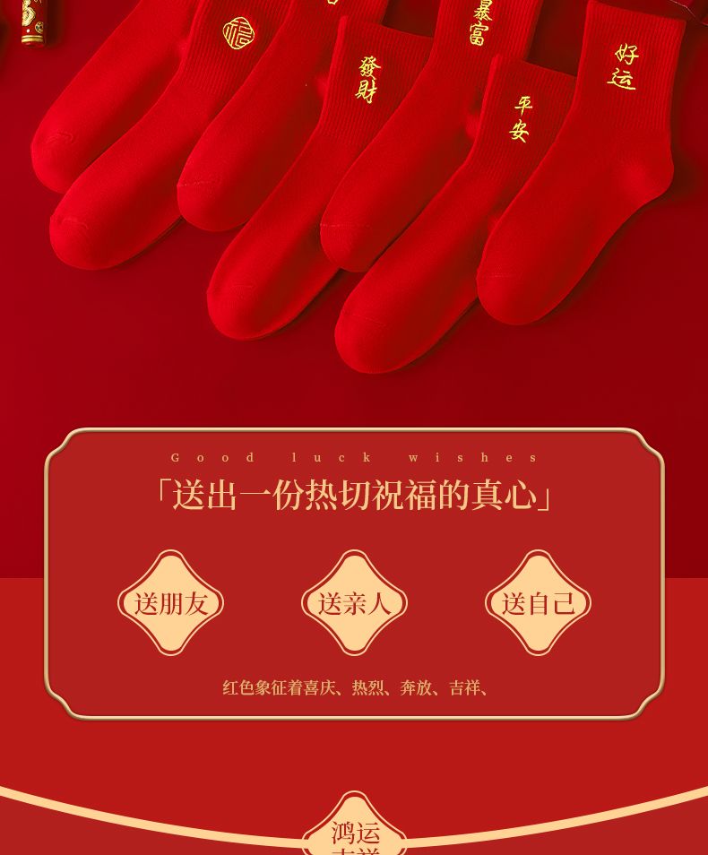| [4 pairs of the same style for men and women] 2 fu characters + peace + fortune(【男女同款4双】2福字+平安+发财) | USD $4.66 | 999999 piece available |