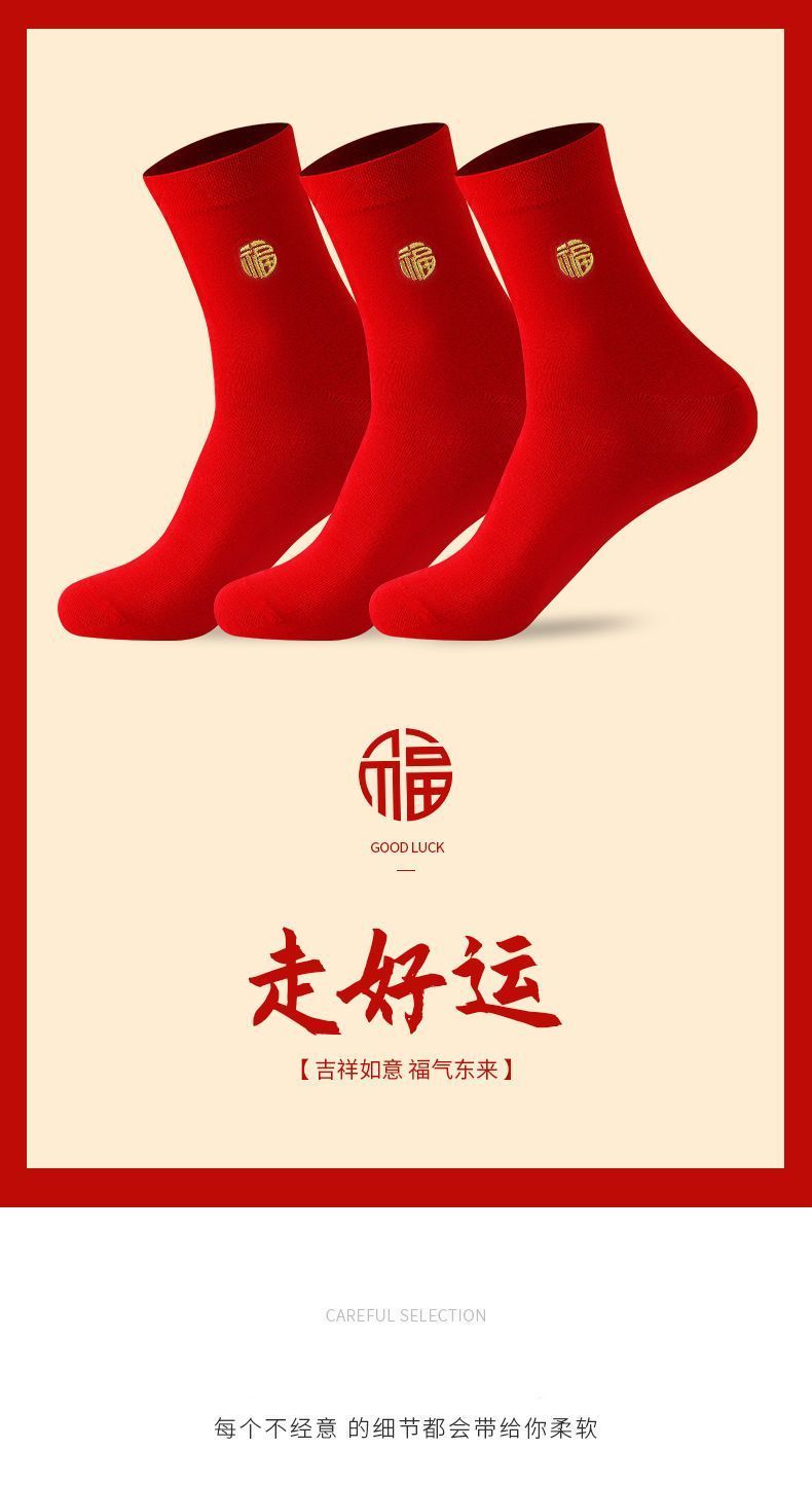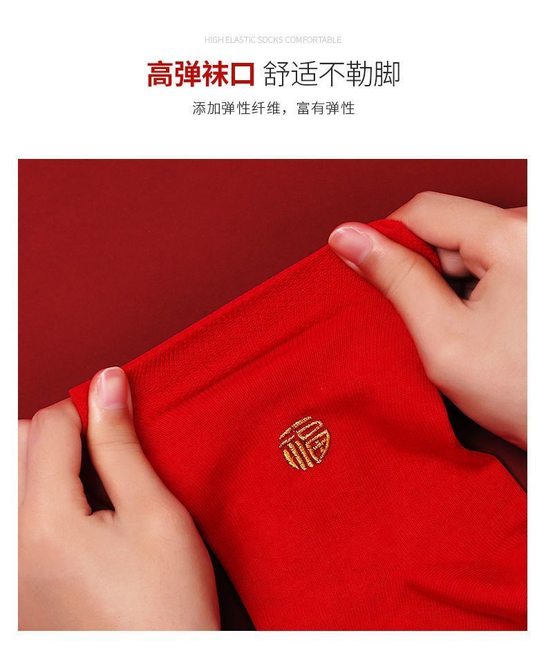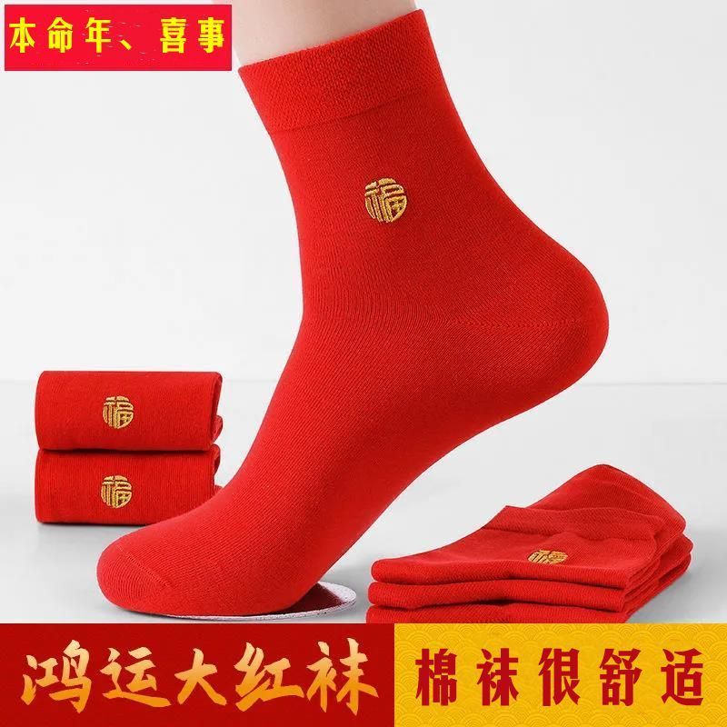 10双不掉色属蛇红袜子本命年礼物男女士秋冬中高筒纯棉大红圣诞袜