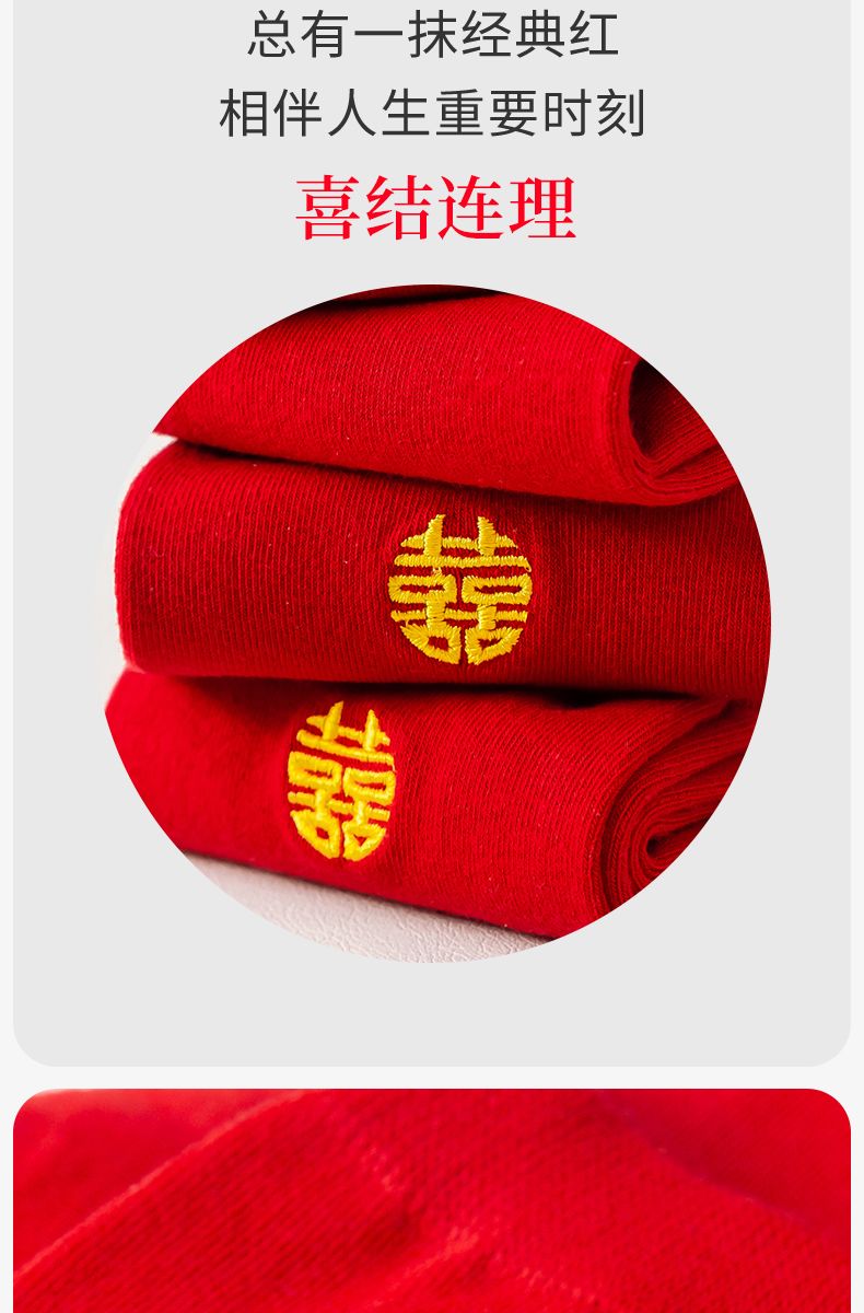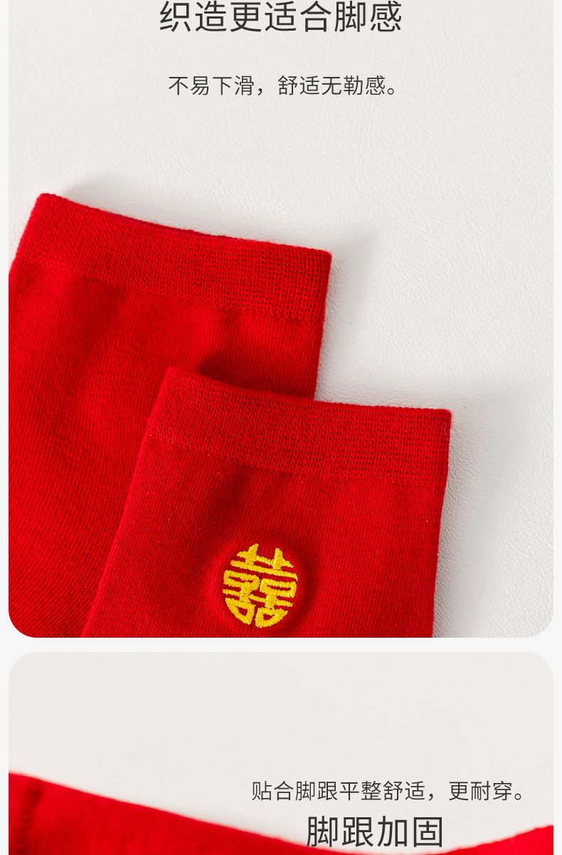 红袜子结婚情侣一对喜字女纯棉中筒袜新婚船袜大红色本命年龙年男