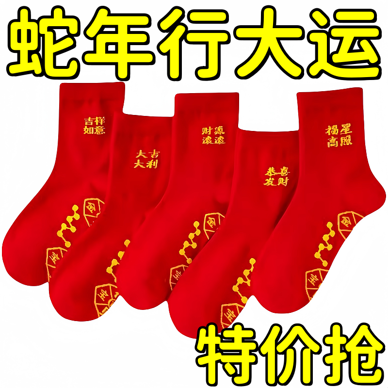 本命年蛇年红袜子男女士情侣结婚喜袜中筒袜蛇年秋冬款大红色棉袜