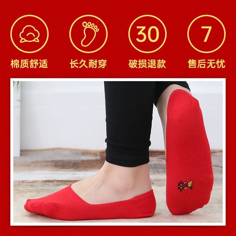 本命年红色袜子男士短袜蛇年礼物女士大红色纯棉浅口隐形船袜夏季