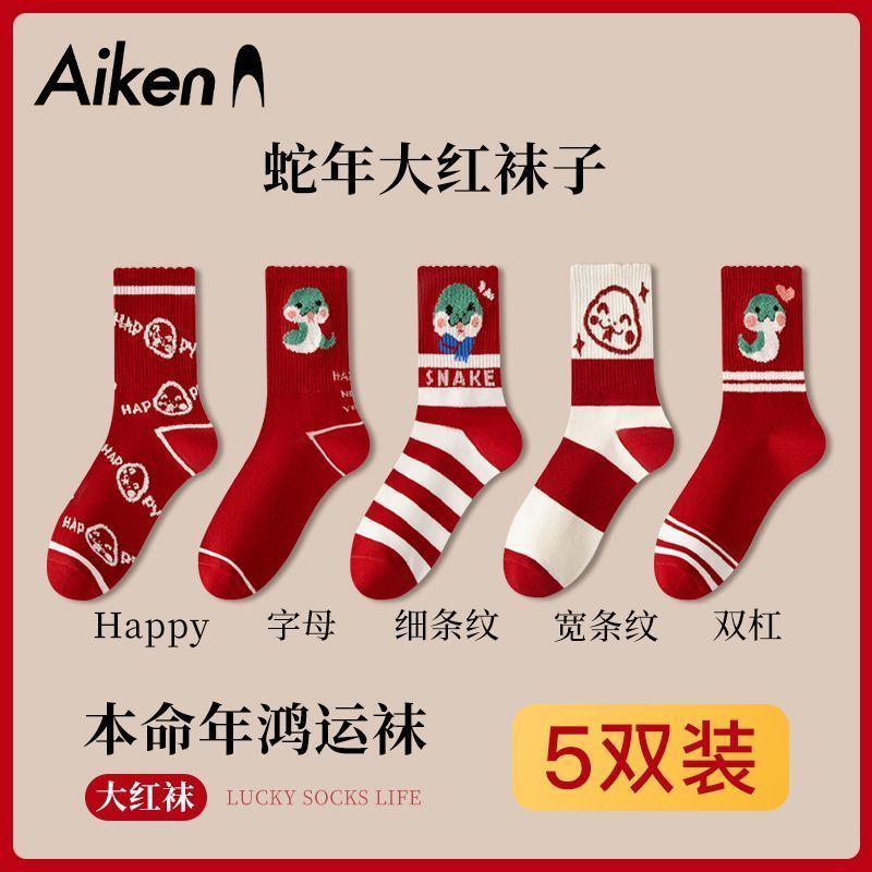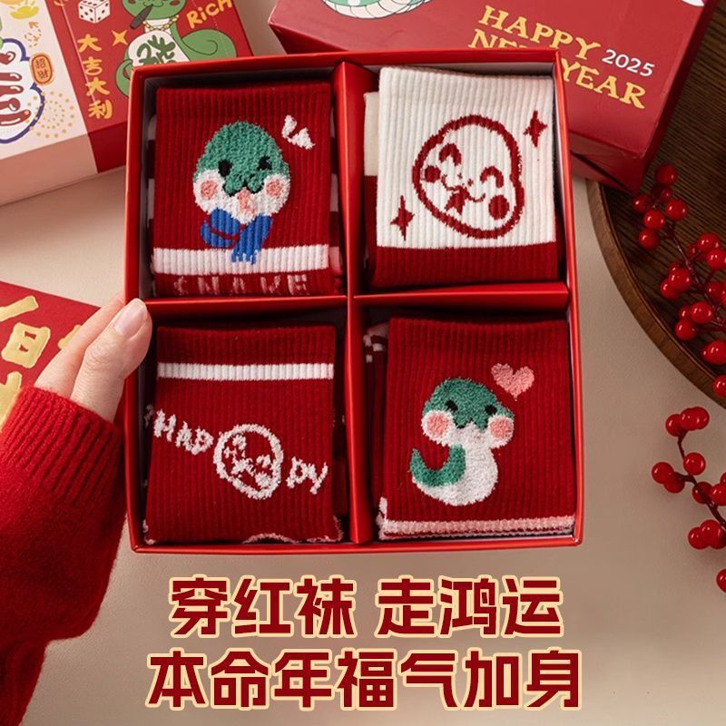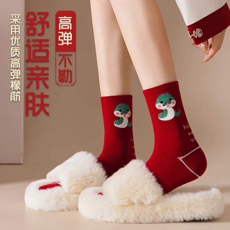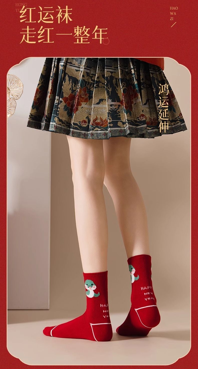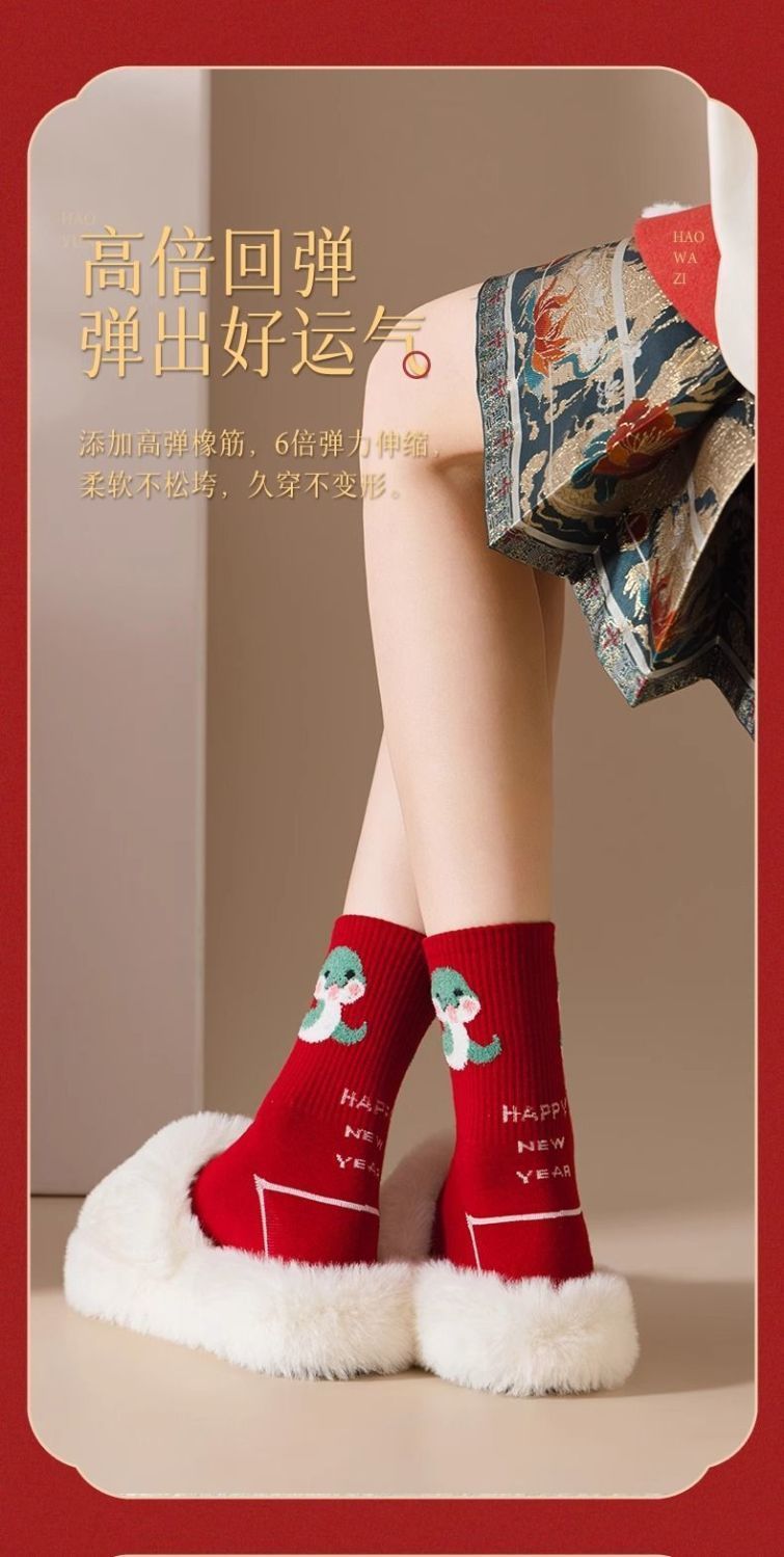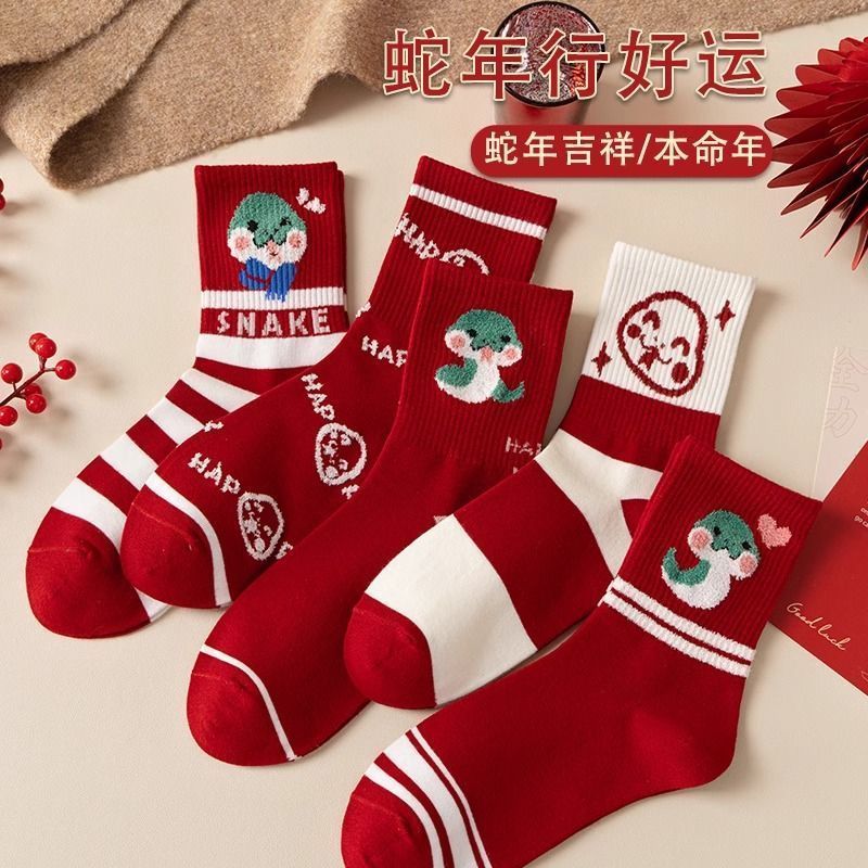 蛇年本命年大红运动袜子套装宿舍大花加厚款