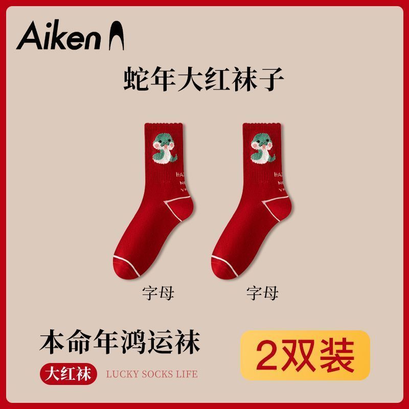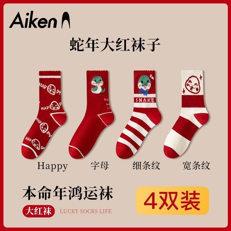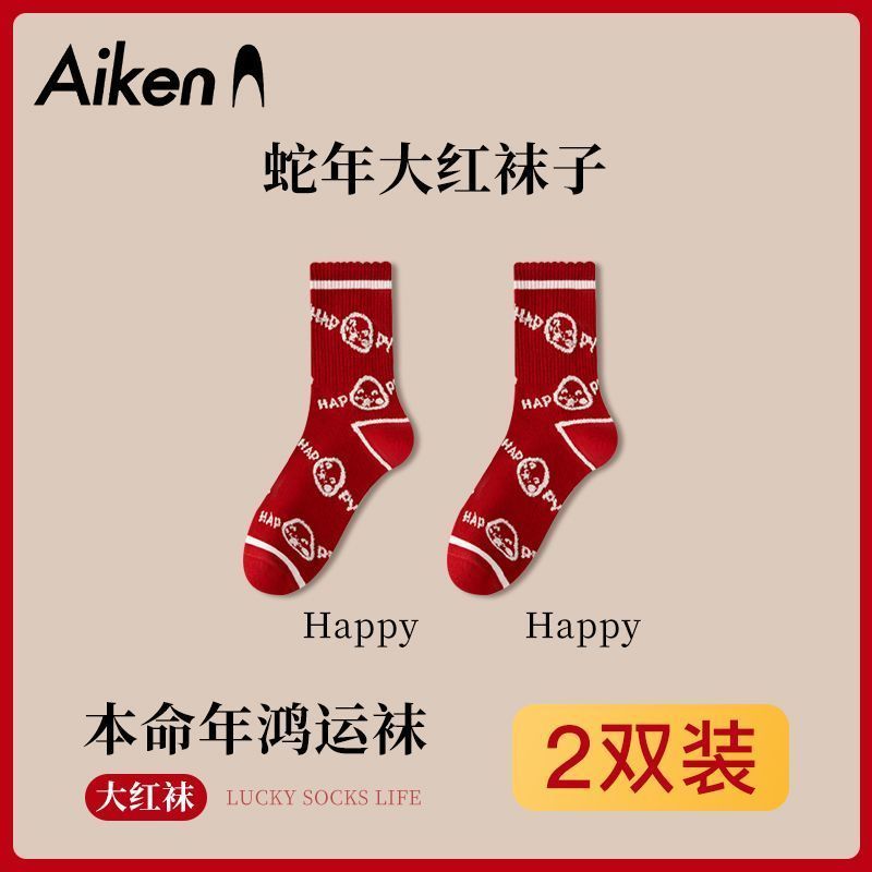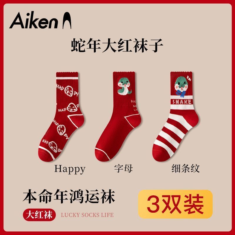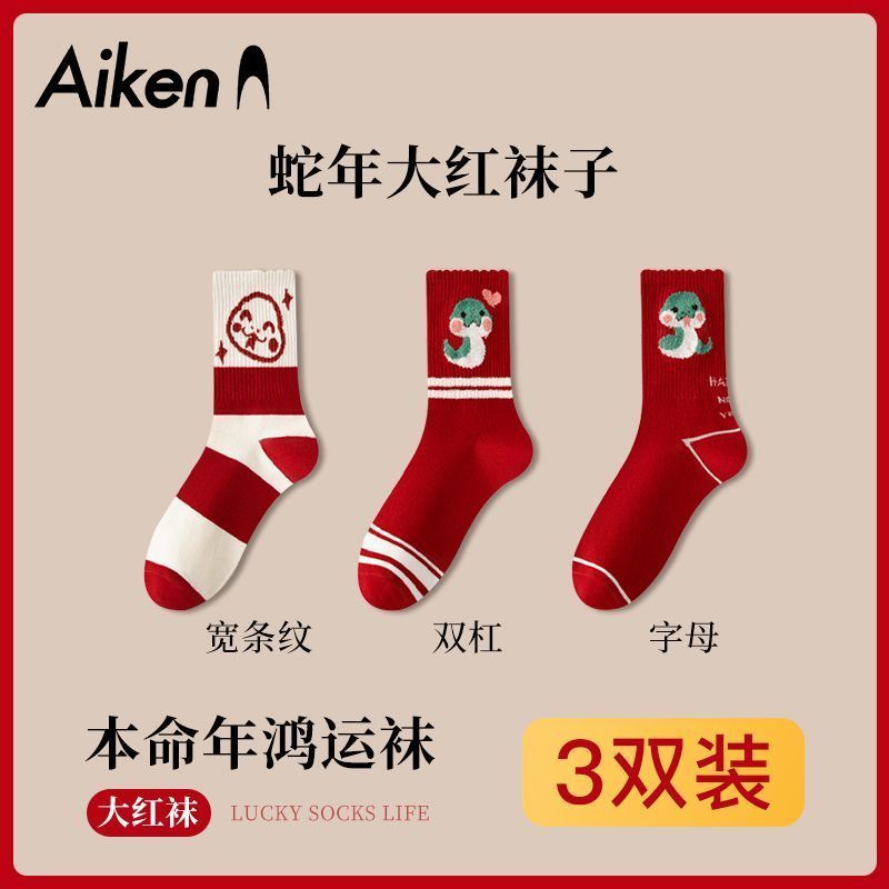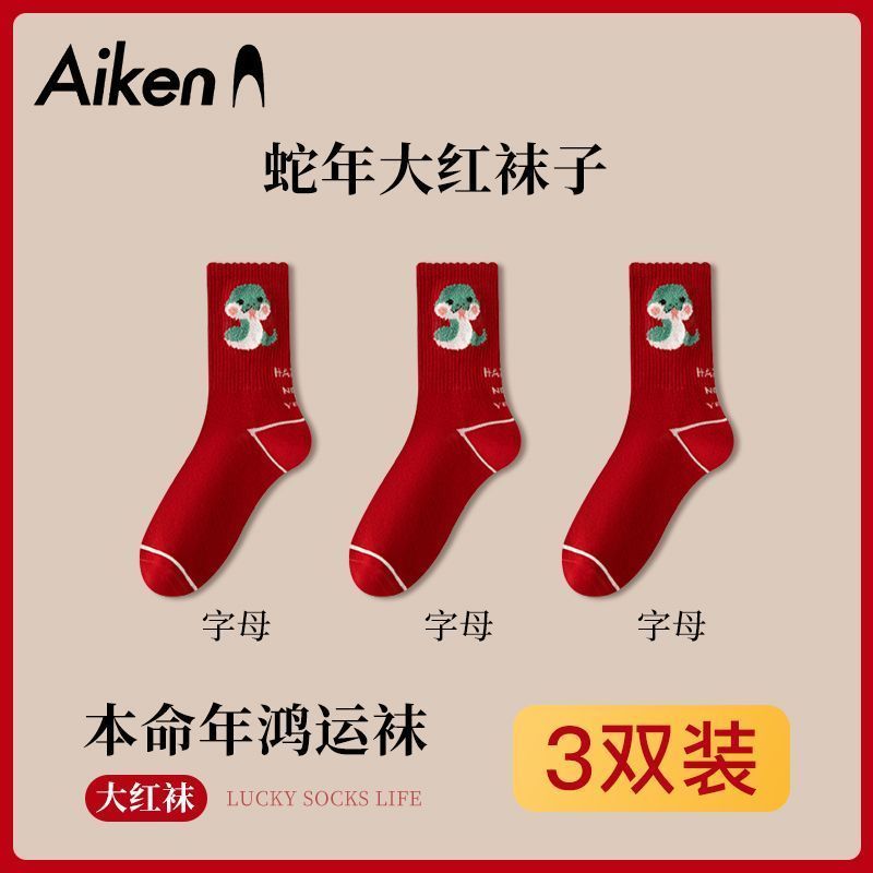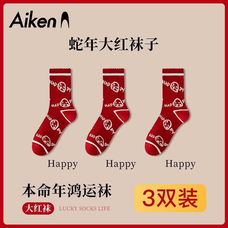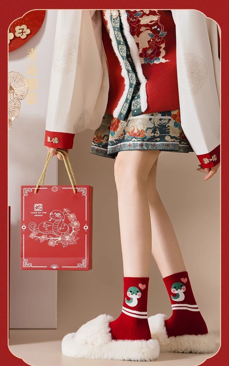 蛇年本命年大红运动袜子套装宿舍大花加厚款