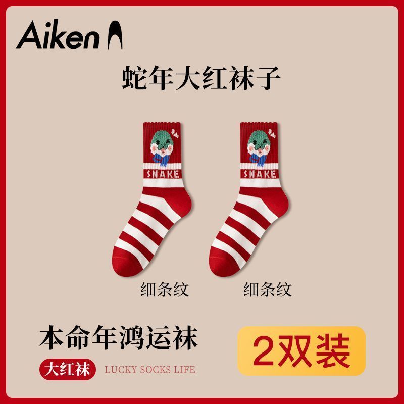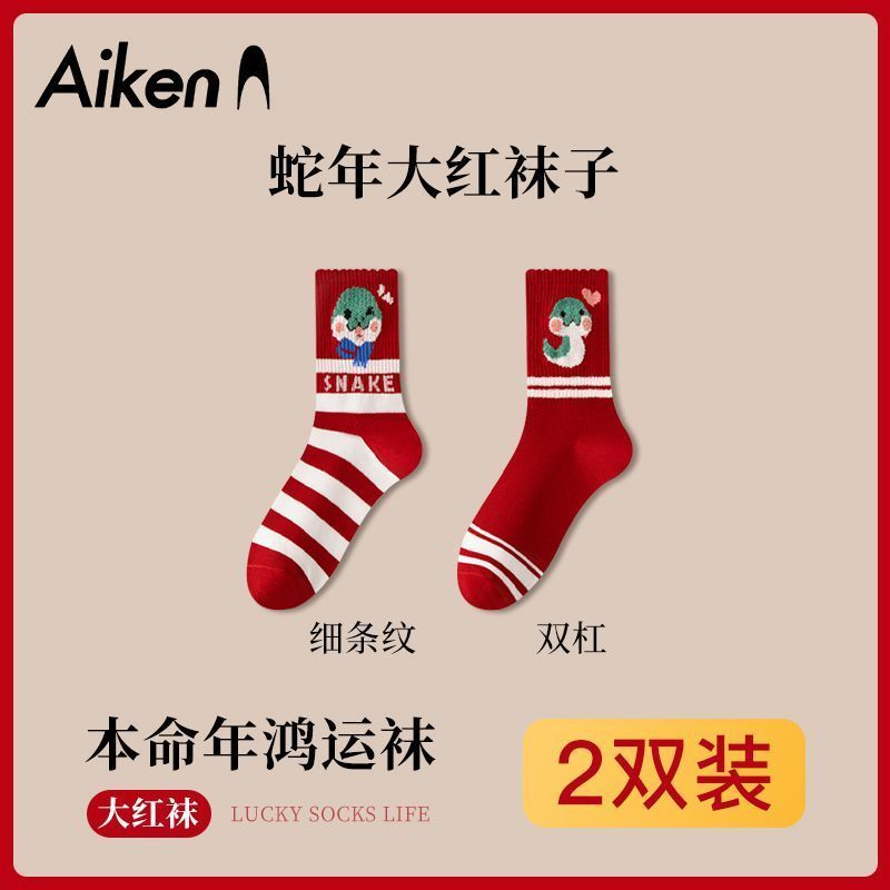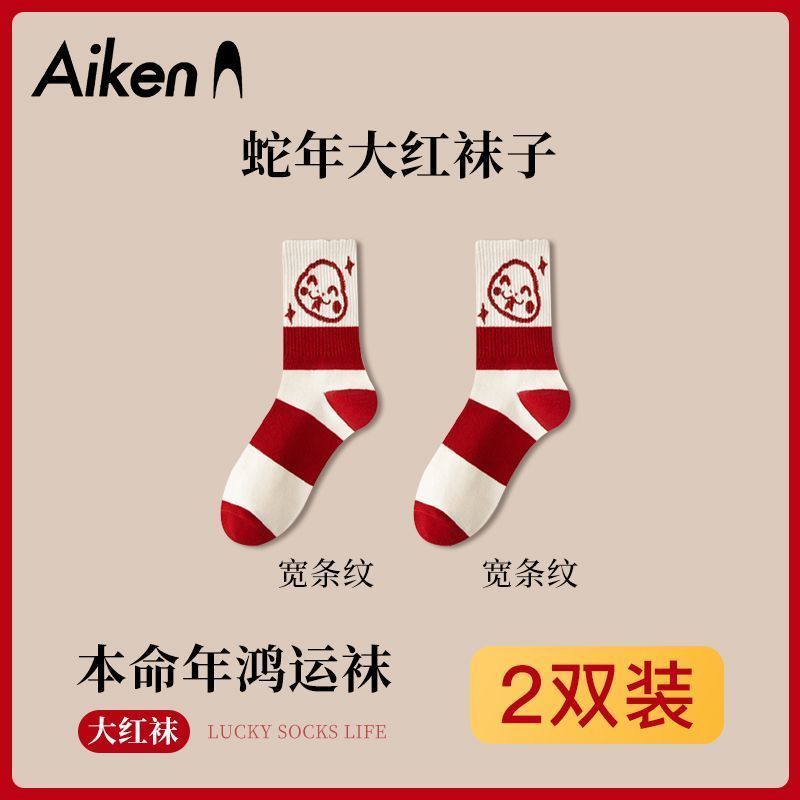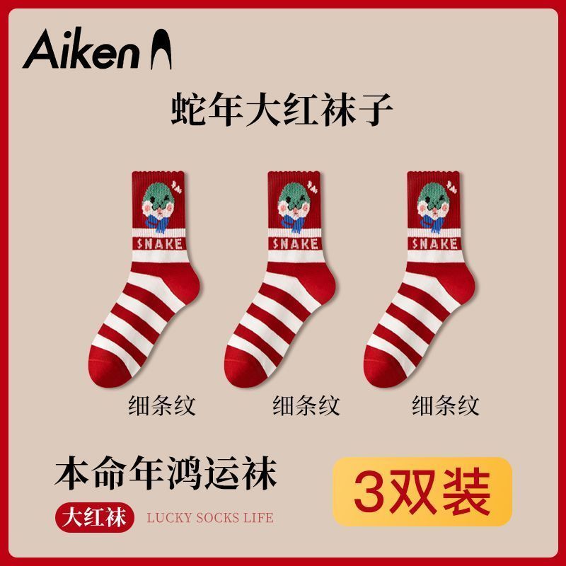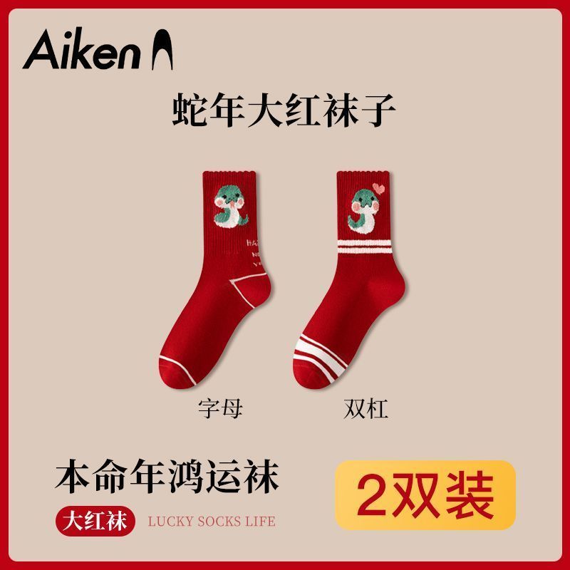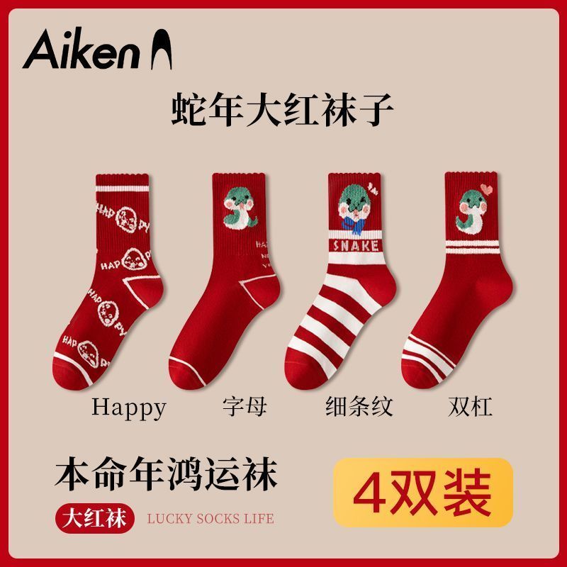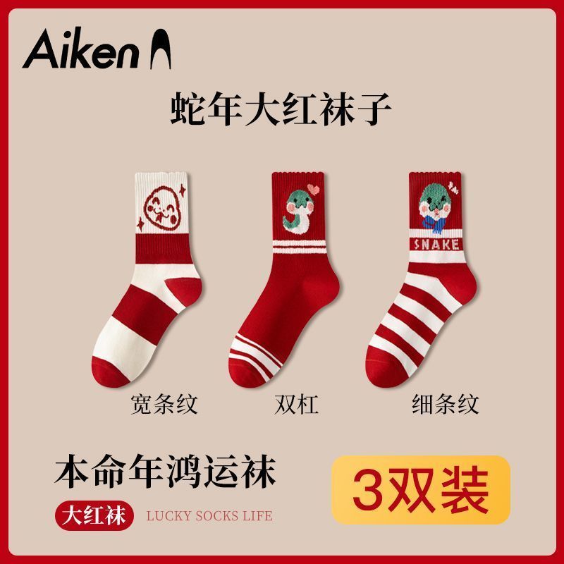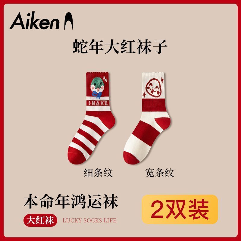蛇年本命年大红运动袜子套装宿舍大花加厚款