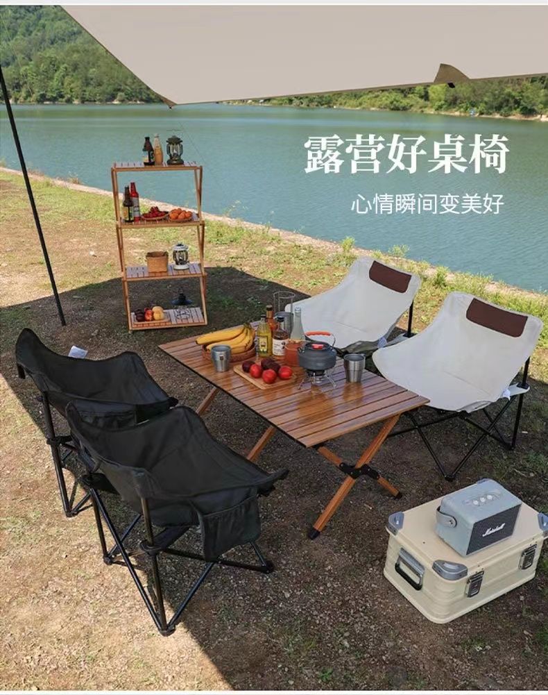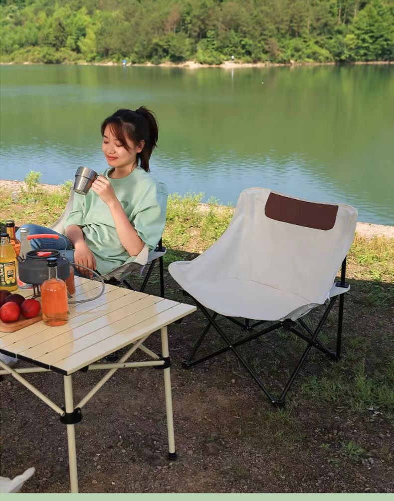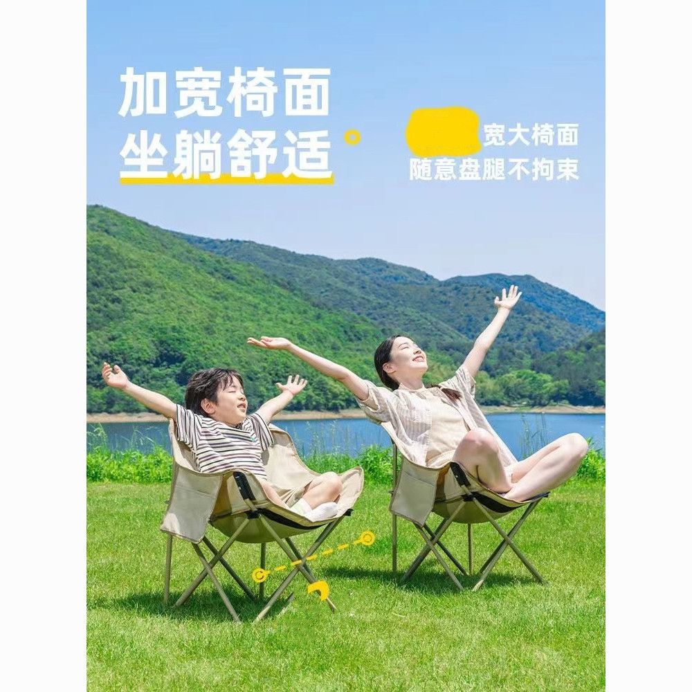 启发户外折叠椅露营椅子便携月亮椅小马扎野餐桌椅钓鱼凳子懒人椅