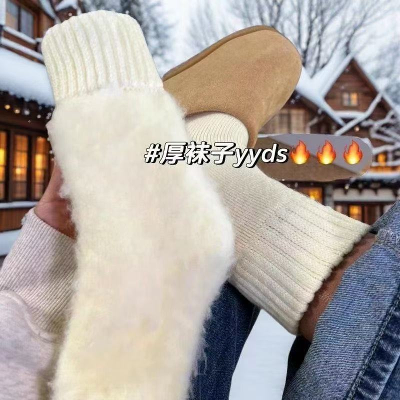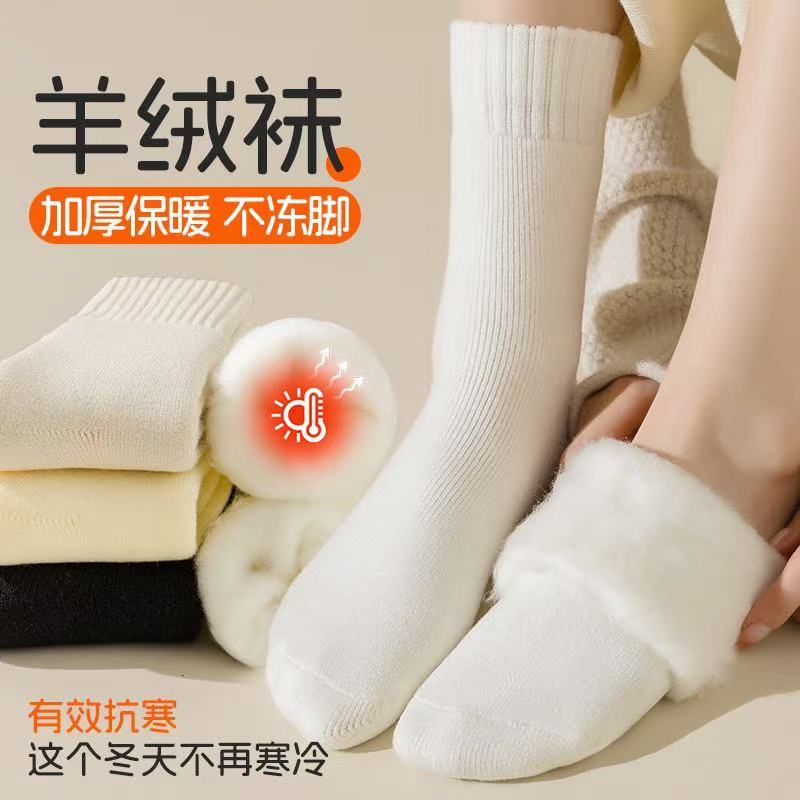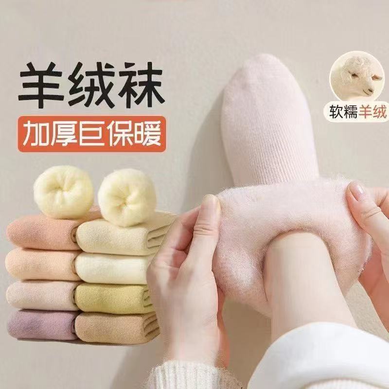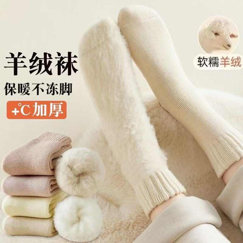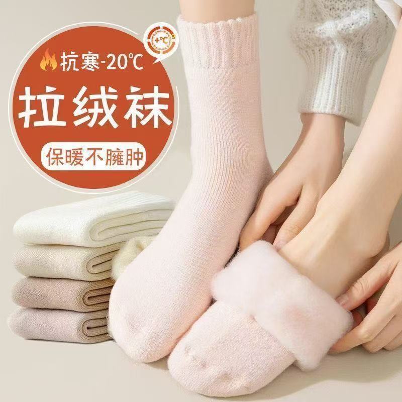 羊绒袜子女中筒袜冬季加绒保暖长筒棉袜加厚长袜秋冬款羊毛月子袜