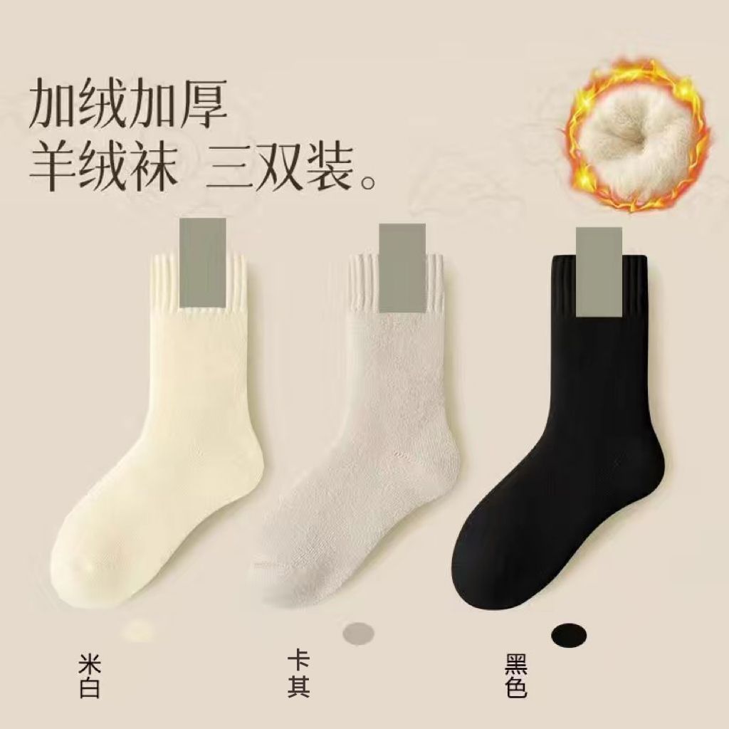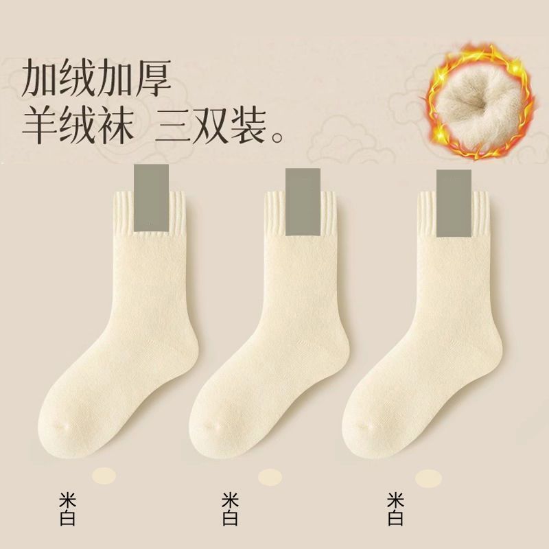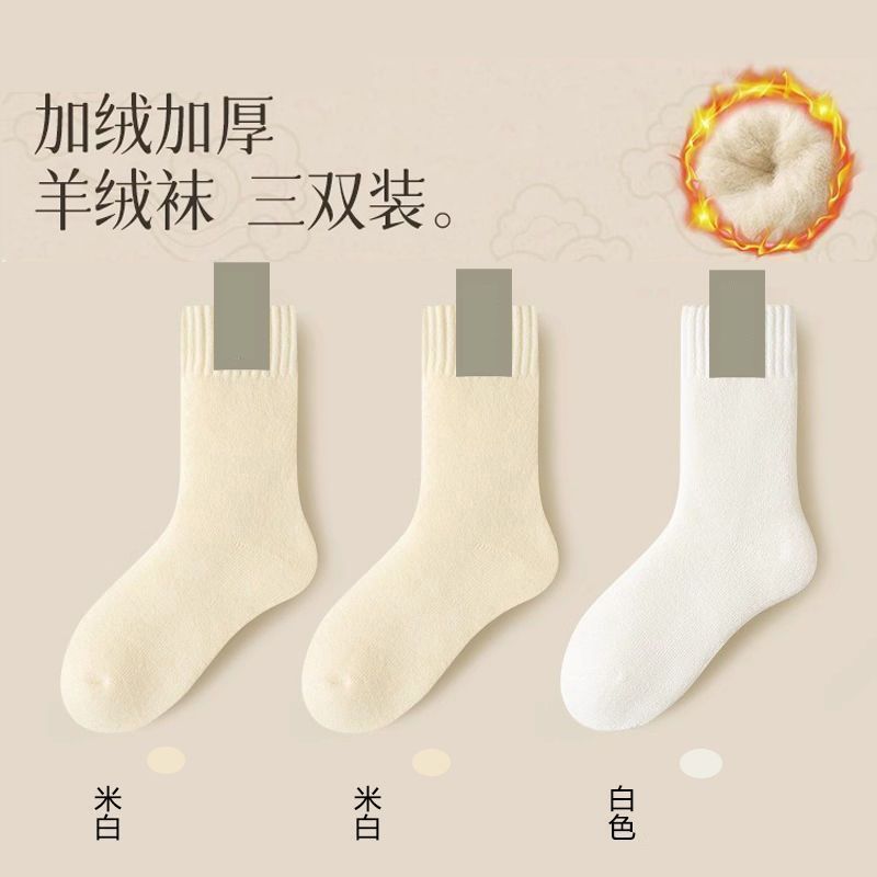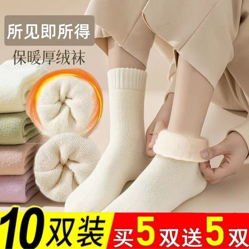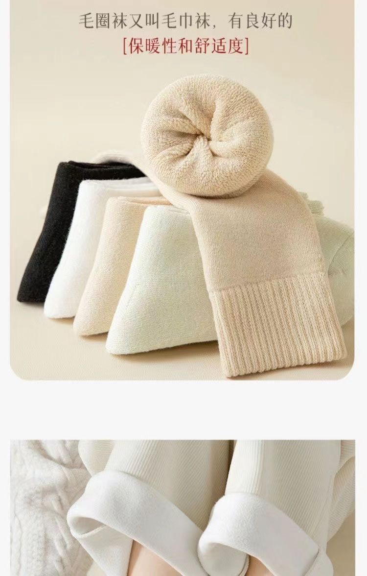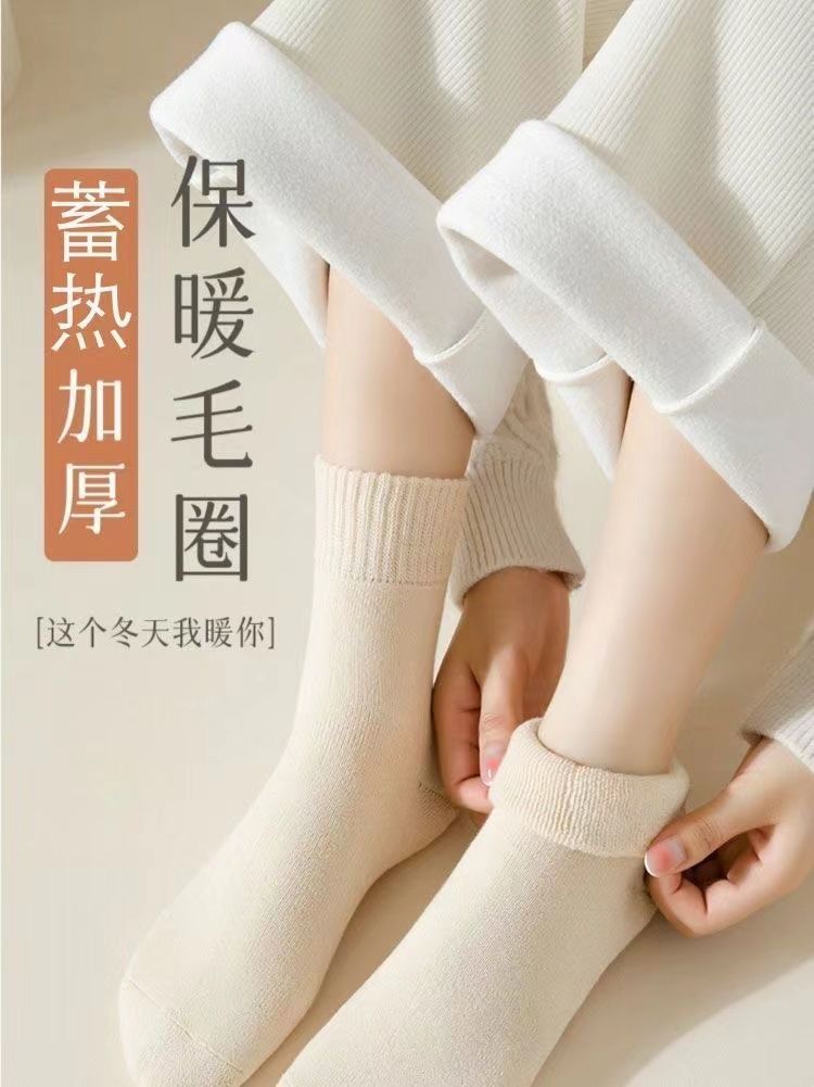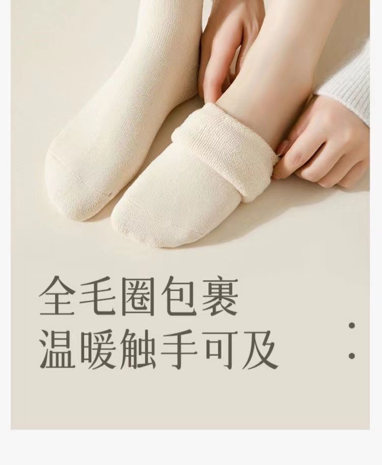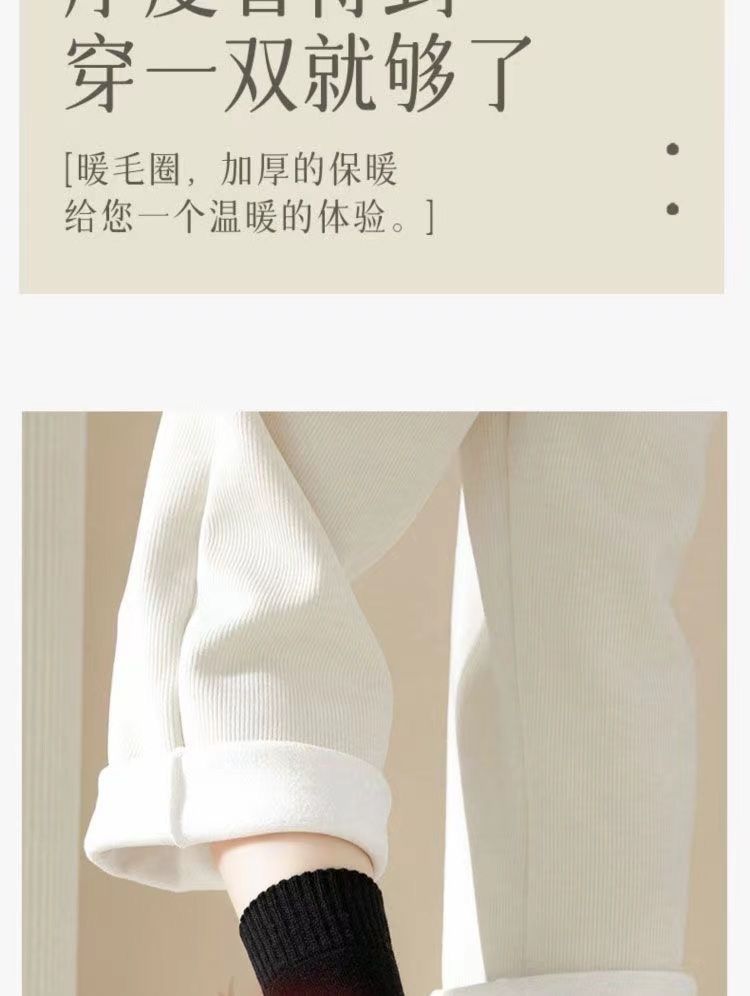 特厚加绒女秋冬羊毛质感 加绒保暖抗寒毛圈长筒袜冬天轻暖月袜子