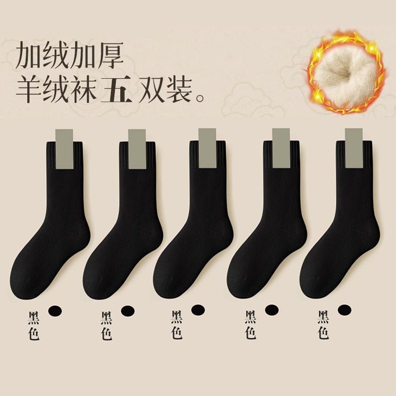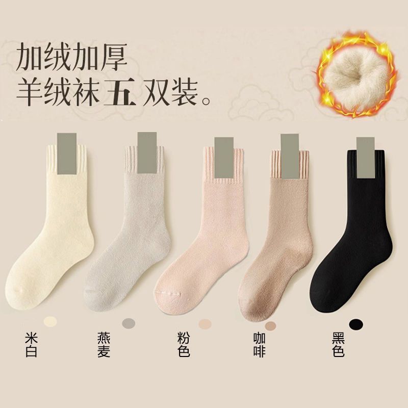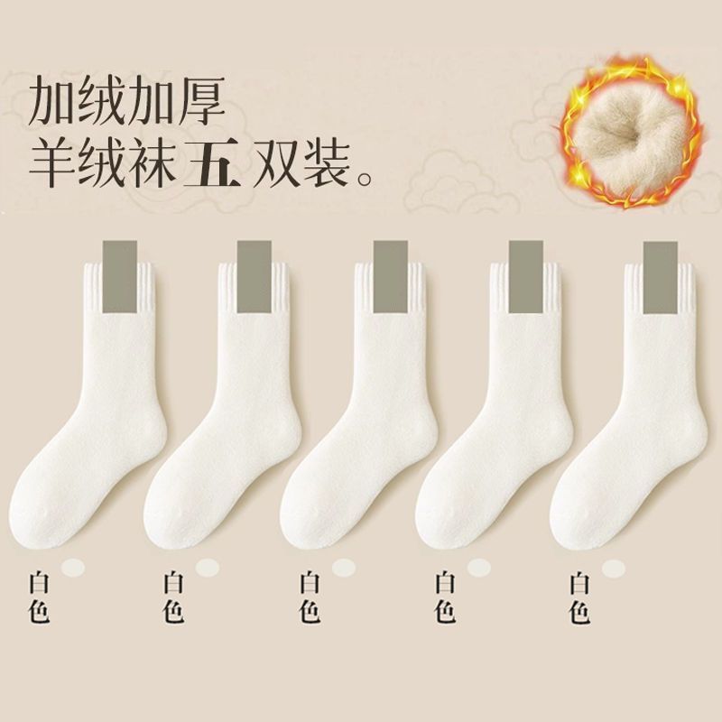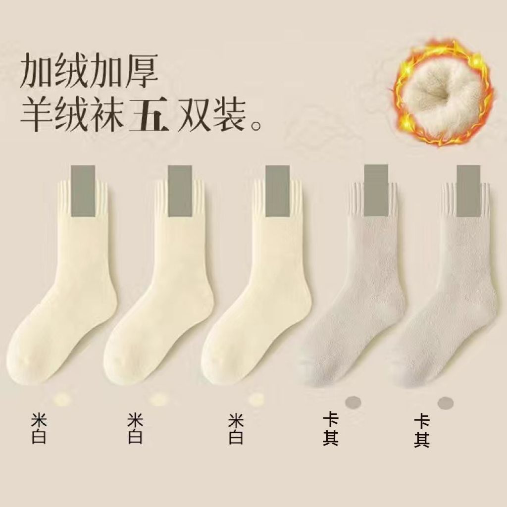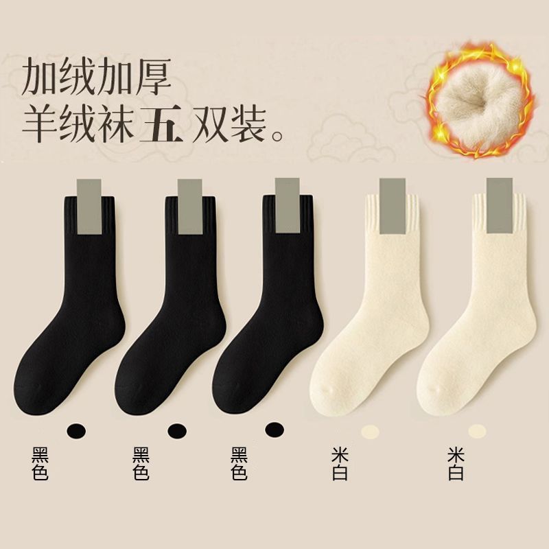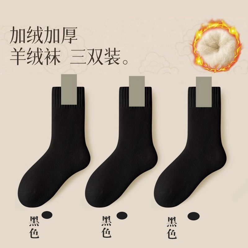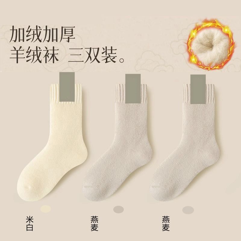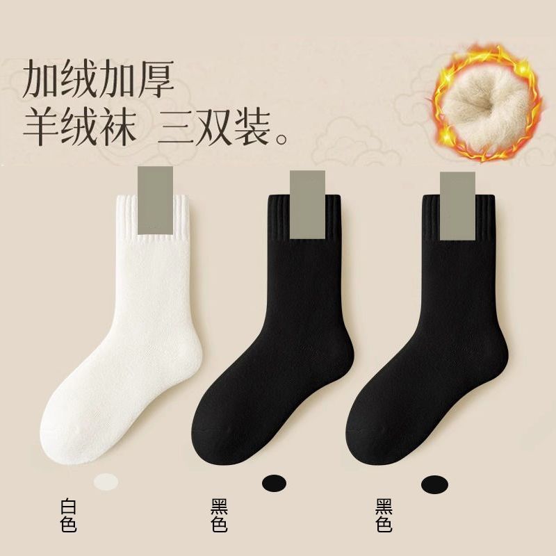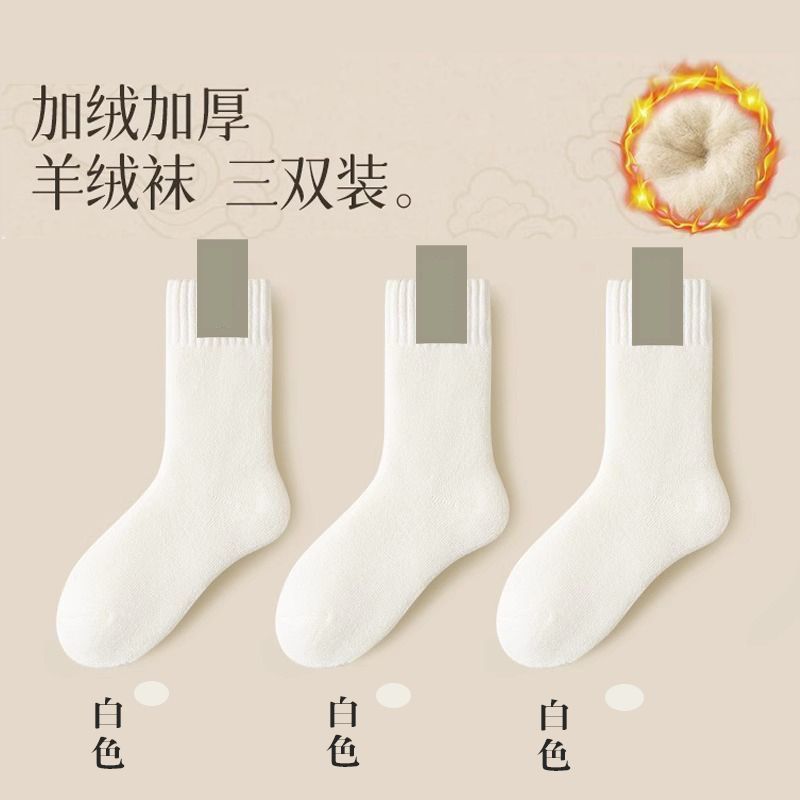 特厚加绒女秋冬羊毛质感 加绒保暖抗寒毛圈长筒袜冬天轻暖月袜子