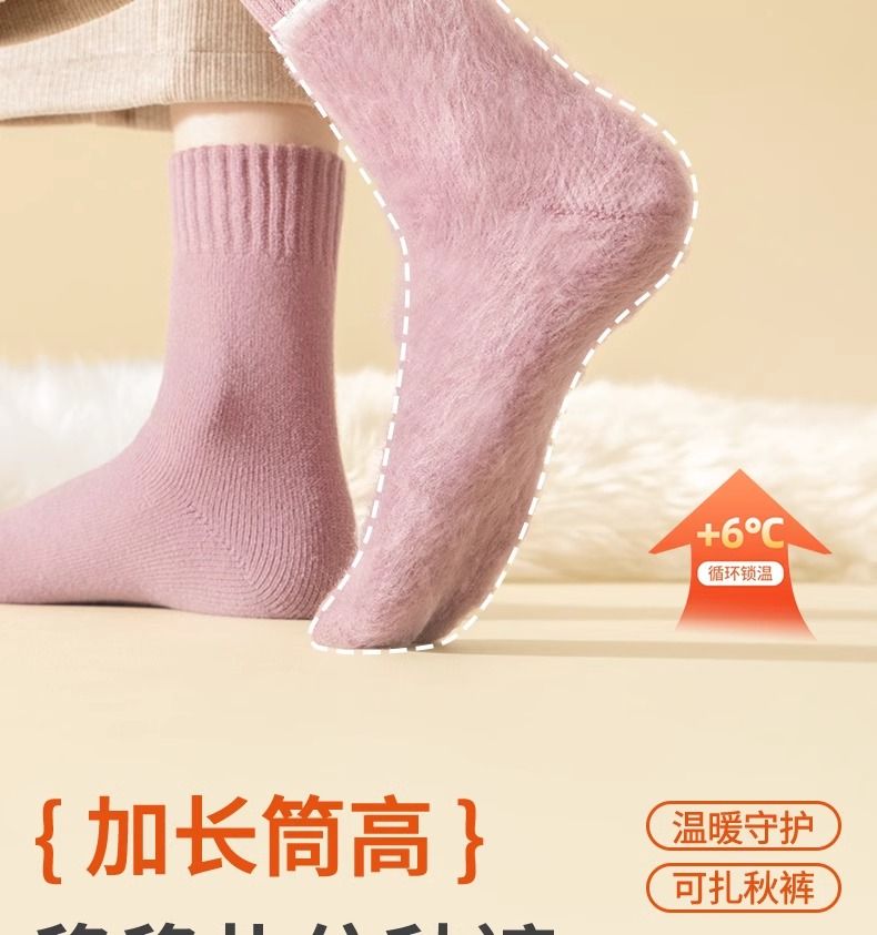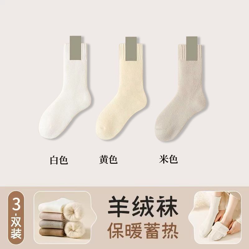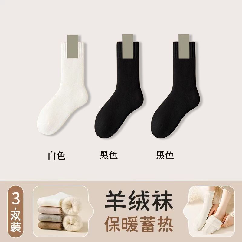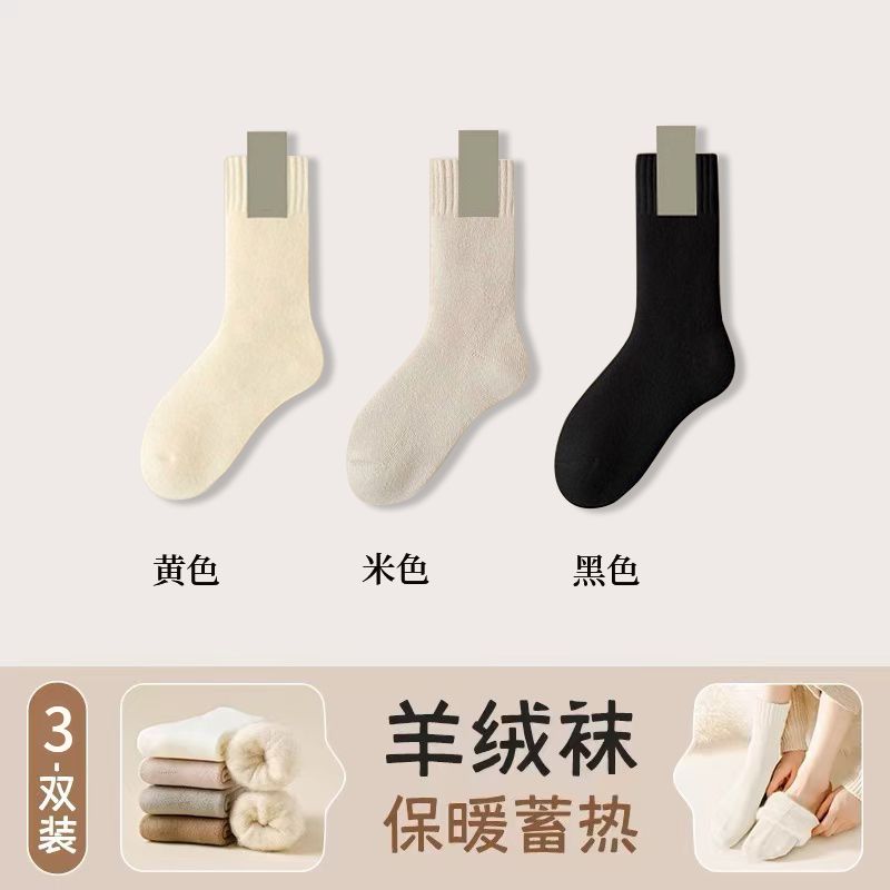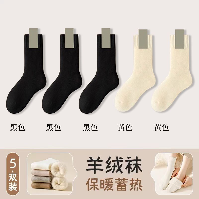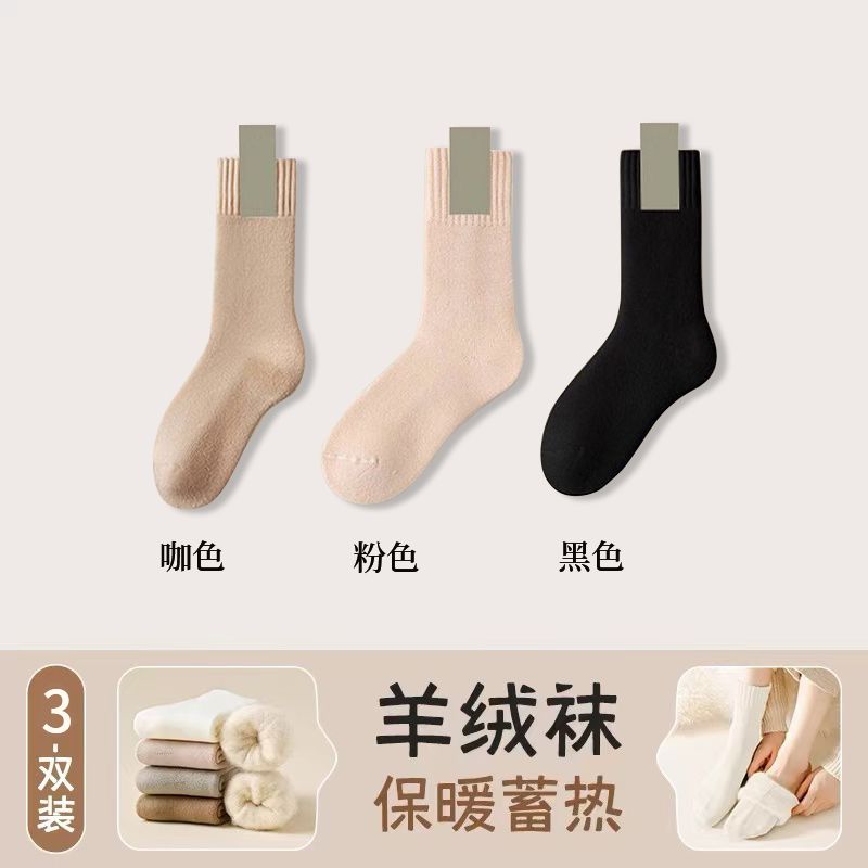 羊绒袜子女秋冬羊毛加厚款保暖羊绒长筒袜冬天睡眠轻暖中筒月子袜