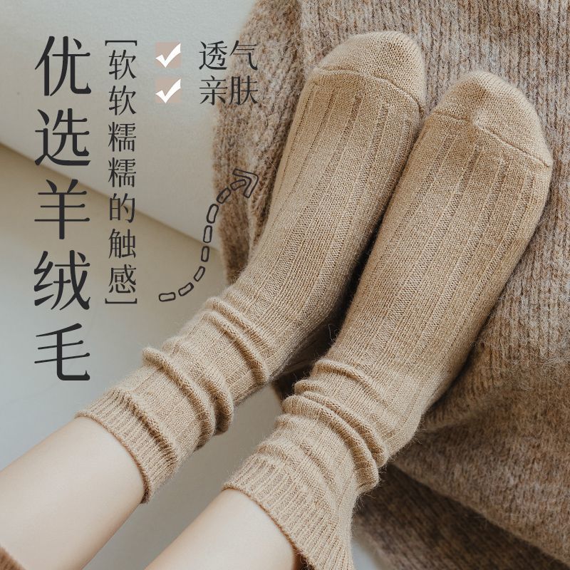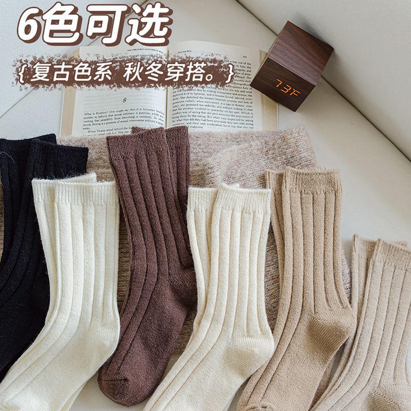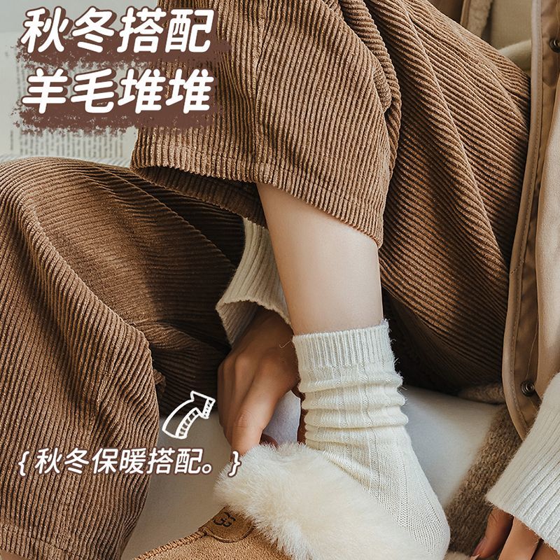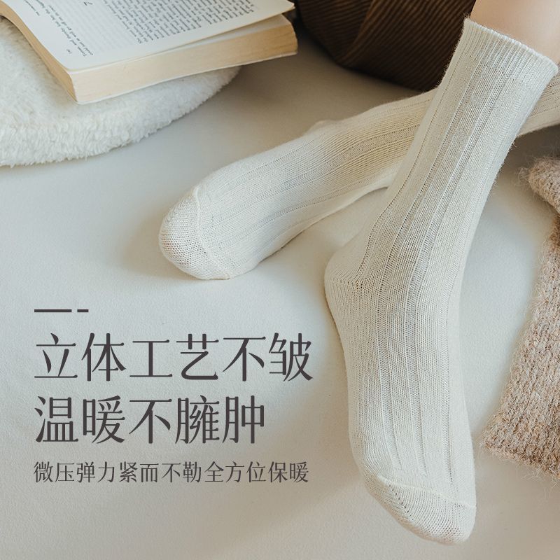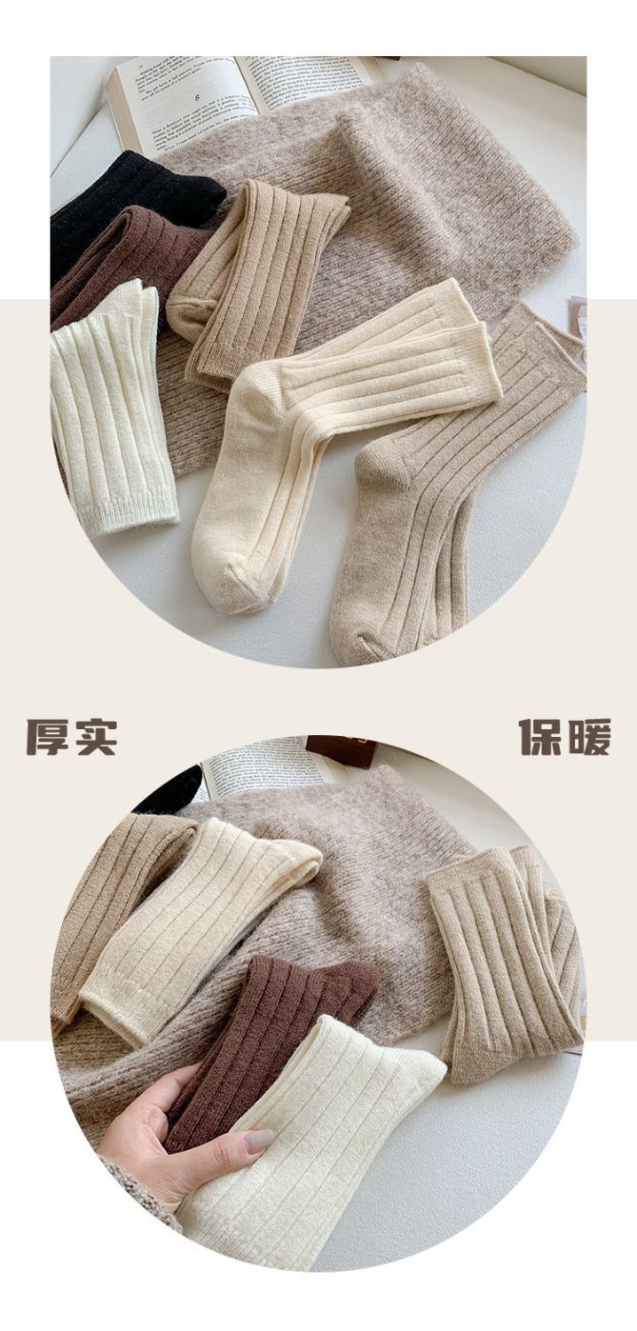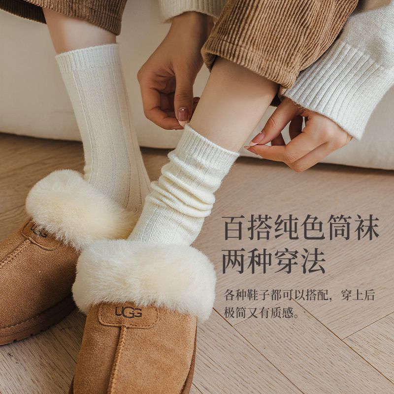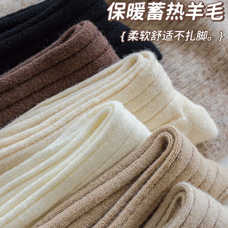 纯色羊毛袜子女冬季中筒堆堆袜加厚保暖ins潮日系抽条羊绒长袜子