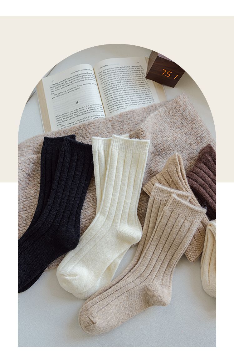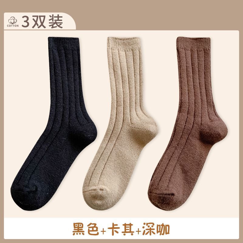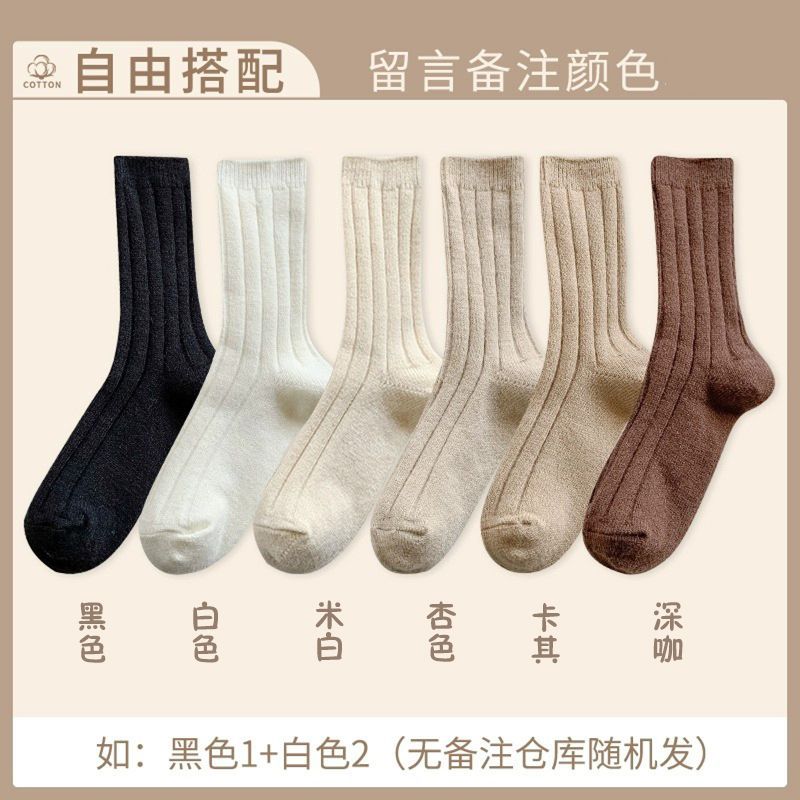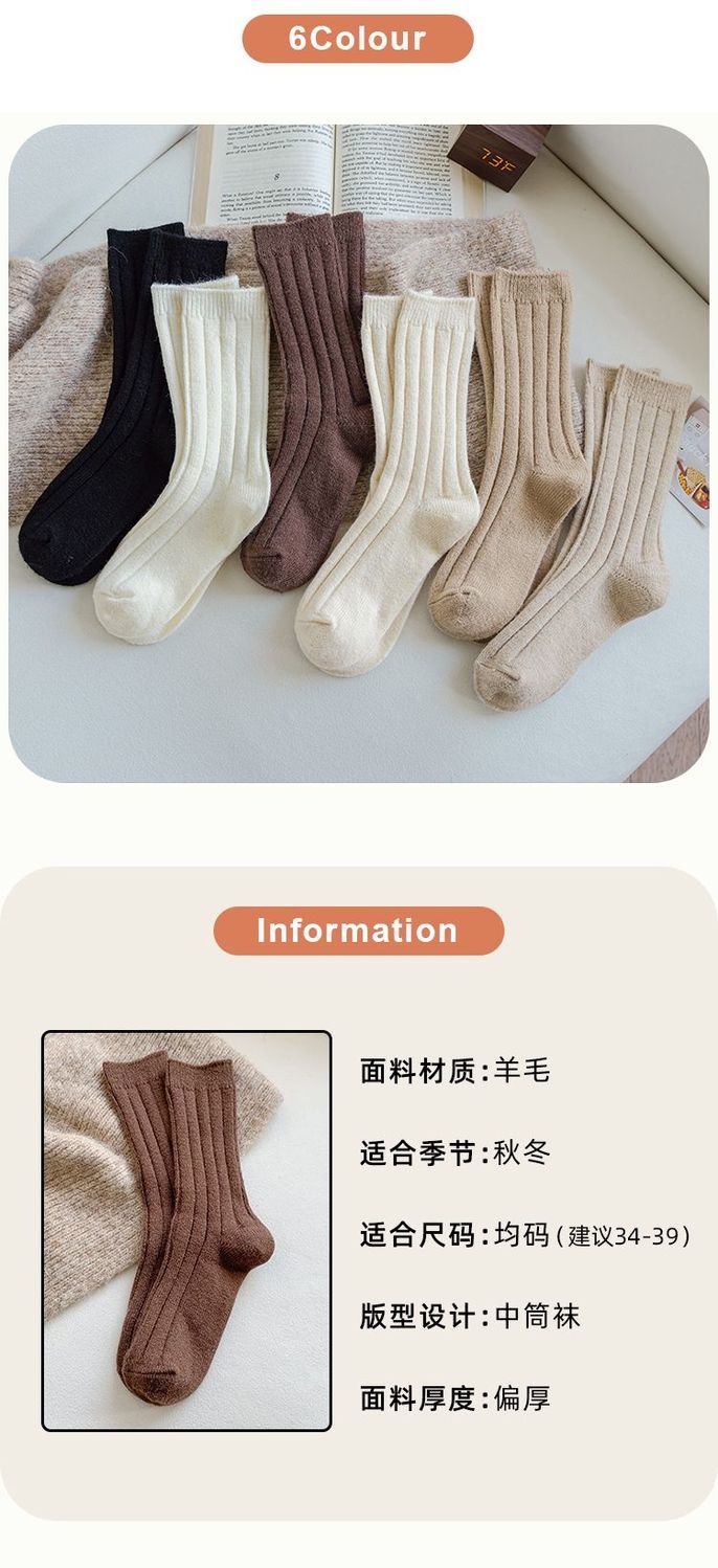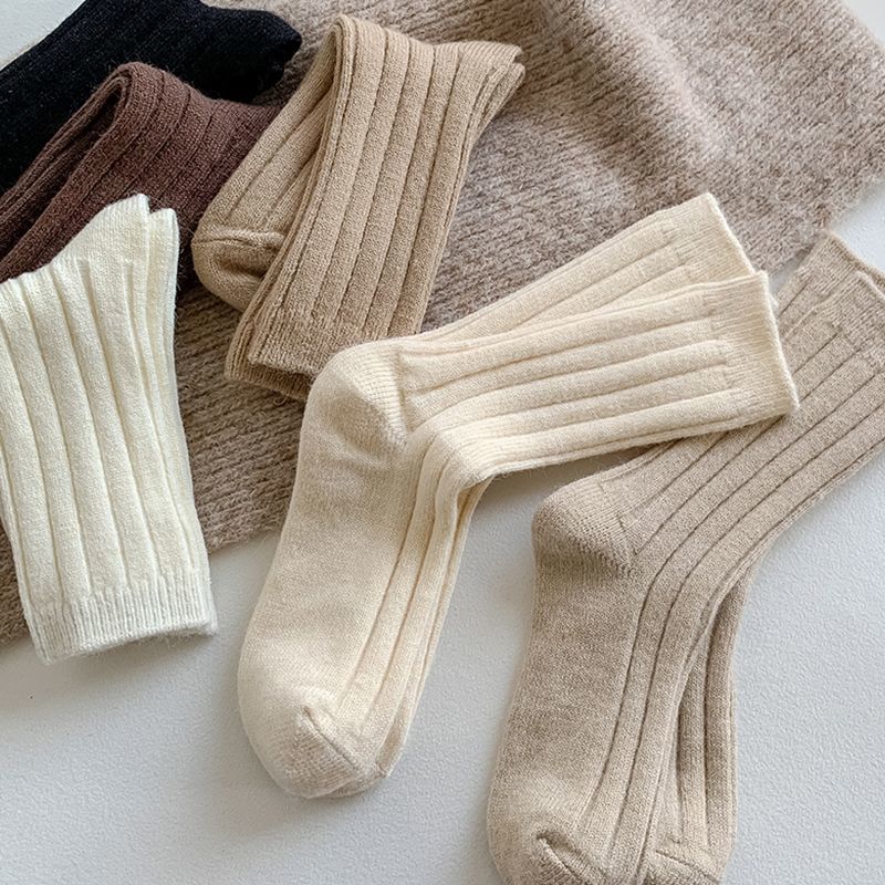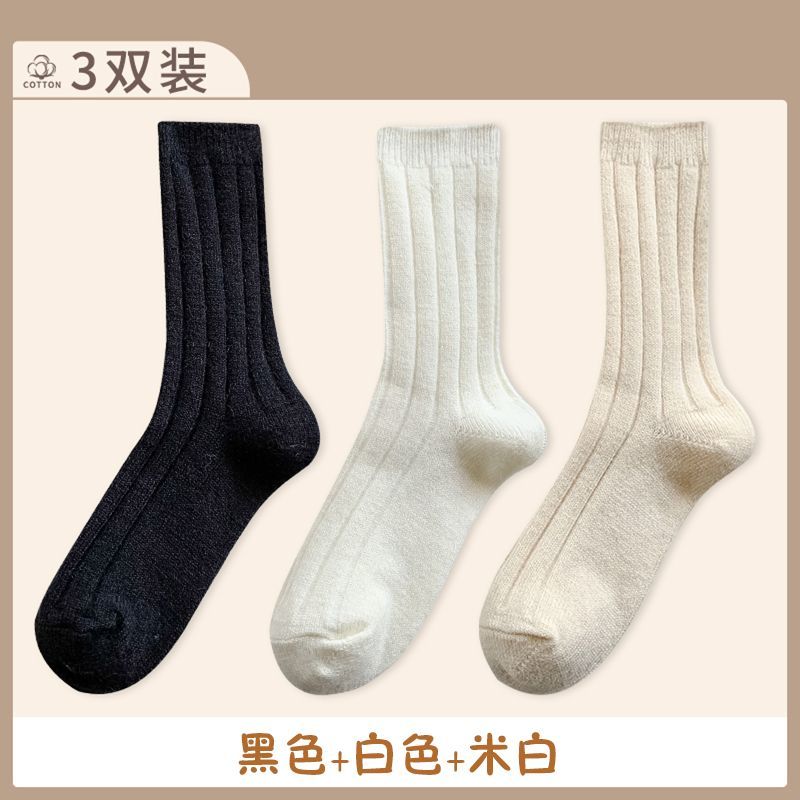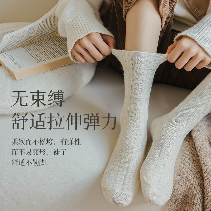 纯色羊毛袜子女冬季中筒堆堆袜加厚保暖ins潮日系抽条羊绒长袜子