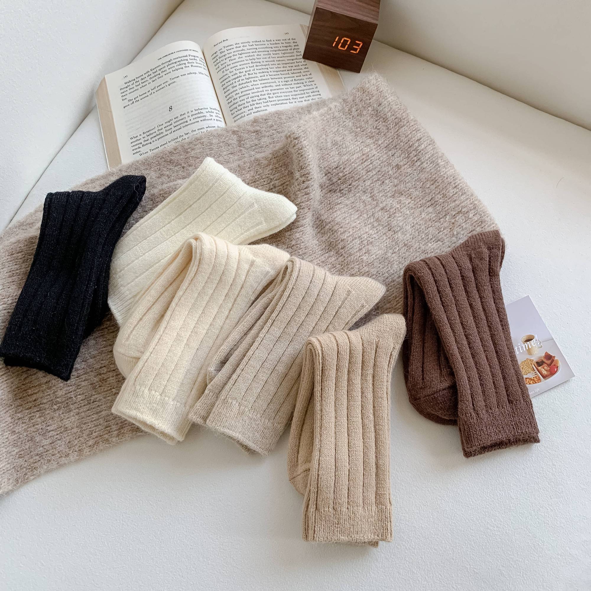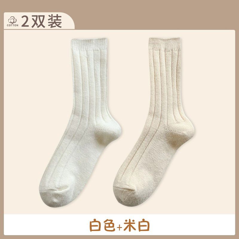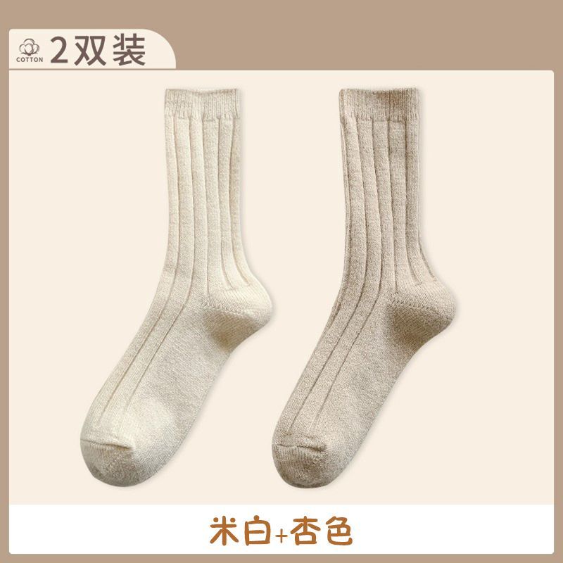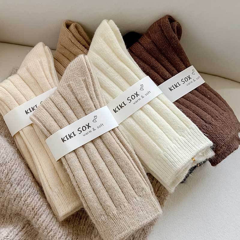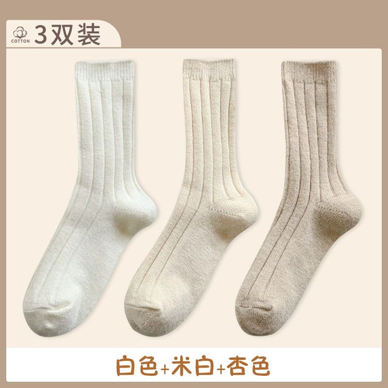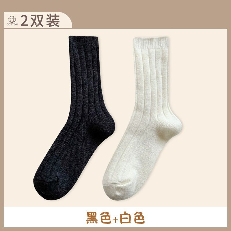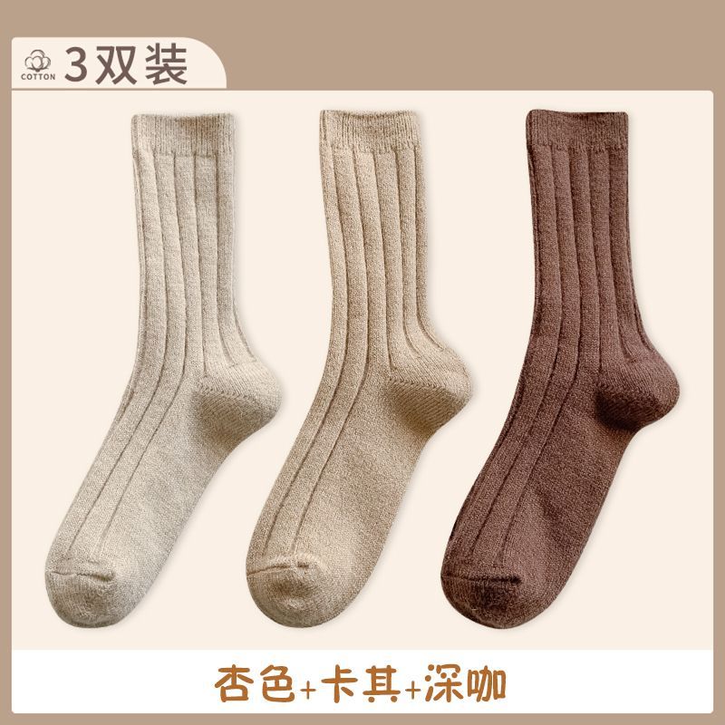 纯色羊毛袜子女冬季中筒堆堆袜加厚保暖ins潮日系抽条羊绒长袜子