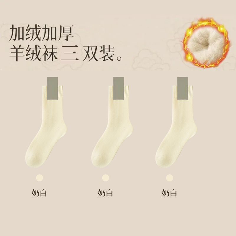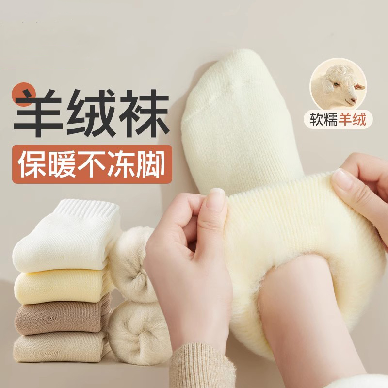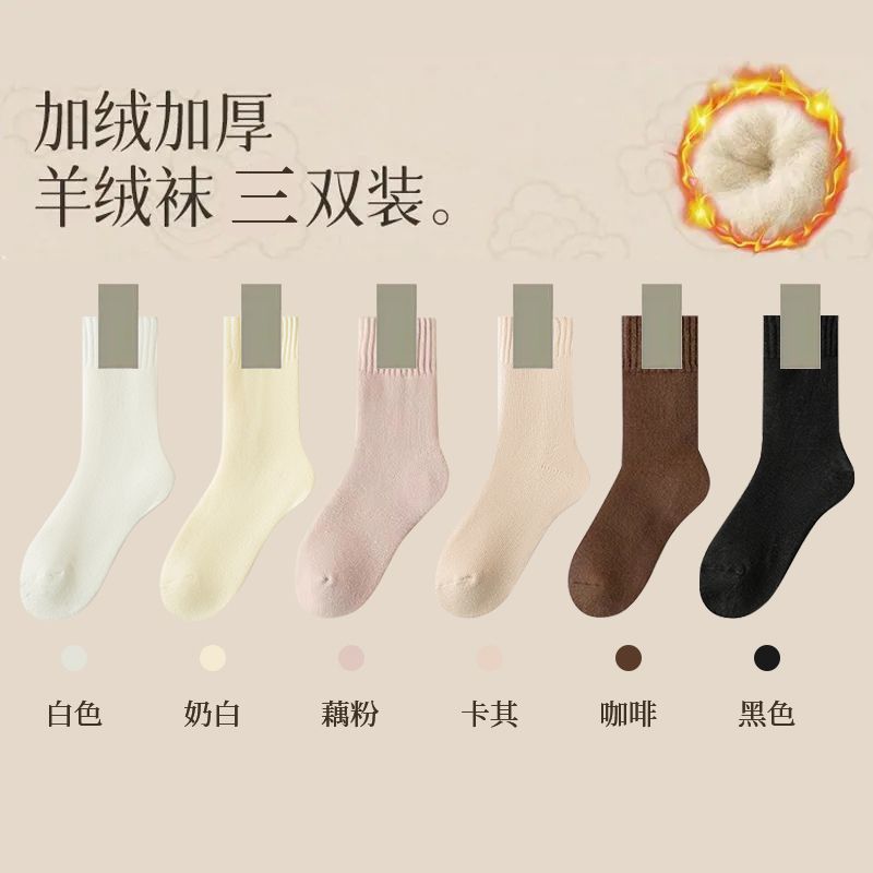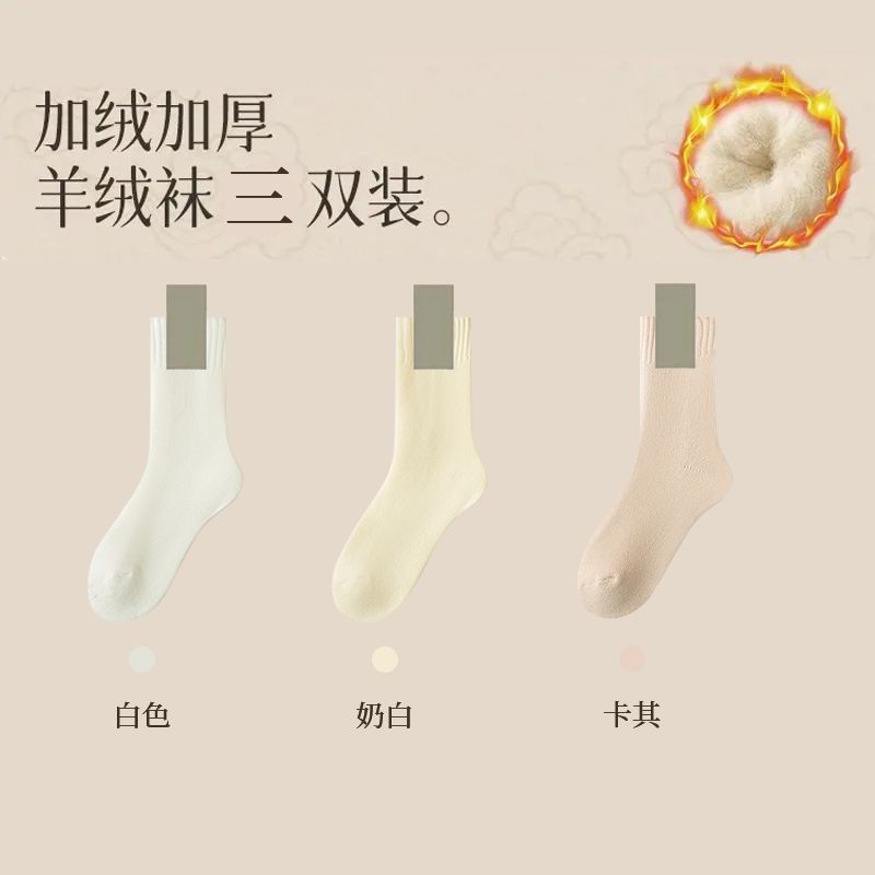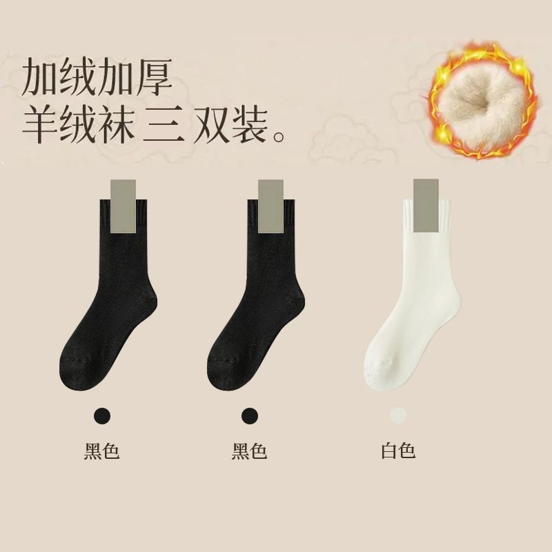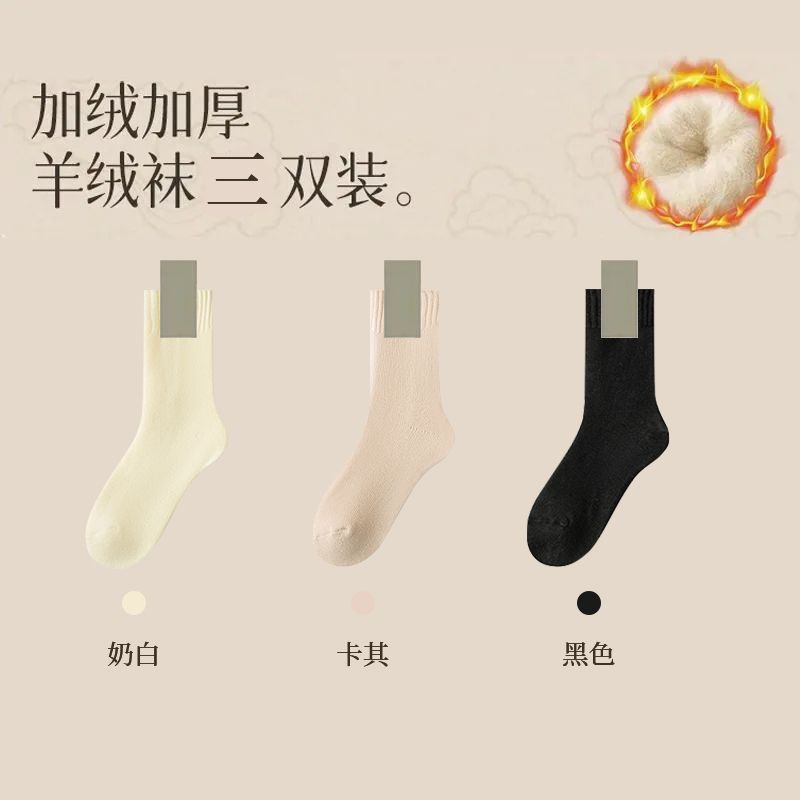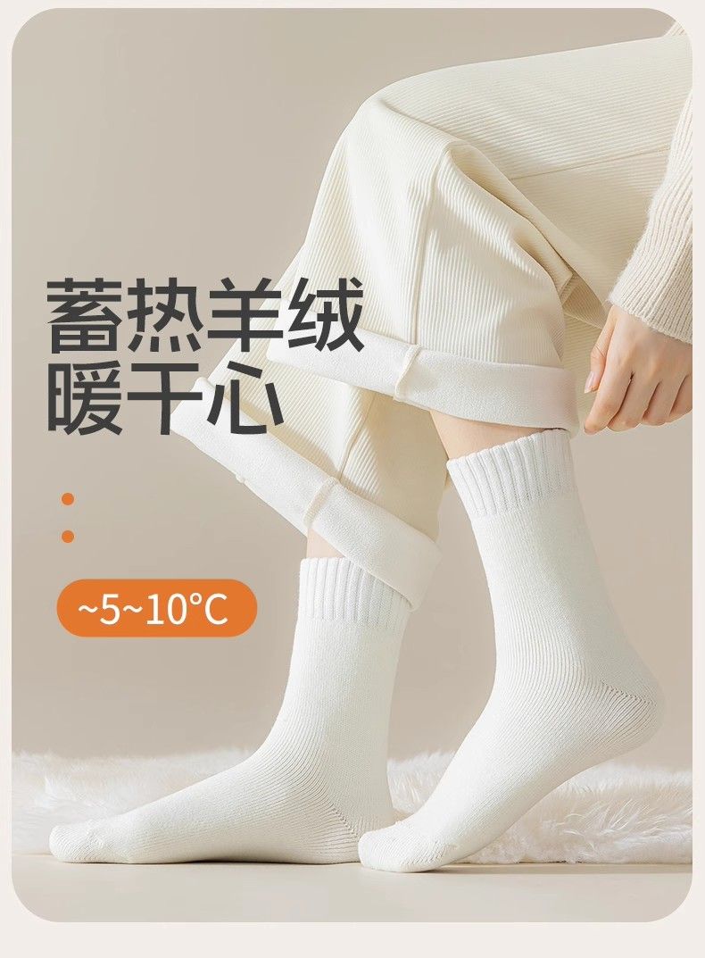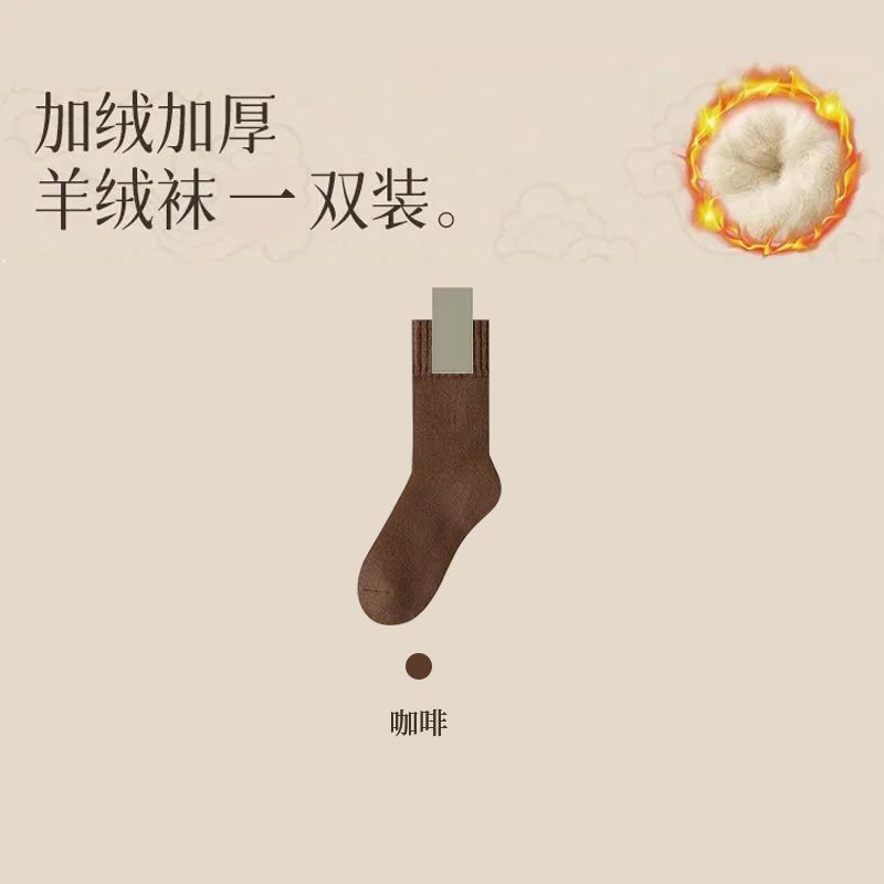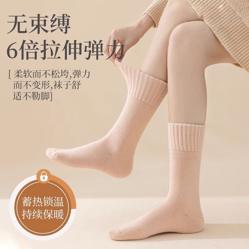 袜子女秋冬羊毛中筒袜加厚保暖抗寒羊绒堆堆长筒袜冬天睡眠月子袜