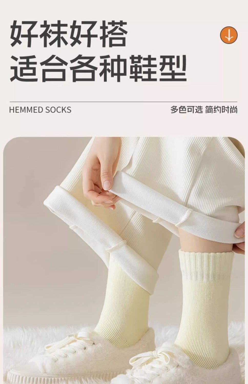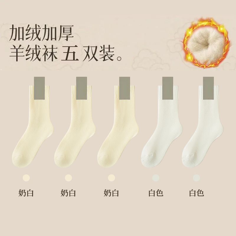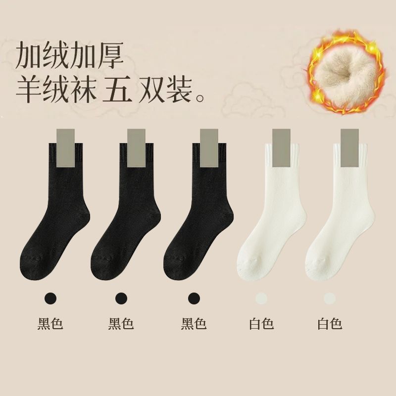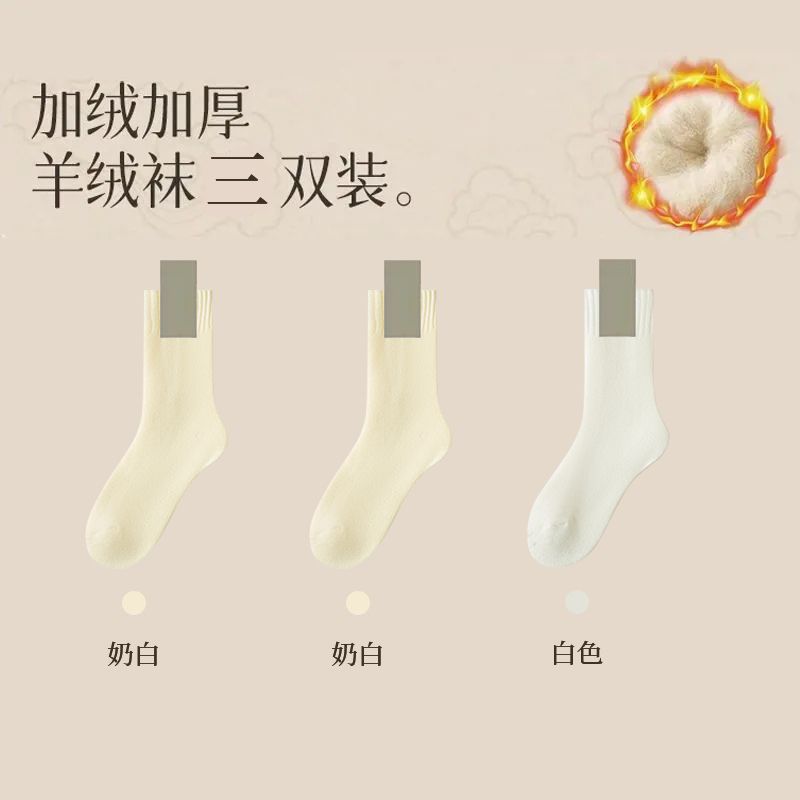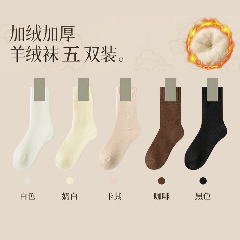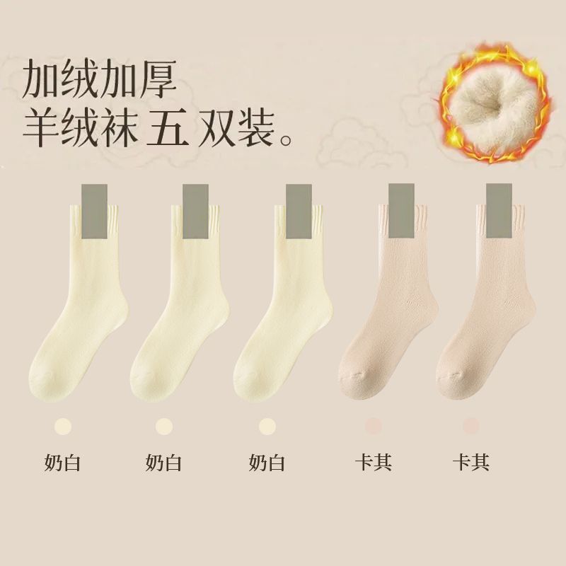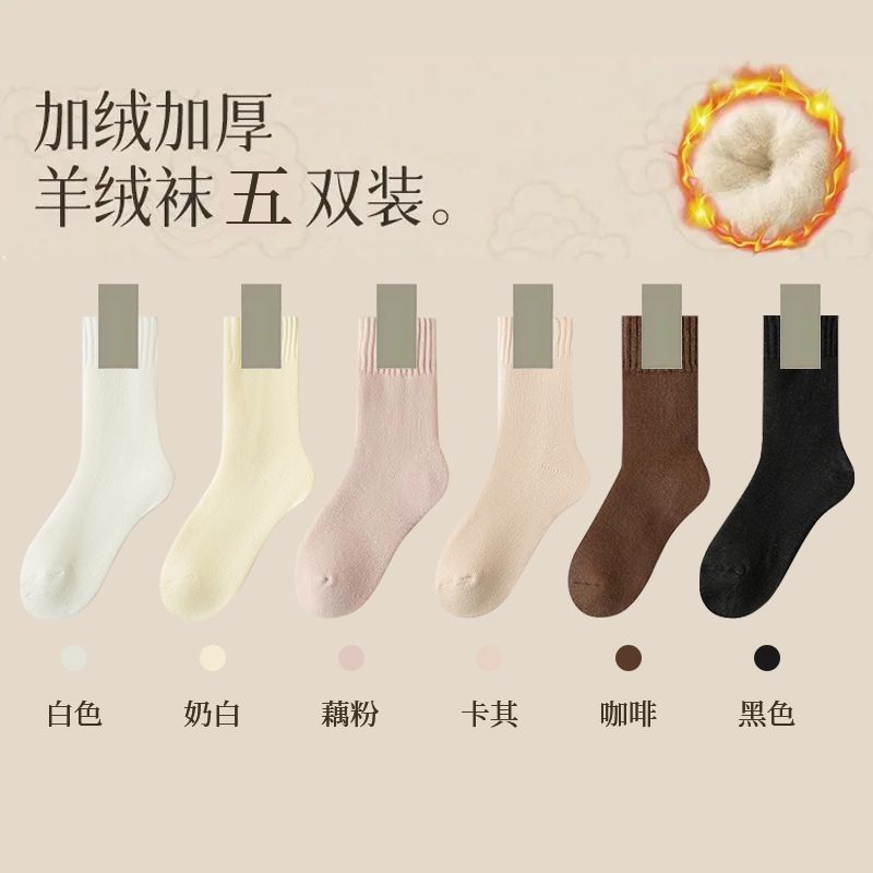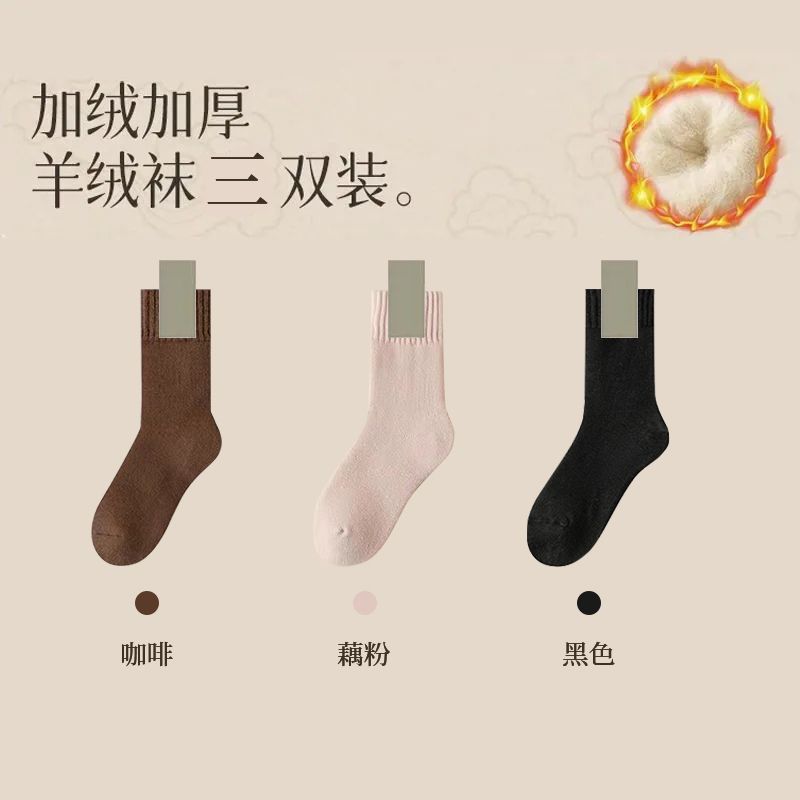 袜子女秋冬羊毛中筒袜加厚保暖抗寒羊绒堆堆长筒袜冬天睡眠月子袜
