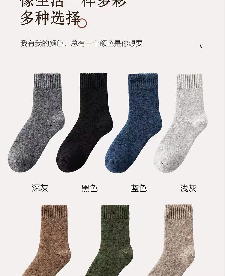 | 超厚羊毛袜76克重【黑+深灰+浅灰】 | USD $3.75 | 999999 piece available |