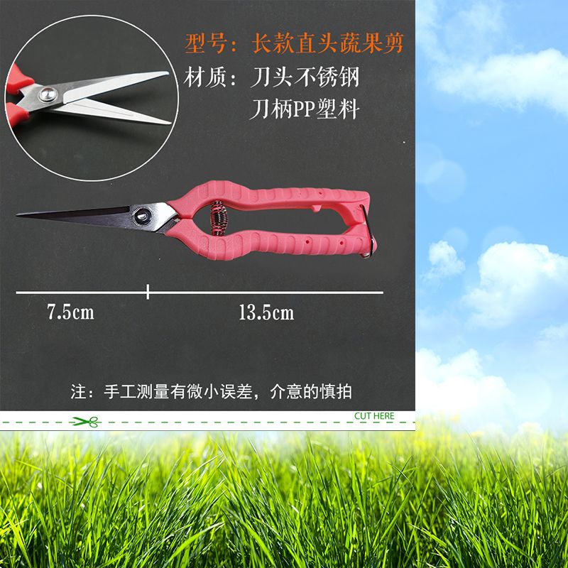 | powder handle toothed long straight head stainless steel-pruning shear(粉柄带齿长直头不锈钢-修枝剪) | USD $1.22 | 999999 piece available |