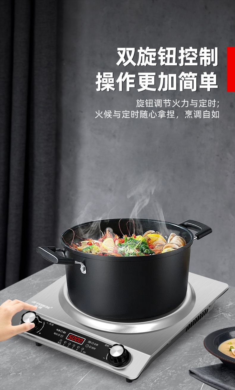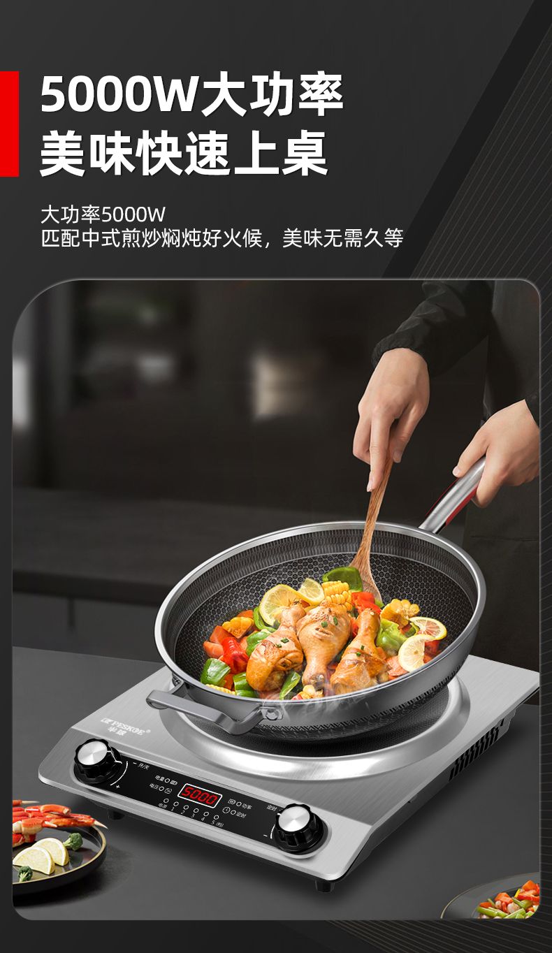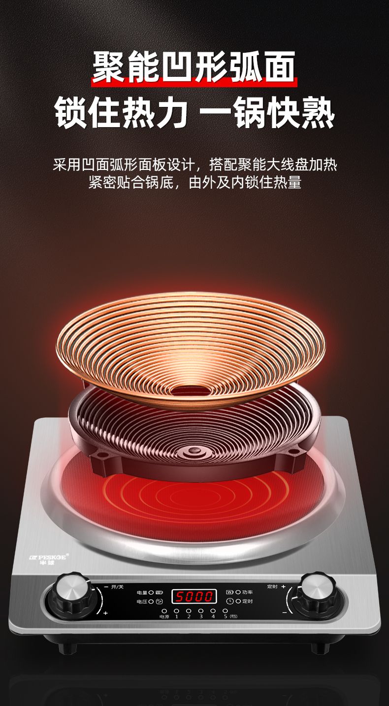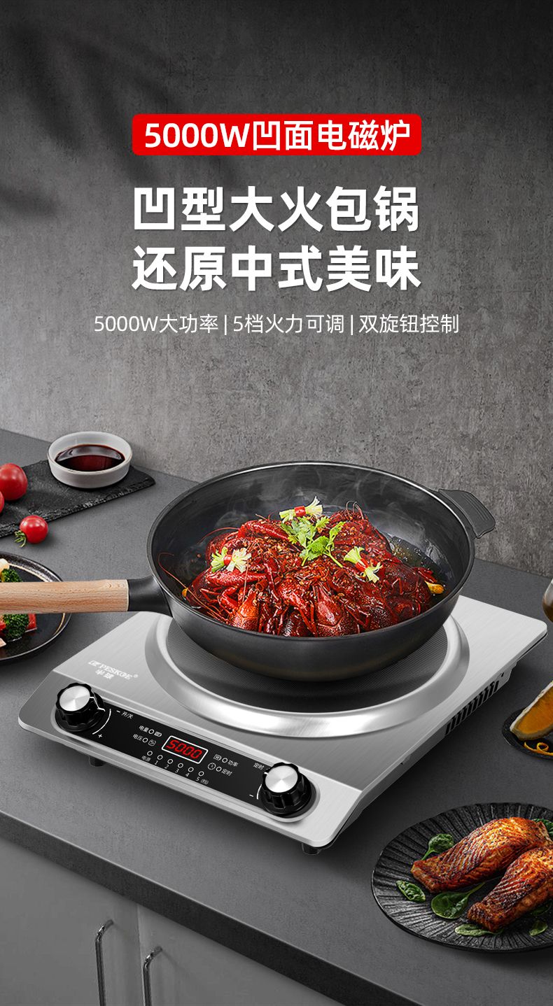 半球凹面电磁炉5000W家用大功率猛火爆炒多功能防水定时一体炉灶