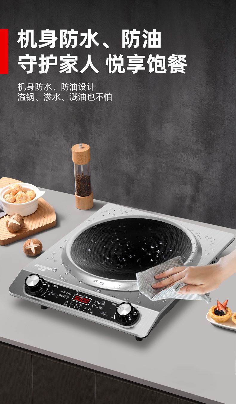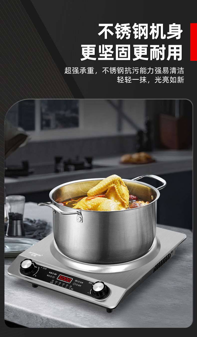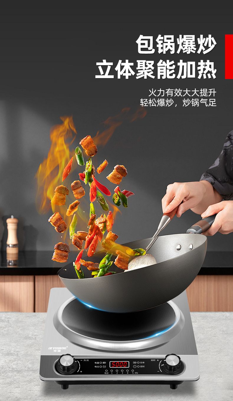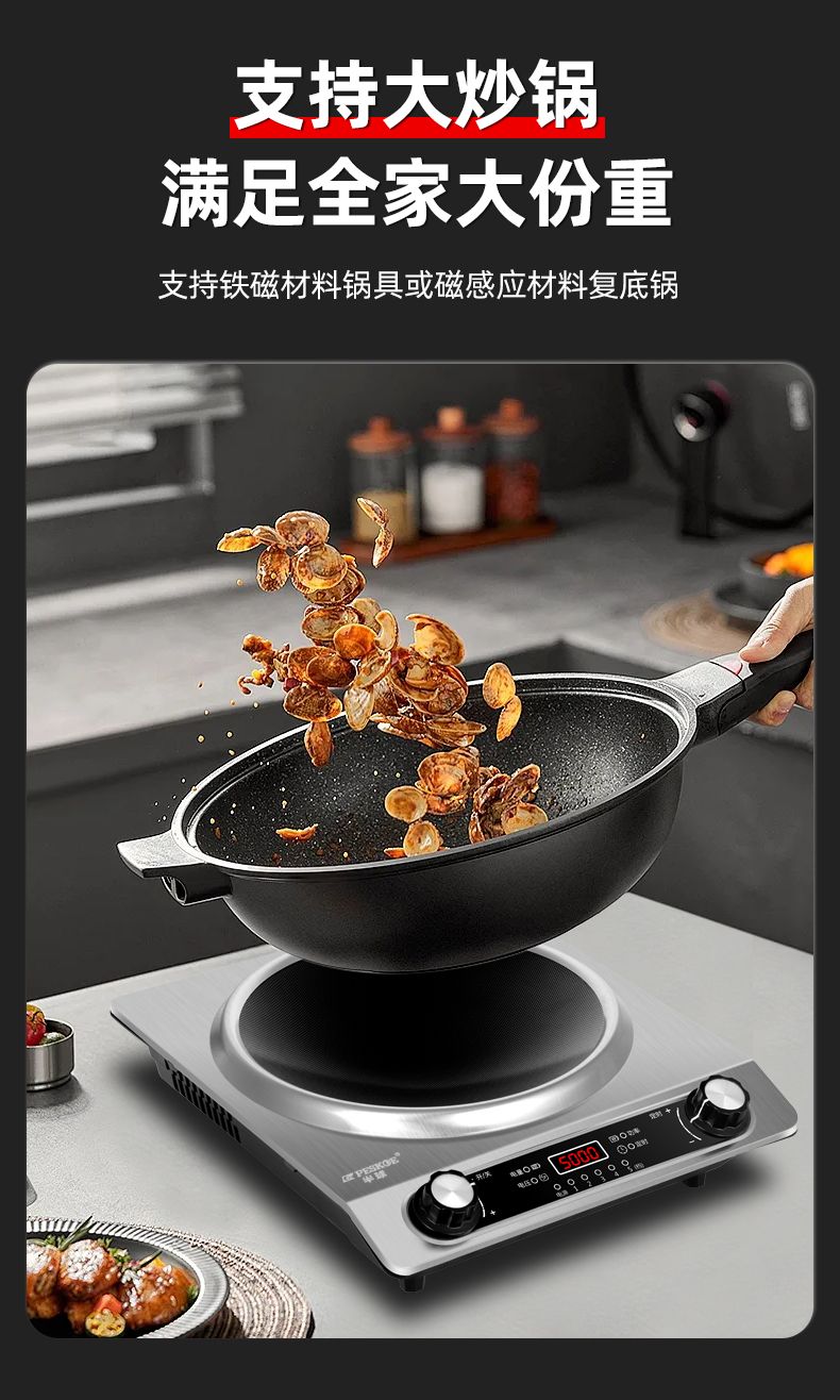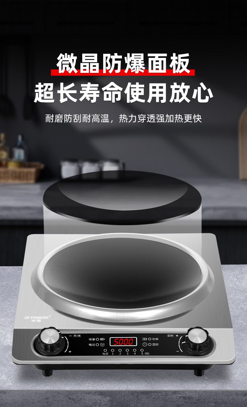 半球凹面电磁炉5000W家用大功率猛火爆炒多功能防水定时一体炉灶