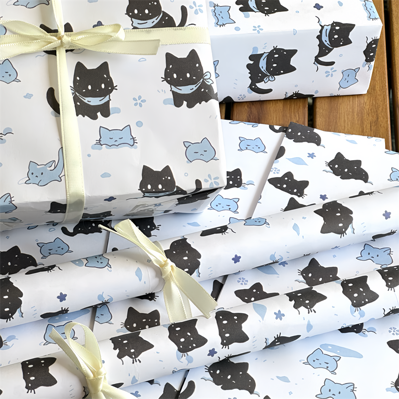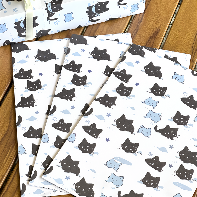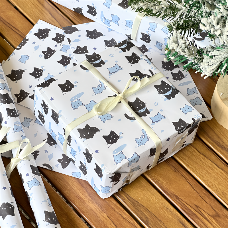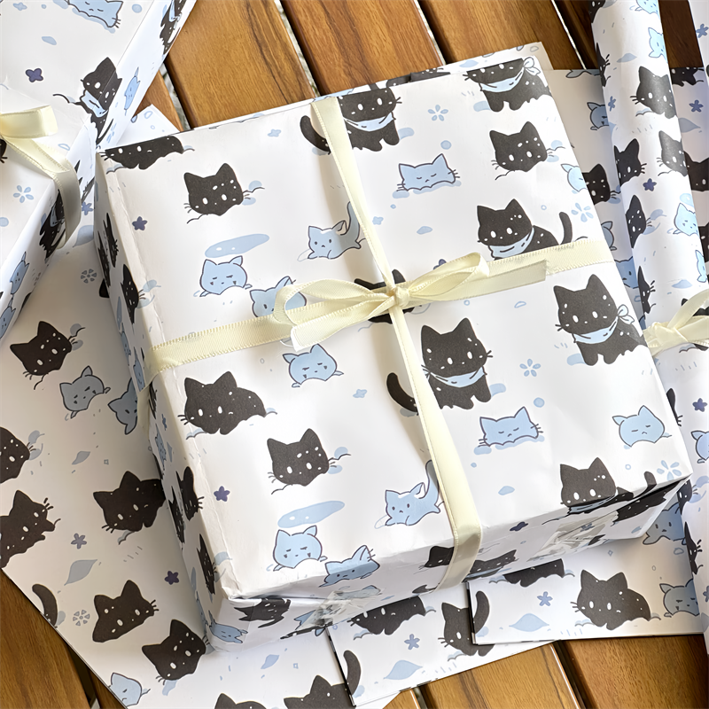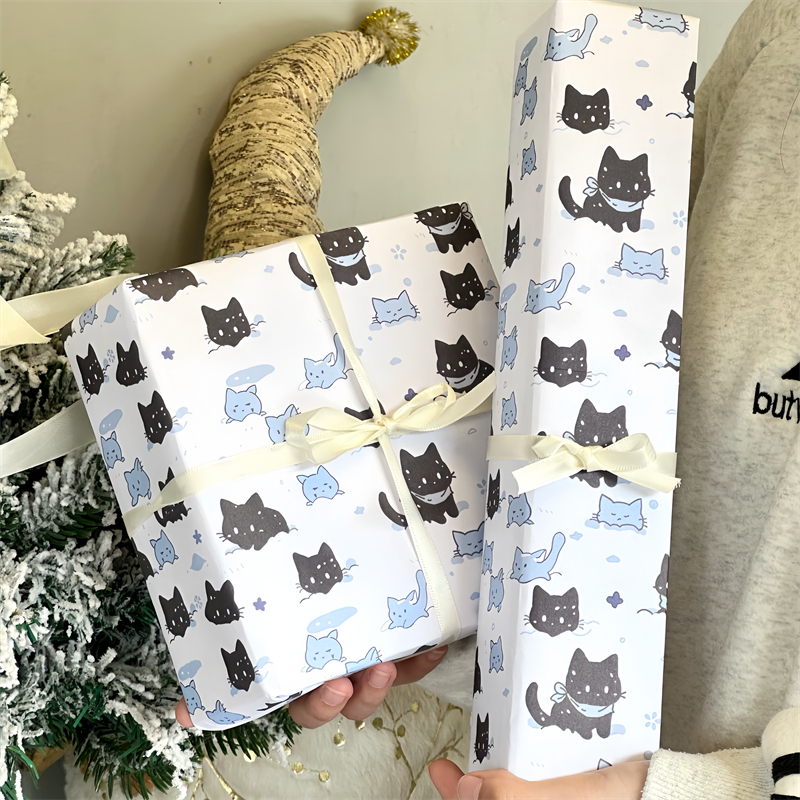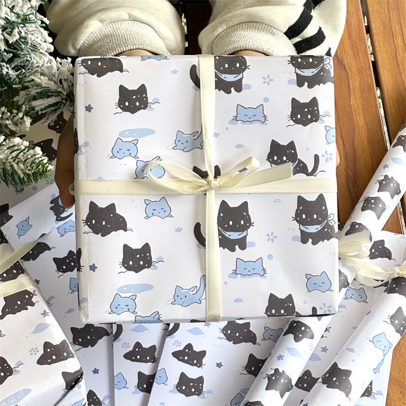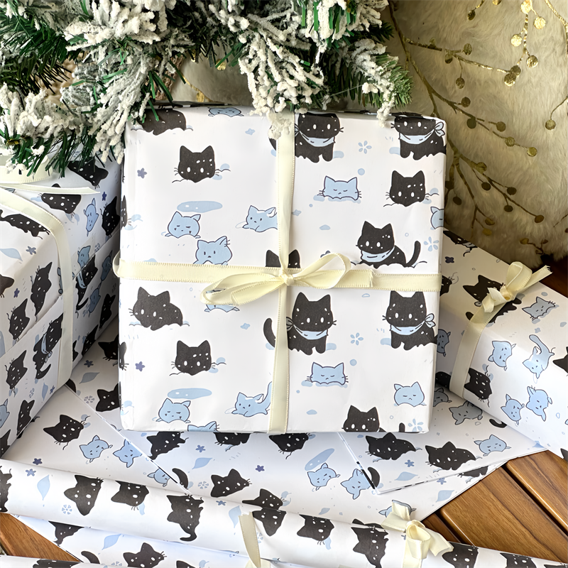 可爱卡通雪地小猫礼物包装纸原创设计小众打包纸可爱高颜值礼品纸