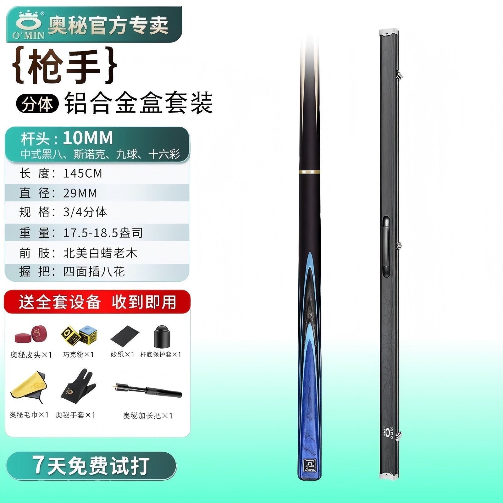 【拍1发7】奥秘枪手斯诺克台球杆小头中式黑八球16彩桌球杆全套