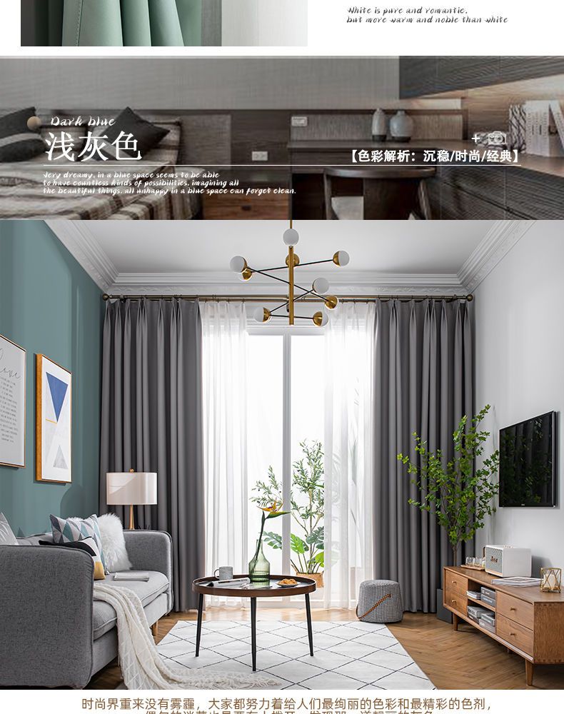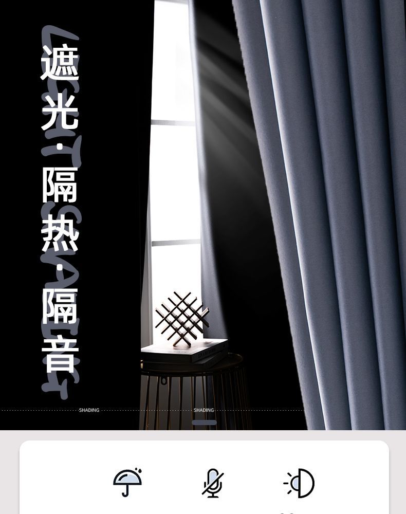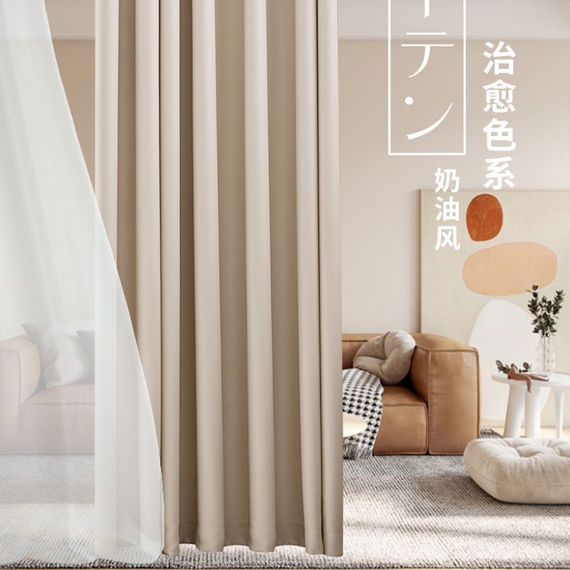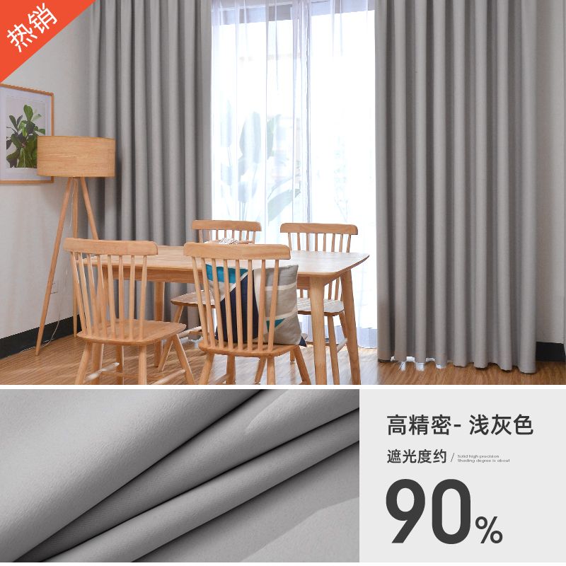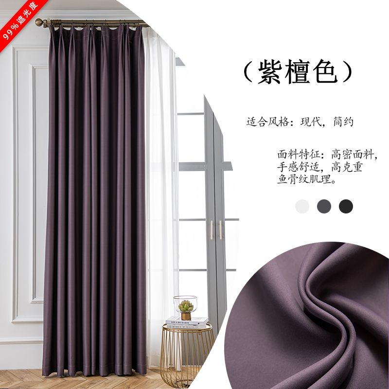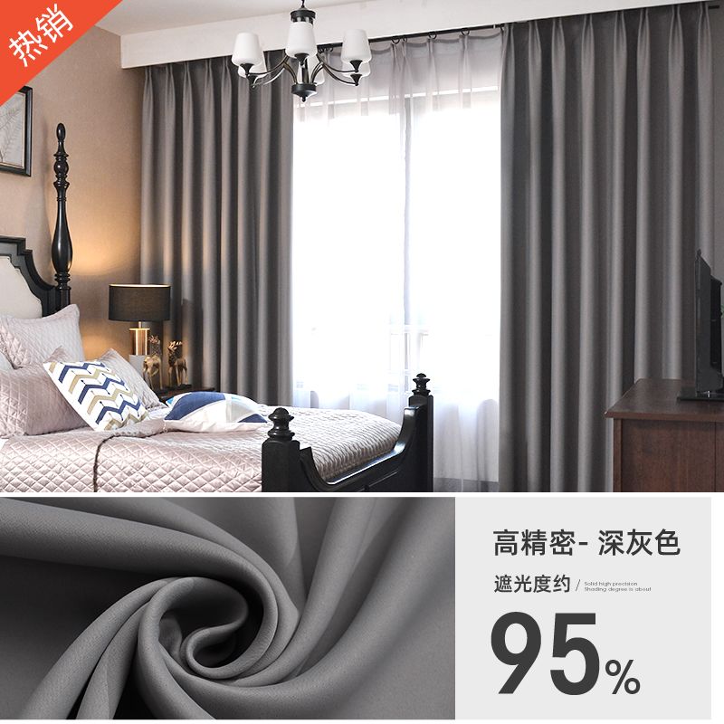 卧室遮光窗帘加厚隔热防晒现代简约客厅家用阳台挂钩式遮阳布帘