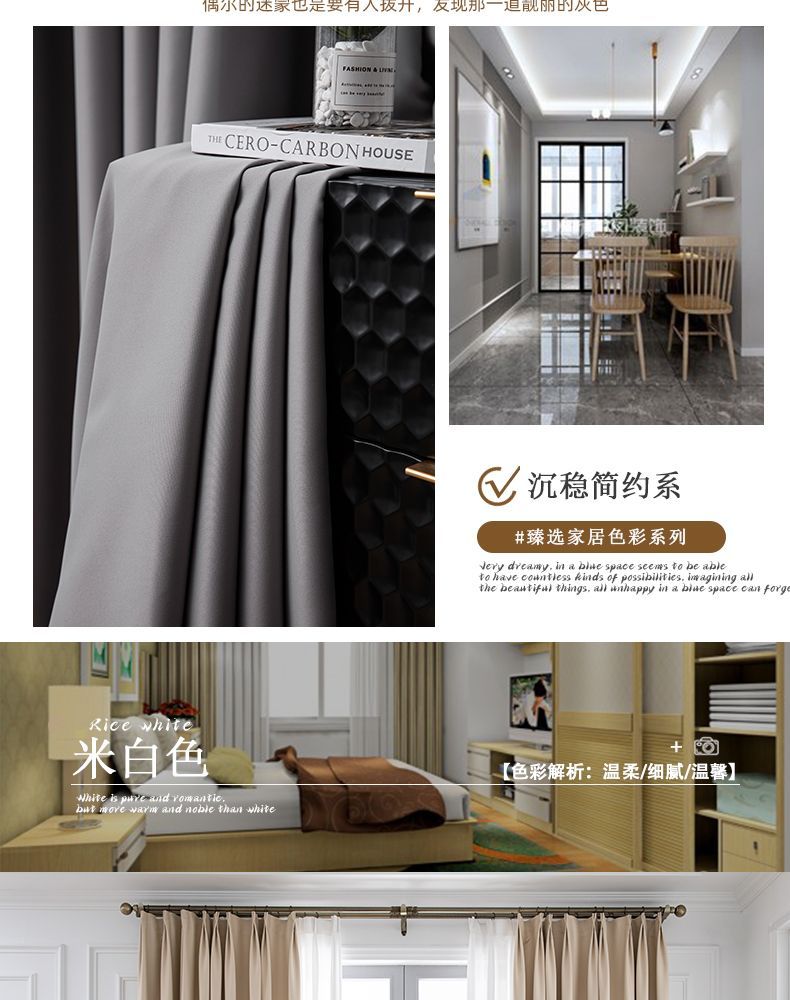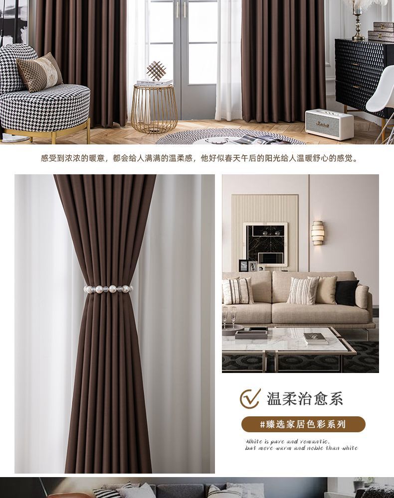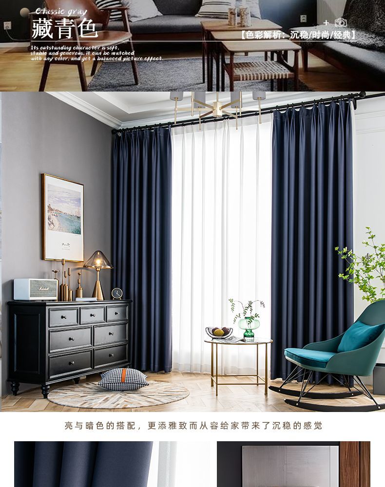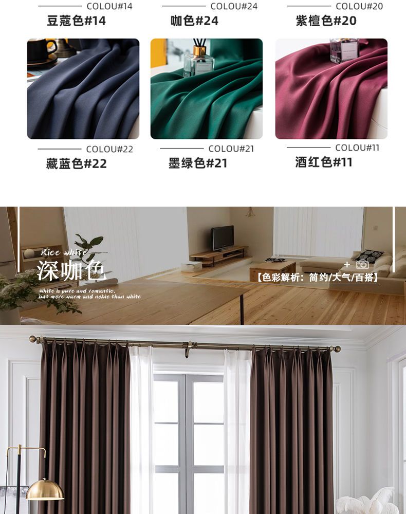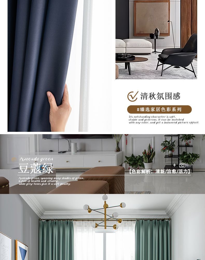 卧室遮光窗帘加厚隔热防晒现代简约客厅家用阳台挂钩式遮阳布帘