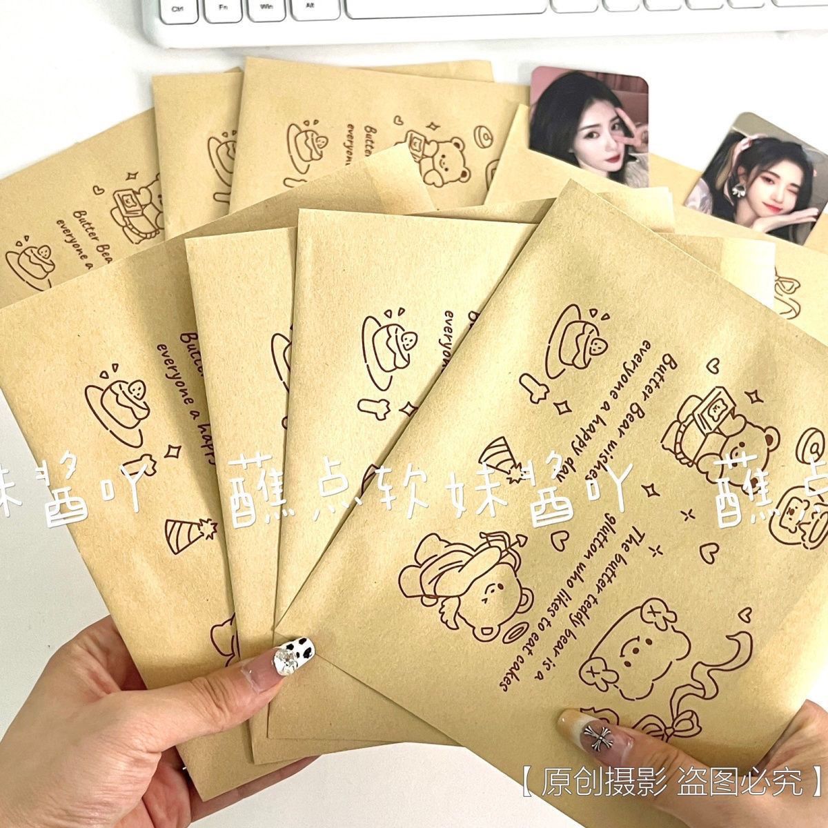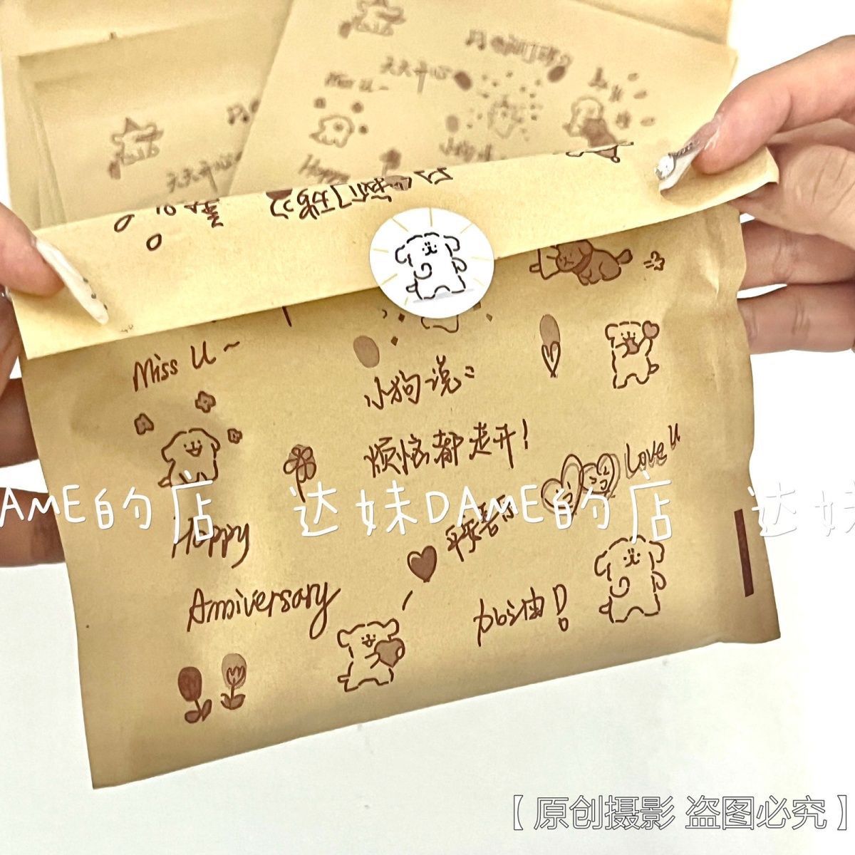 卡通黄油小熊线条小狗不透明自封包装袋加厚可爱打包材料礼品袋