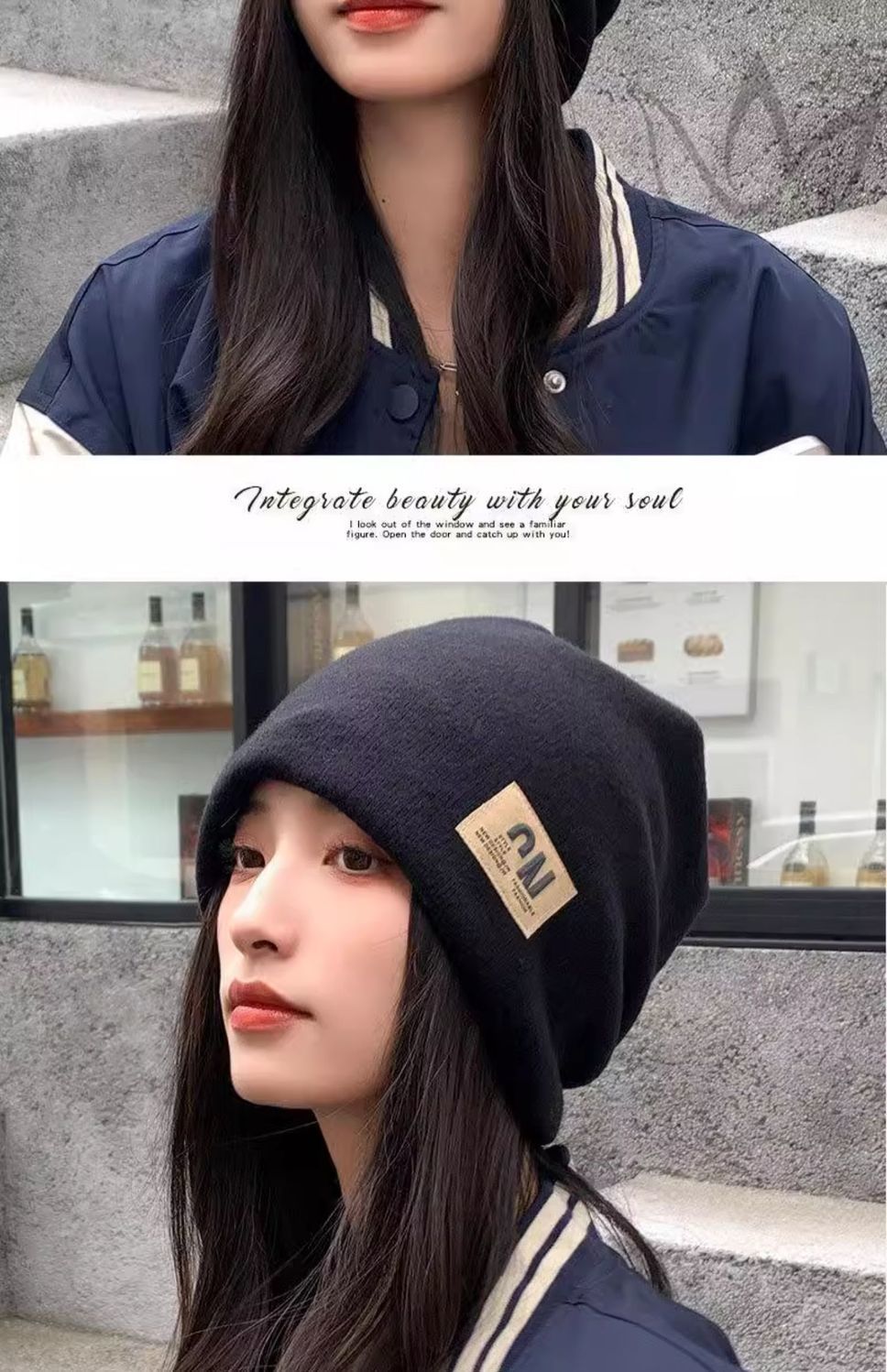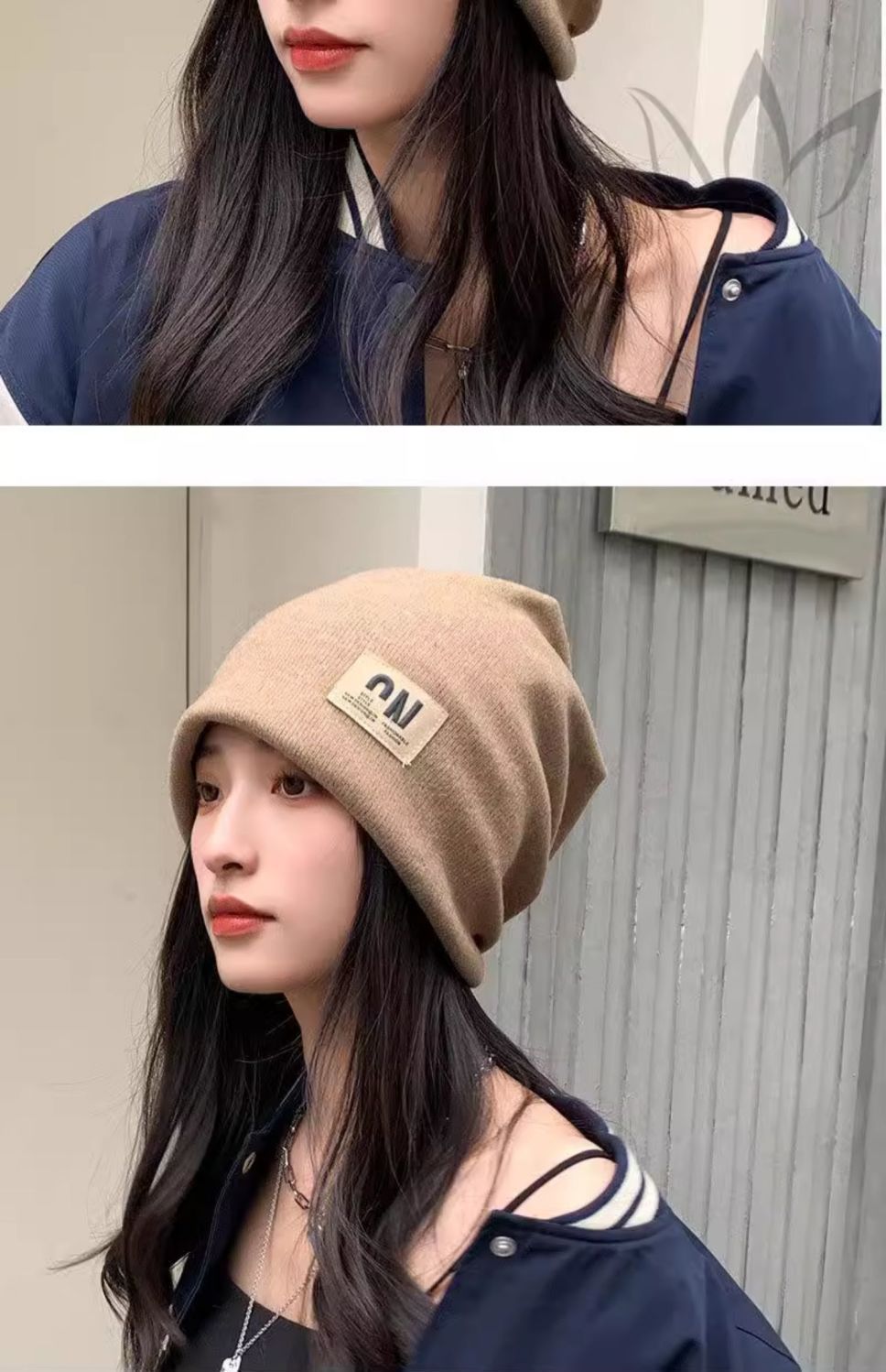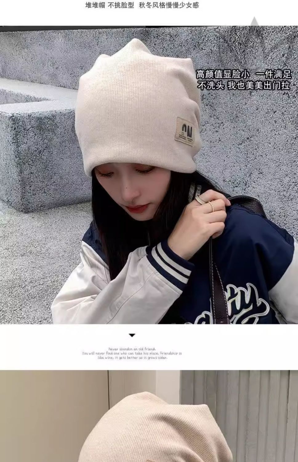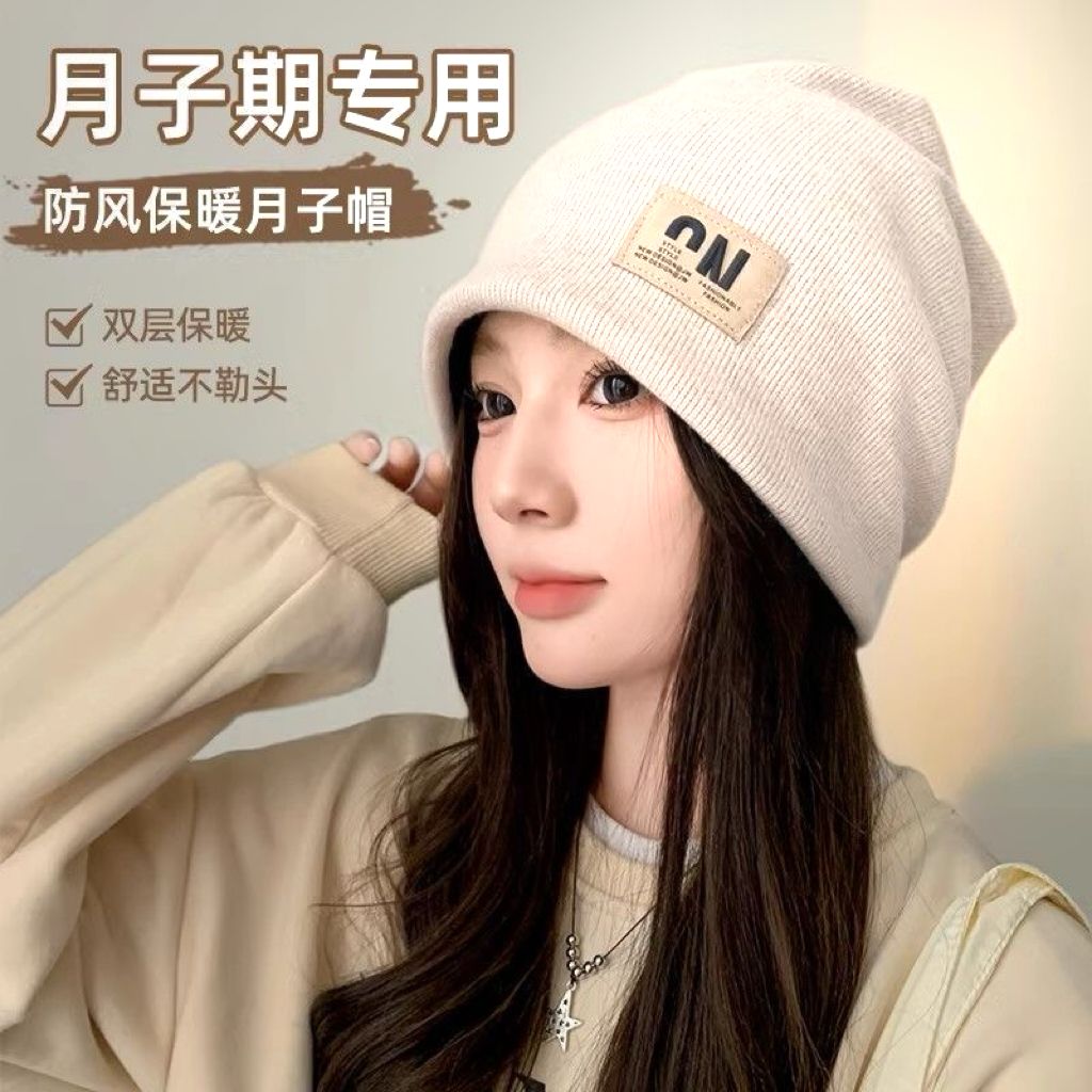 头帽保暖包头月子冷帽大头围显脸小秋冬针织堆堆防风防寒帽子护耳