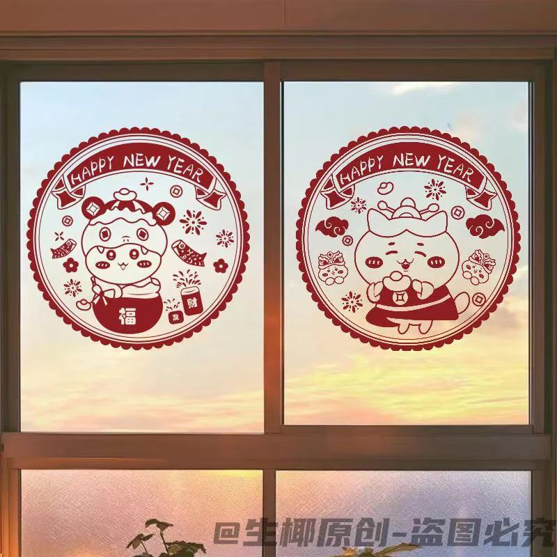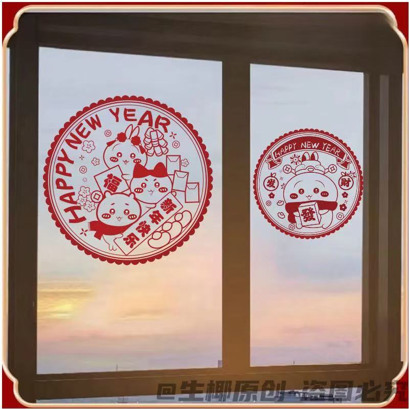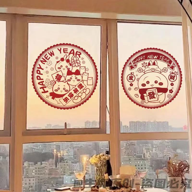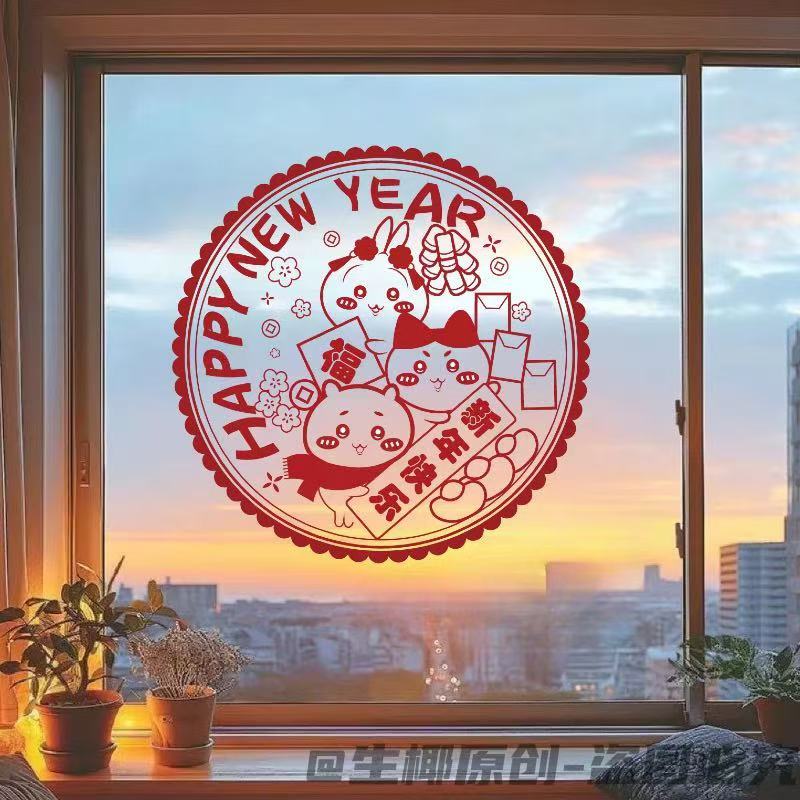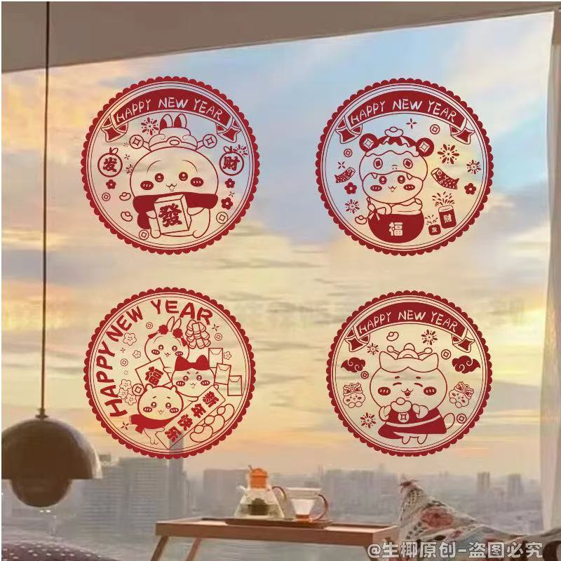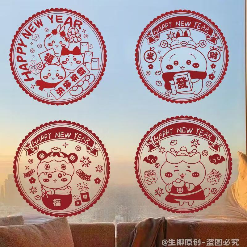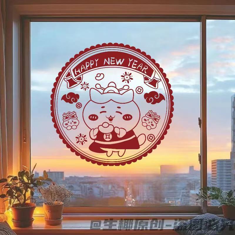 春节蛇年新款吉伊卡哇系列窗花2025新年装家用窗户静电玻璃自粘
