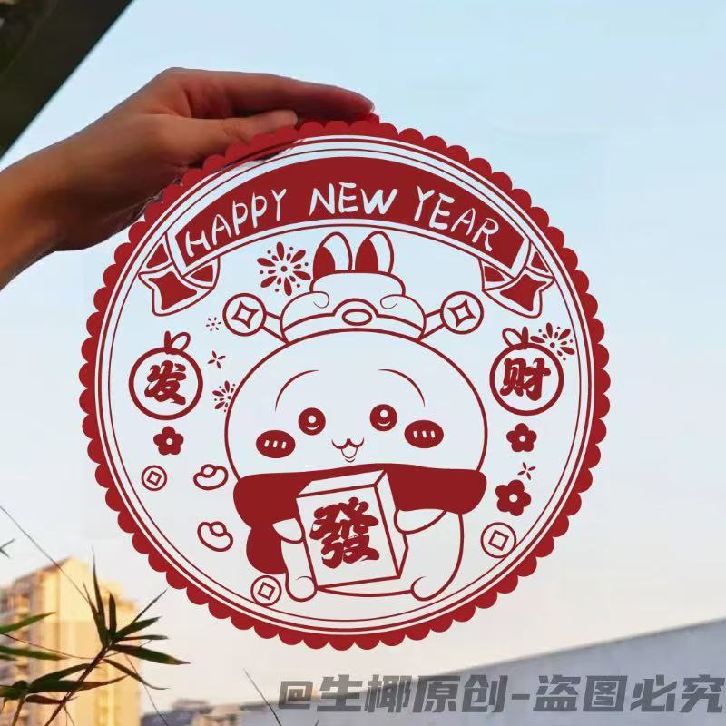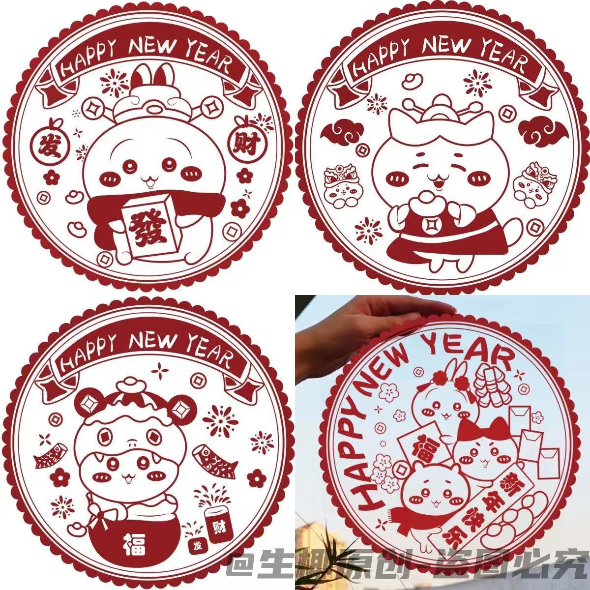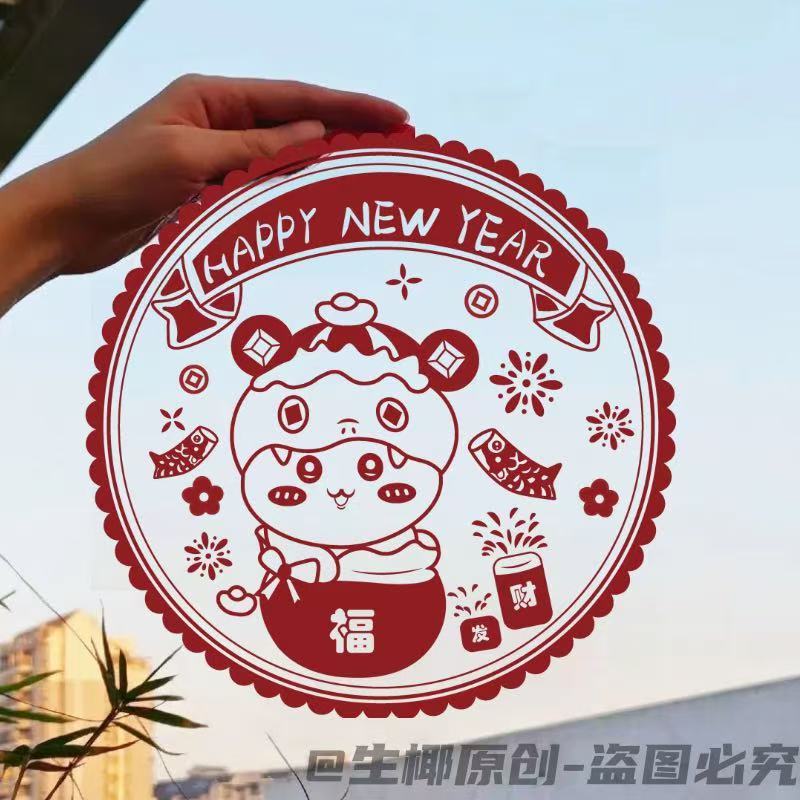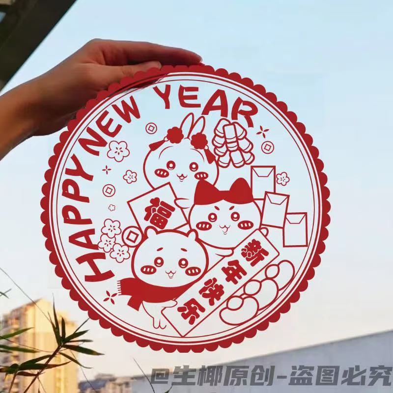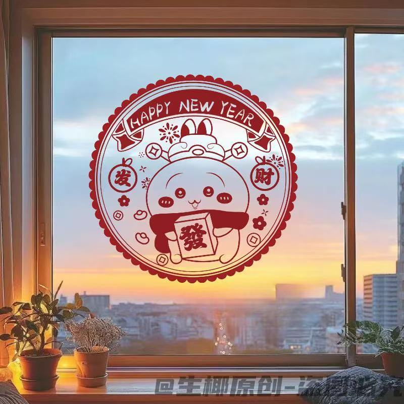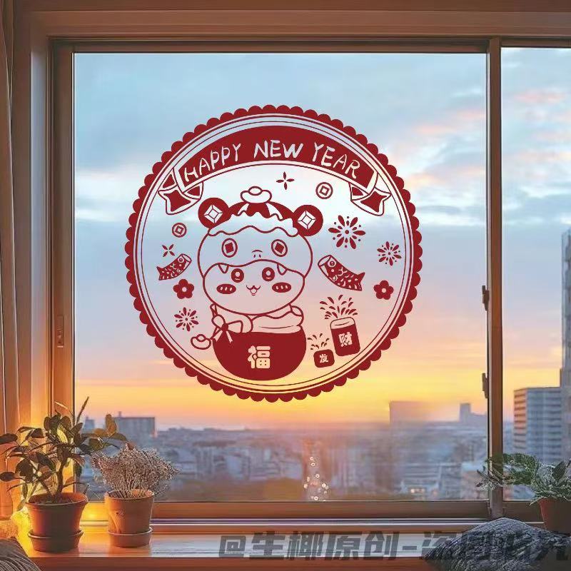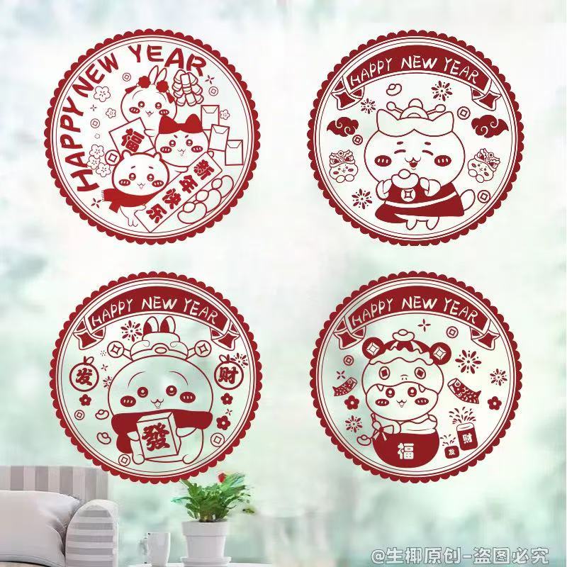 春节蛇年新款吉伊卡哇系列窗花2025新年装家用窗户静电玻璃自粘